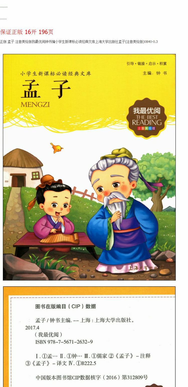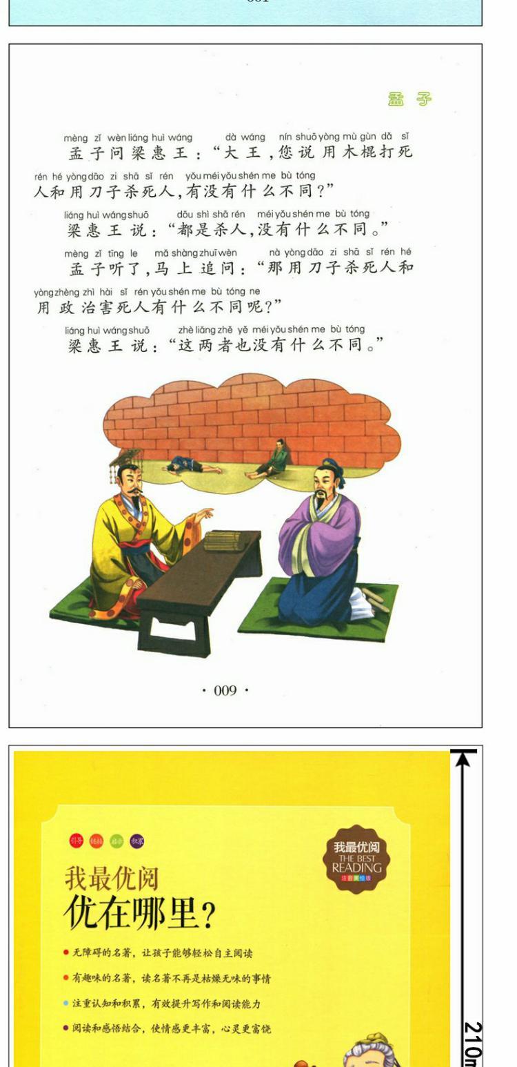 1-3年级适用 注音美绘版-孟子 钟书正版少儿读物我优阅系列拼音彩图版孟子 儿童文学课外读物小学生作文阅读写作能力