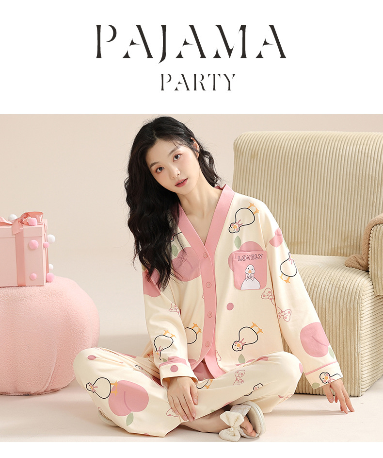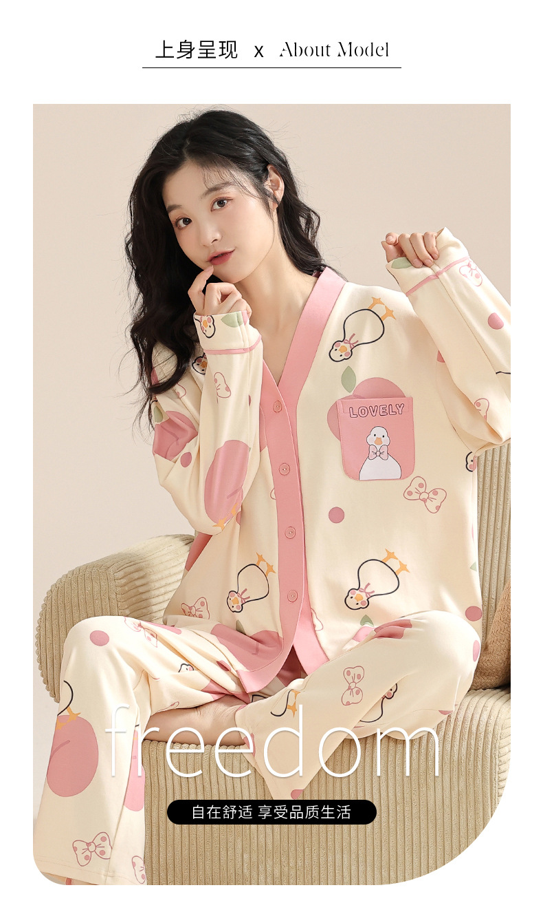 【休闲时尚!春秋开衫家居服】睡衣女春秋纯棉长袖秋季开衫多款可选简约高级感可外穿家居服套装,简洁大方,不仅适合家居,还可外穿-QQ