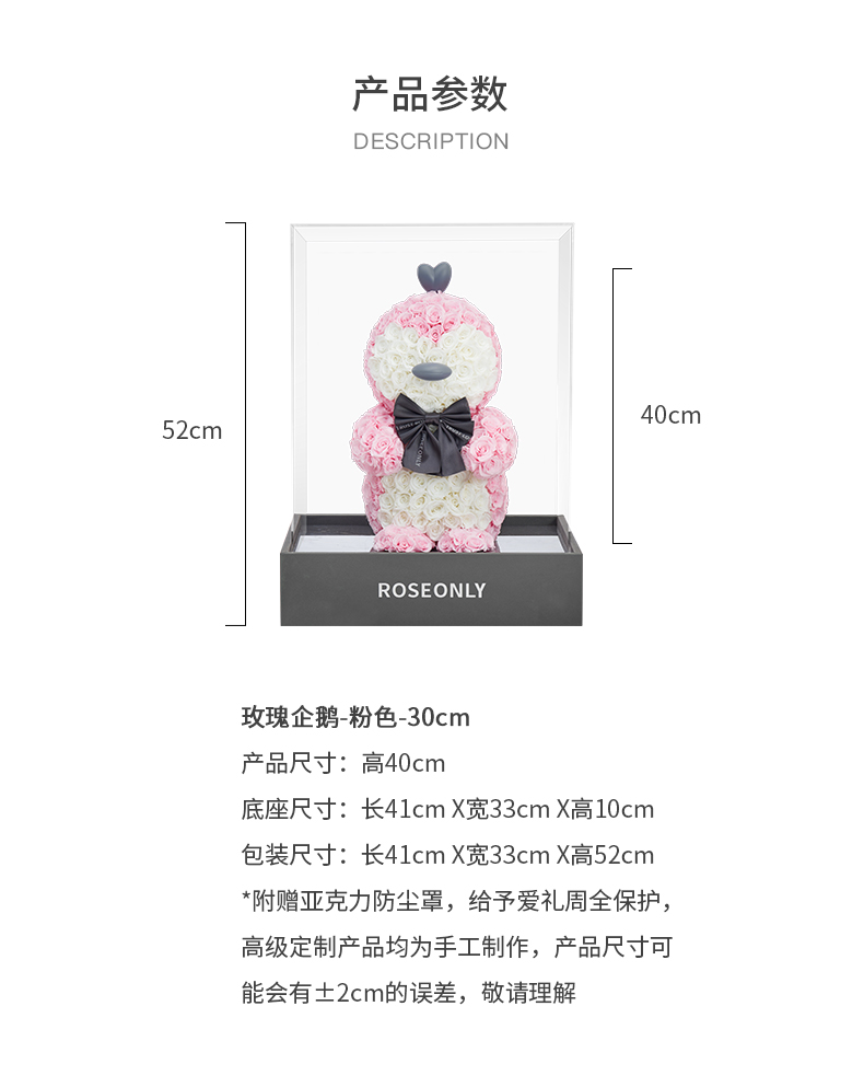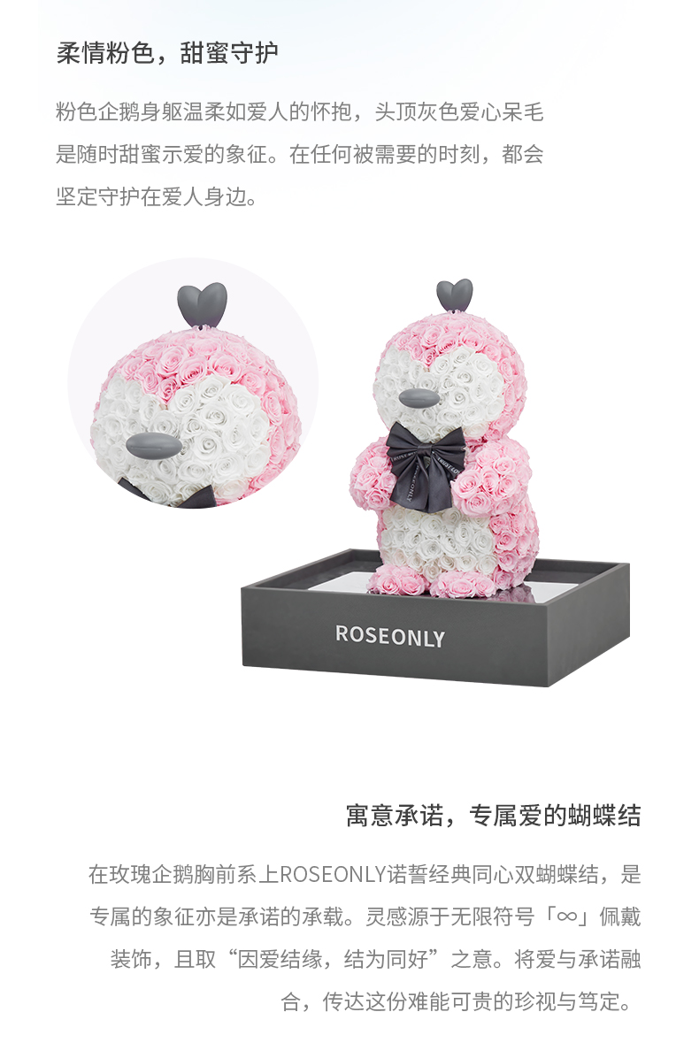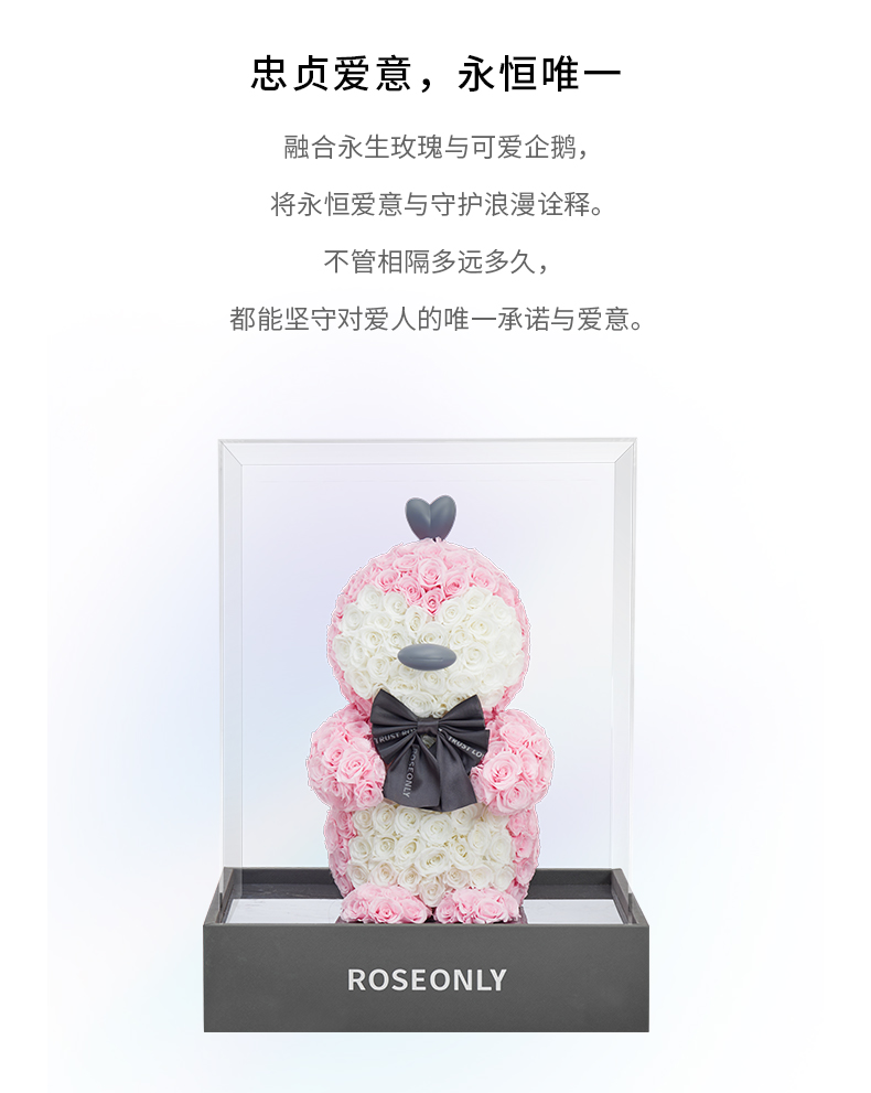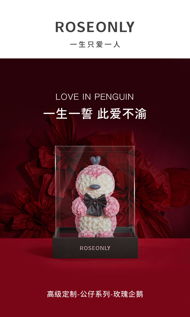 【新品爱礼】ROSEONLY诺誓 高端定制 永生玫瑰 公仔系列 玫瑰企鹅 送朋友 情人节礼物