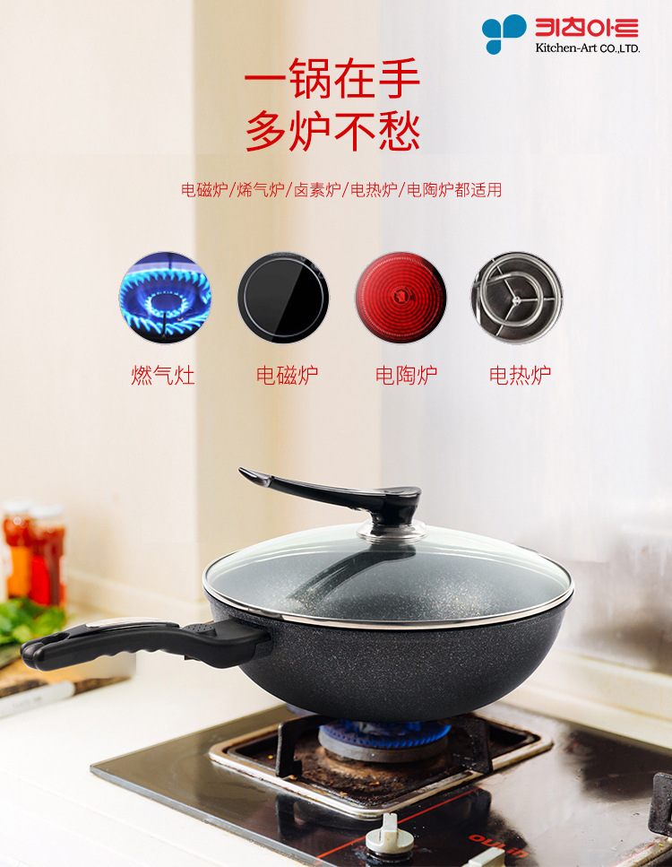 【中欧班列精选】韩国阿特麦饭石红标炒锅/煎锅 原装进口阿特麦饭石单/双用不粘锅 30/32cm