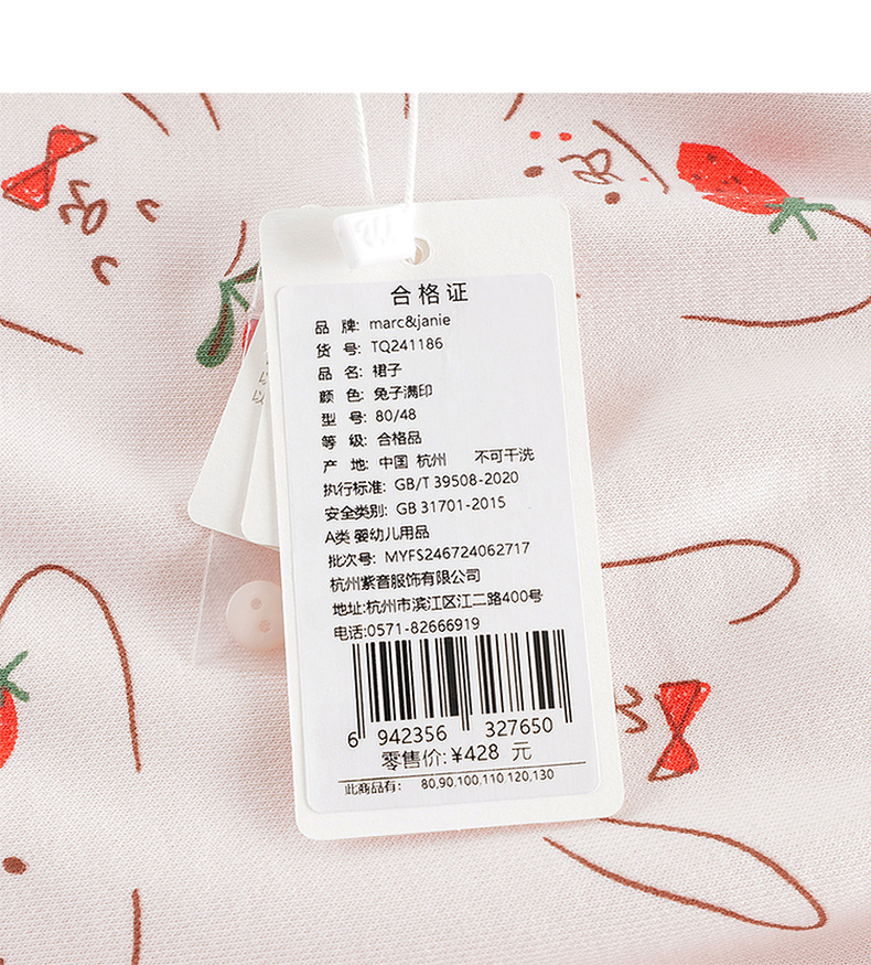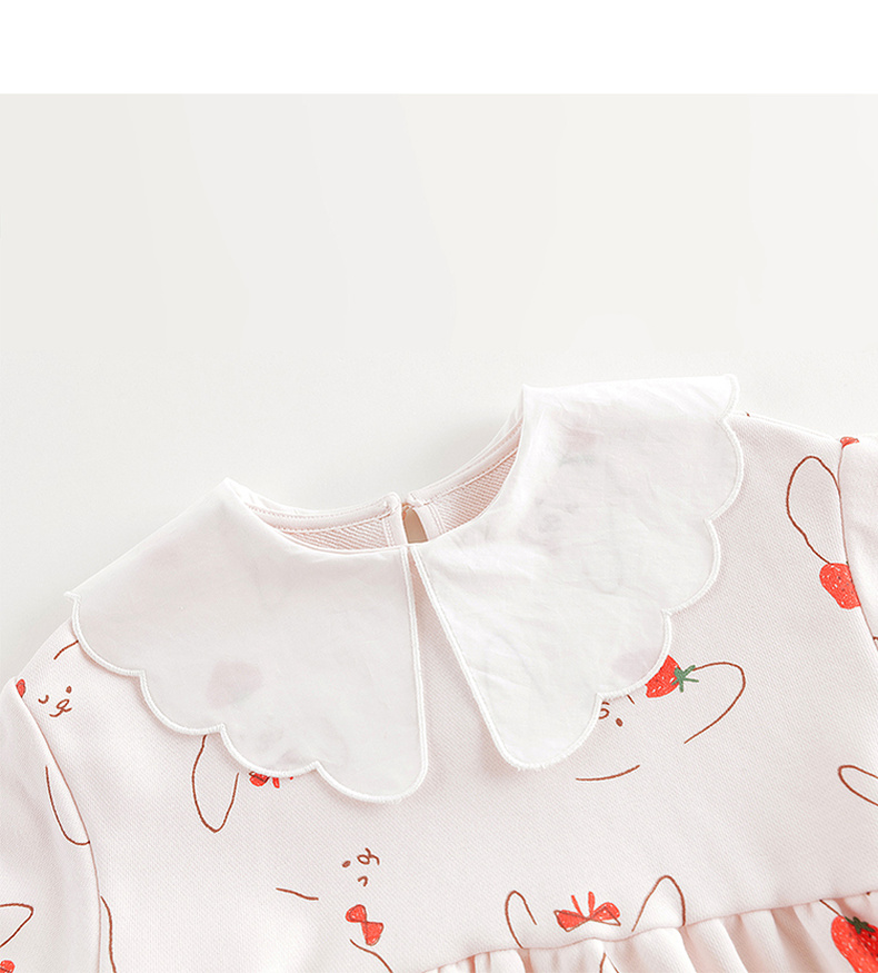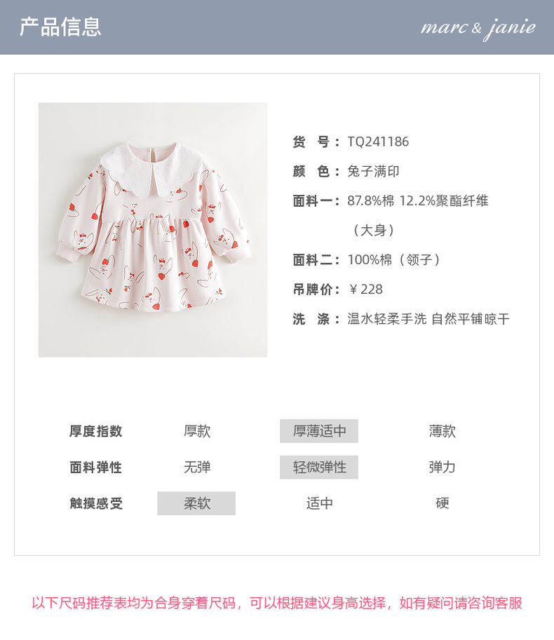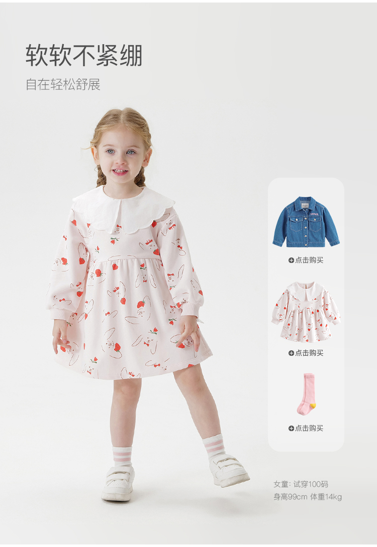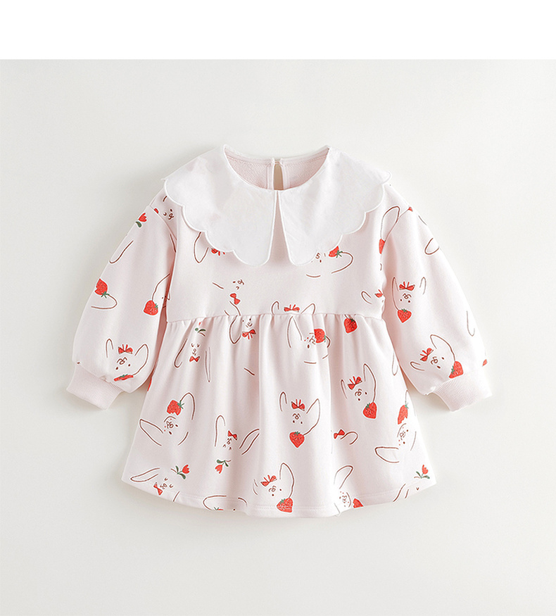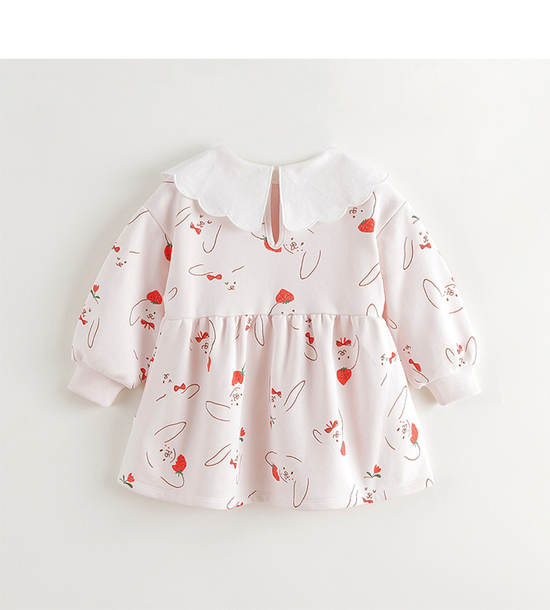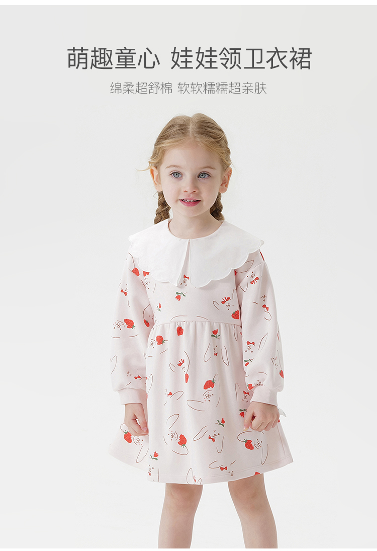 马克珍妮女童兔子满印娃娃领连衣裙儿童裙子宝宝秋装新款241186