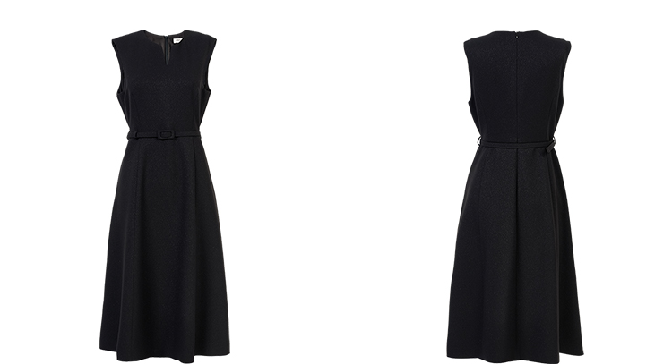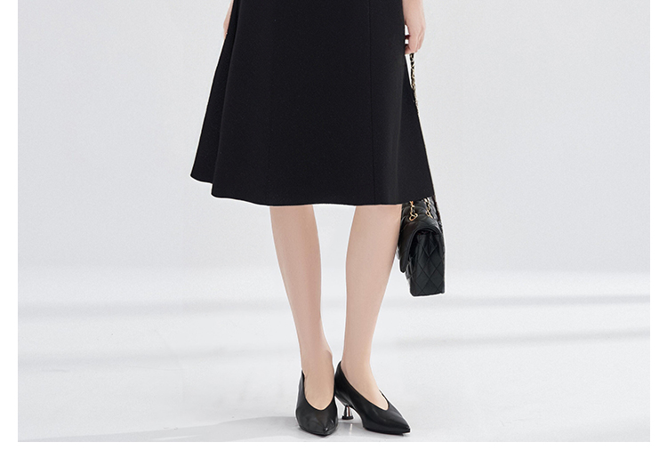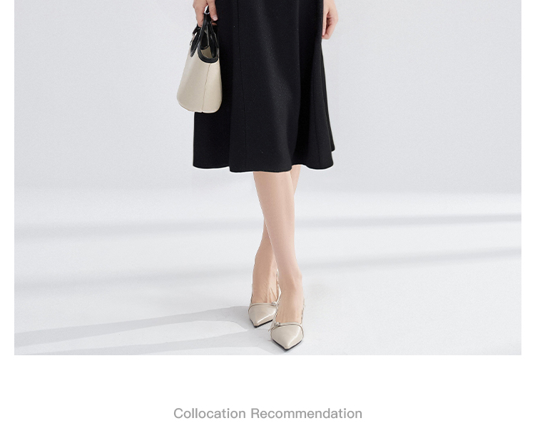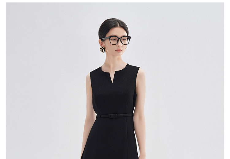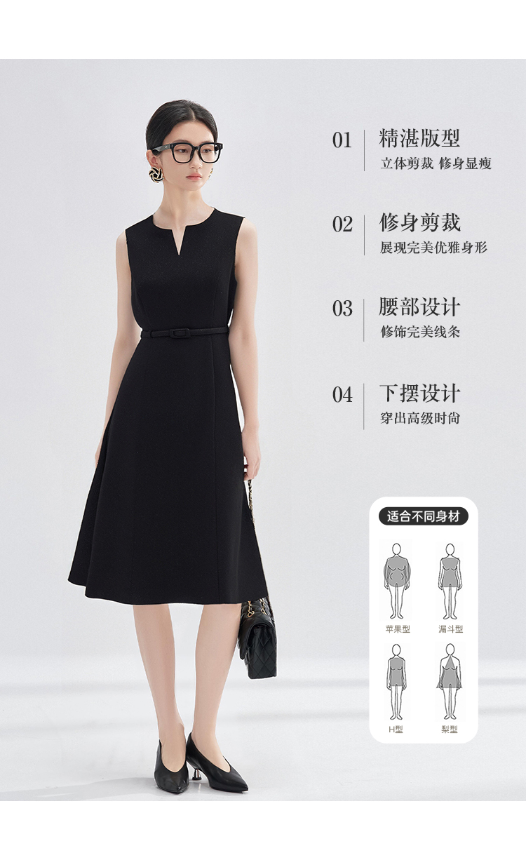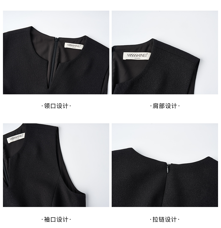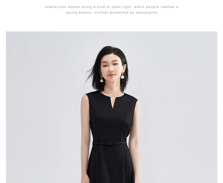 剩S/M/XXL 米思阳2026春季简约优雅通勤极简风V领小黑裙收腰显瘦中长款连衣裙女4376