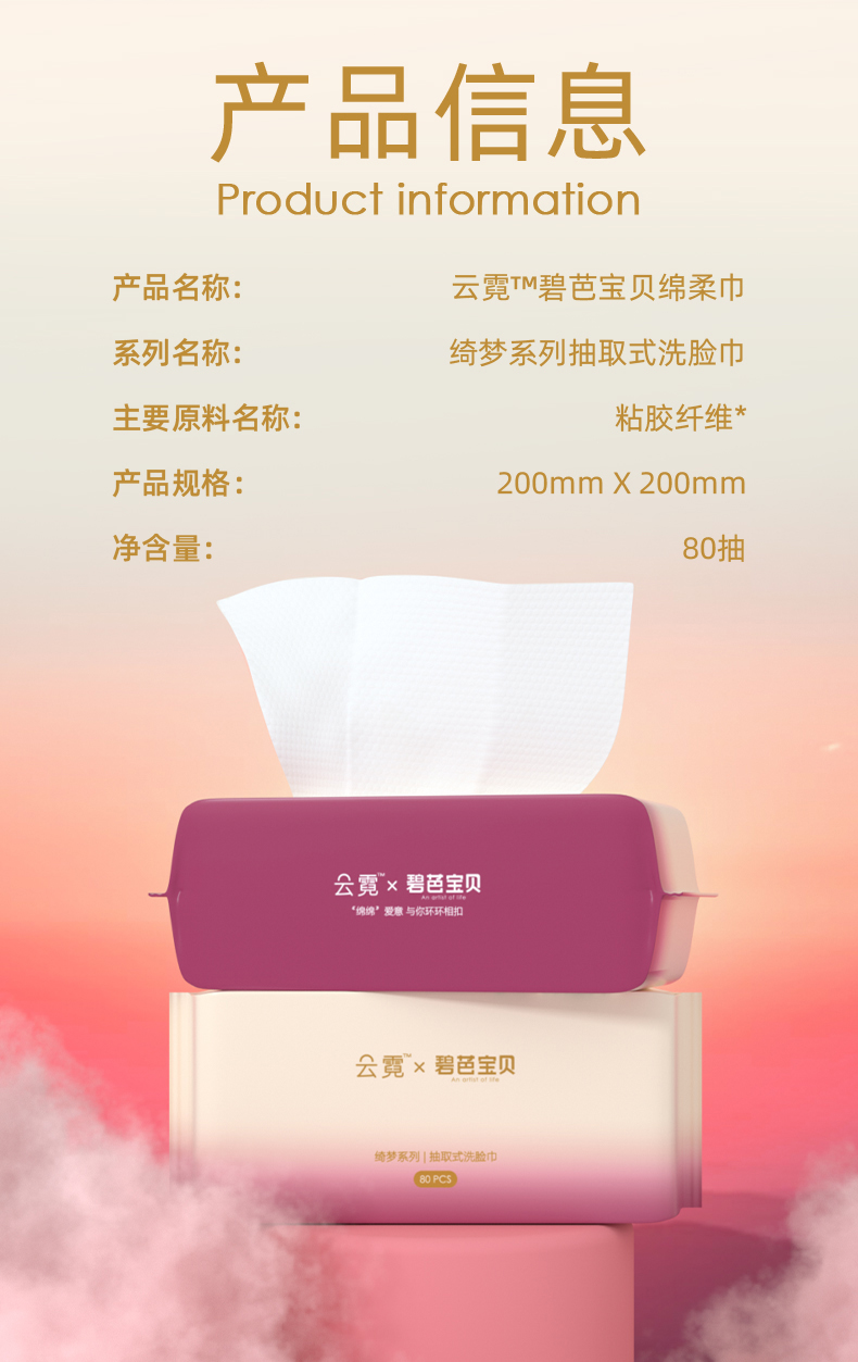 【59元任选3组】云霓 碧芭宝贝绮梦系列抽取式洗脸巾80抽3包