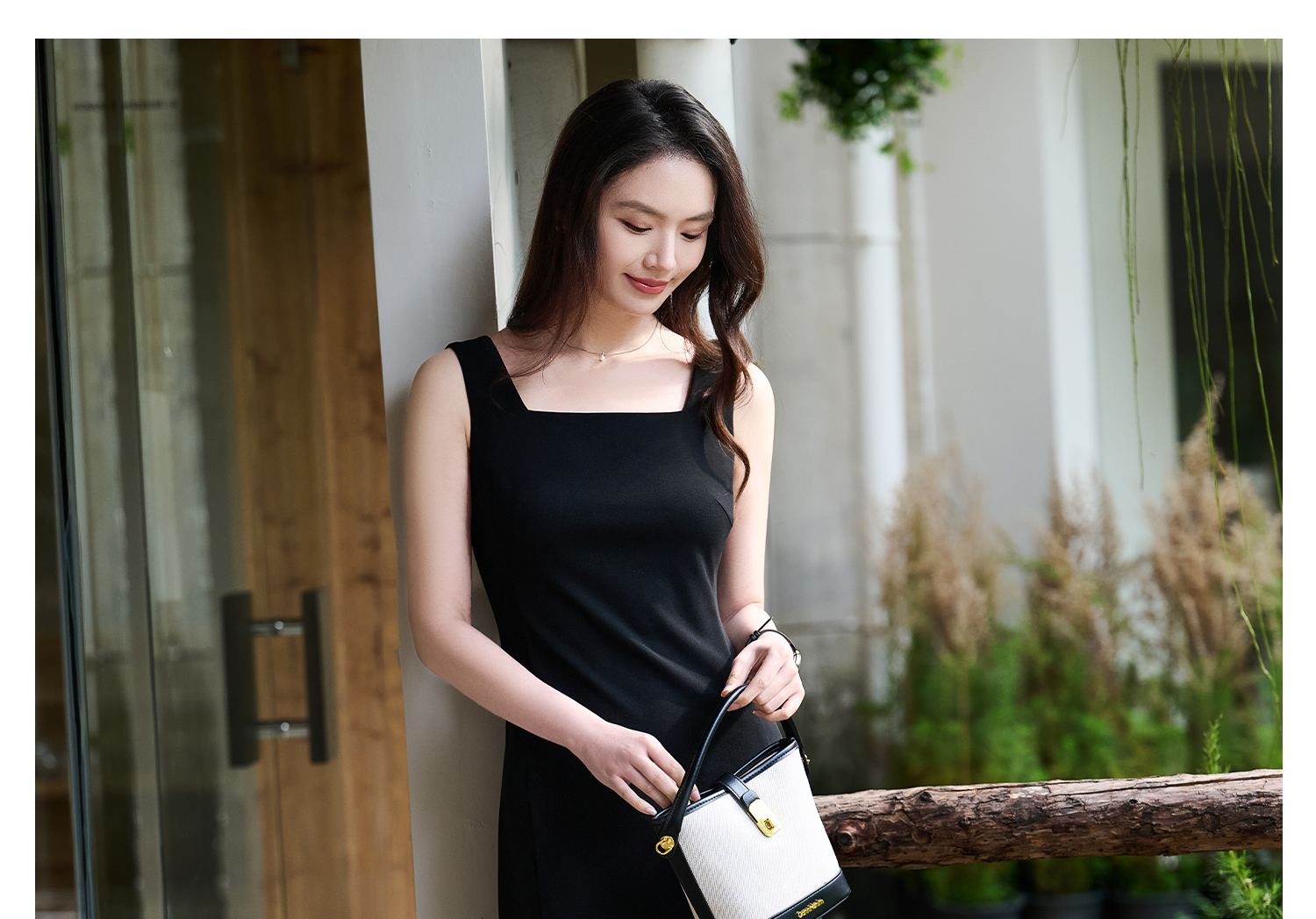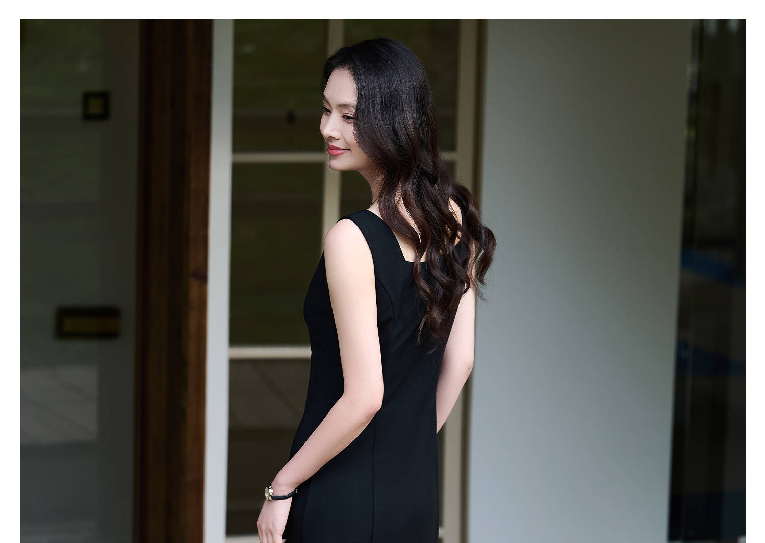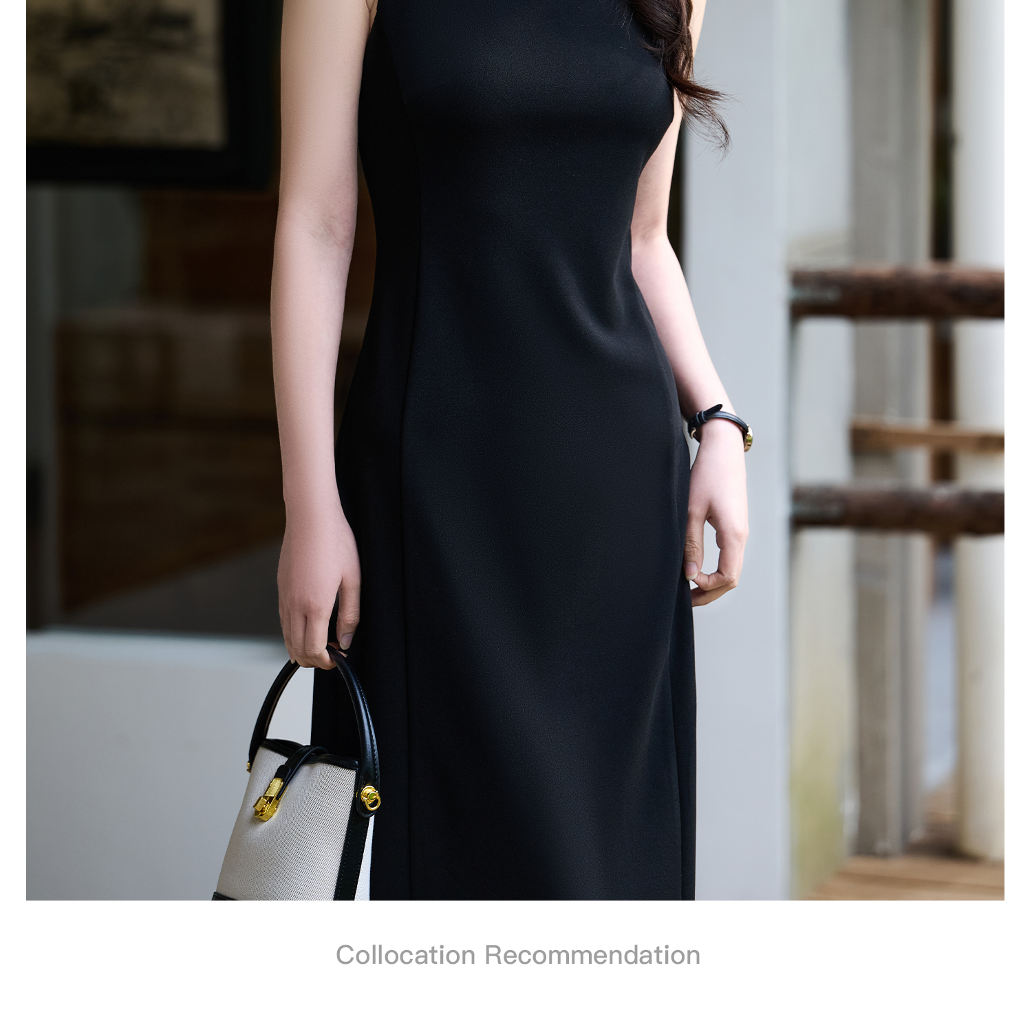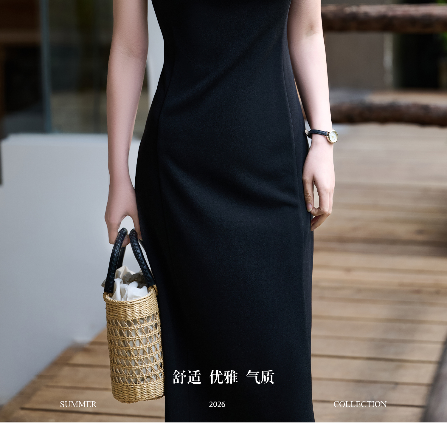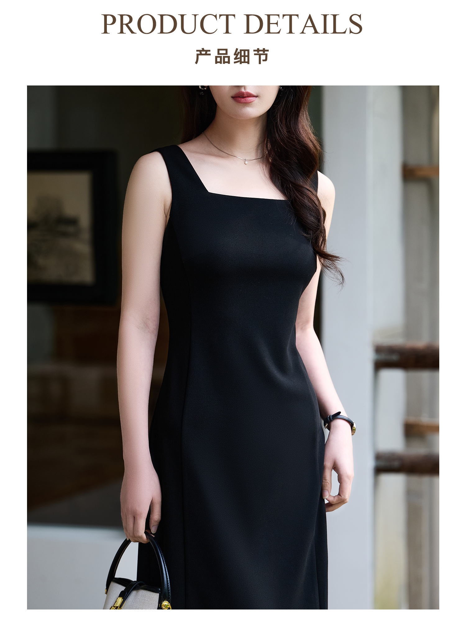 米思阳2026春夏新款知性优雅百搭OL修身显瘦无袖小黑裙背心连衣裙女1068