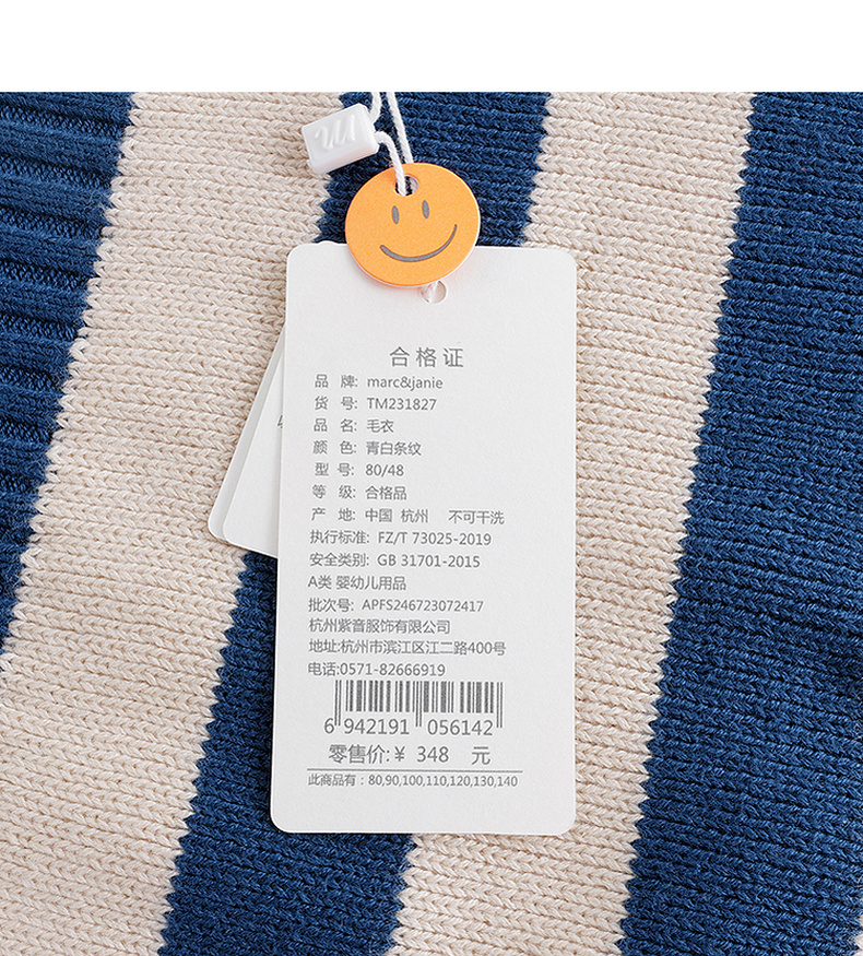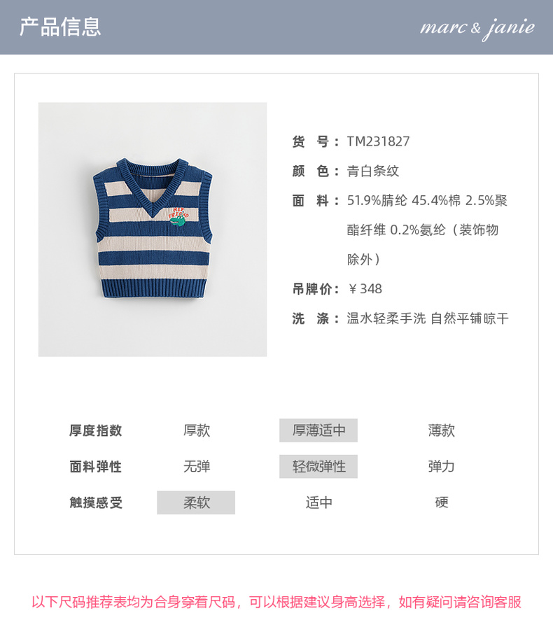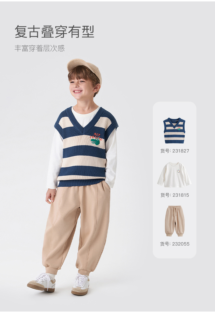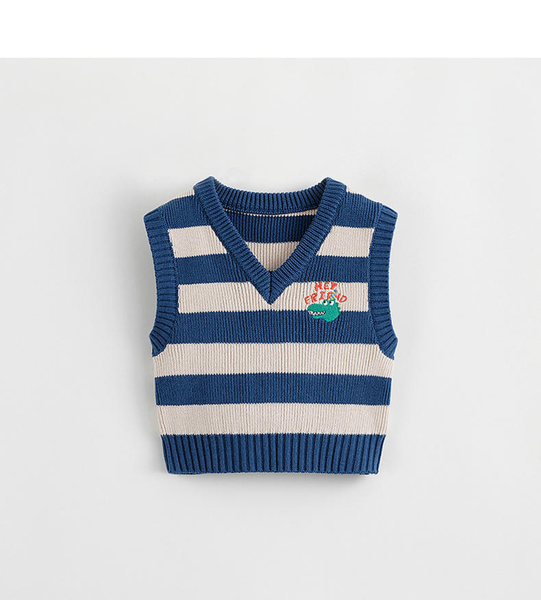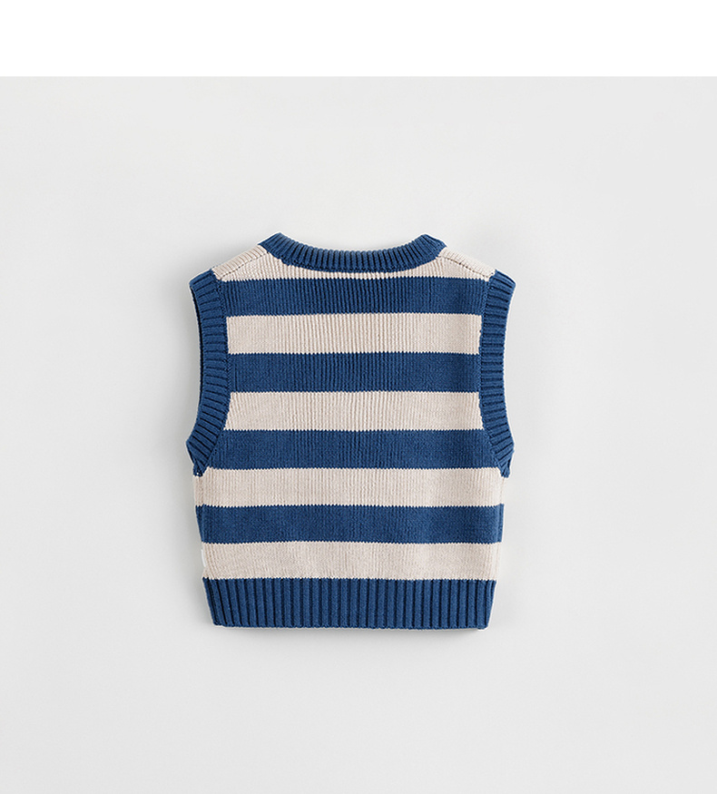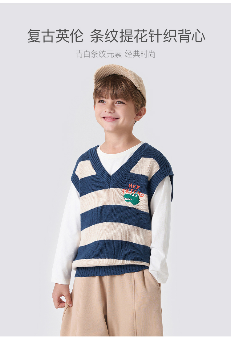 马克珍妮秋装新款 男童时尚条纹V领针织背心儿童马甲231827