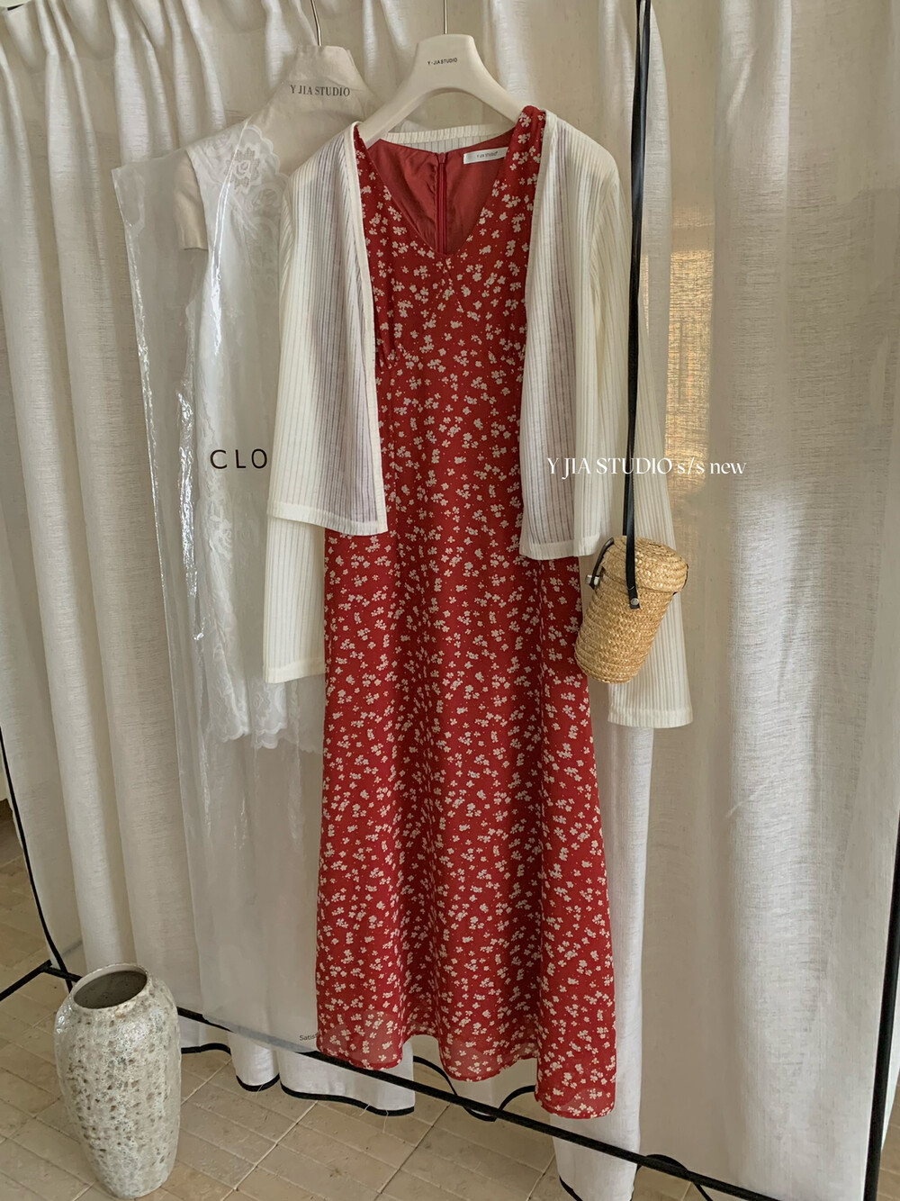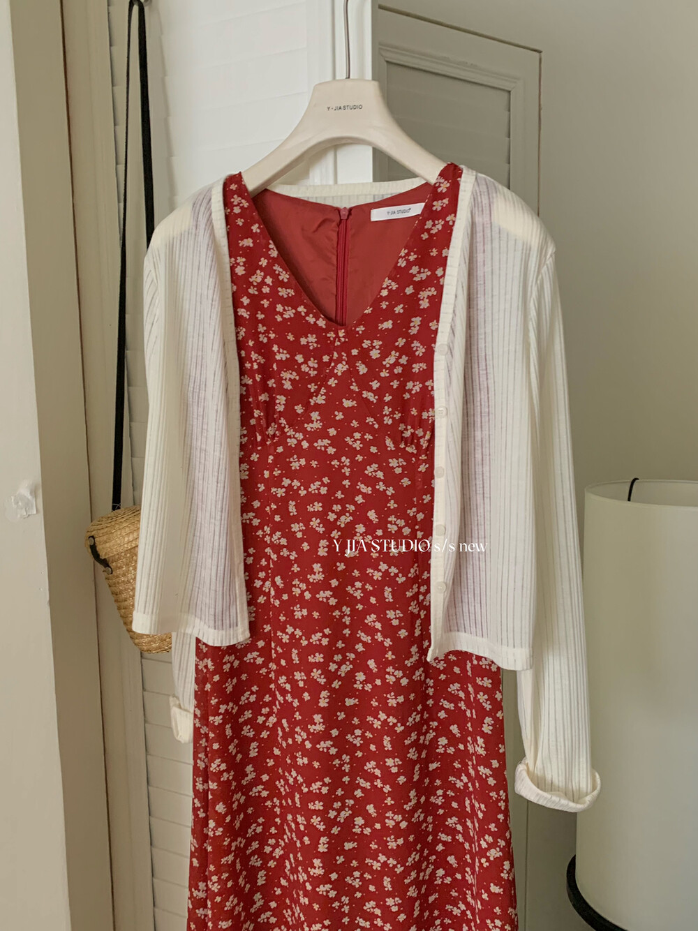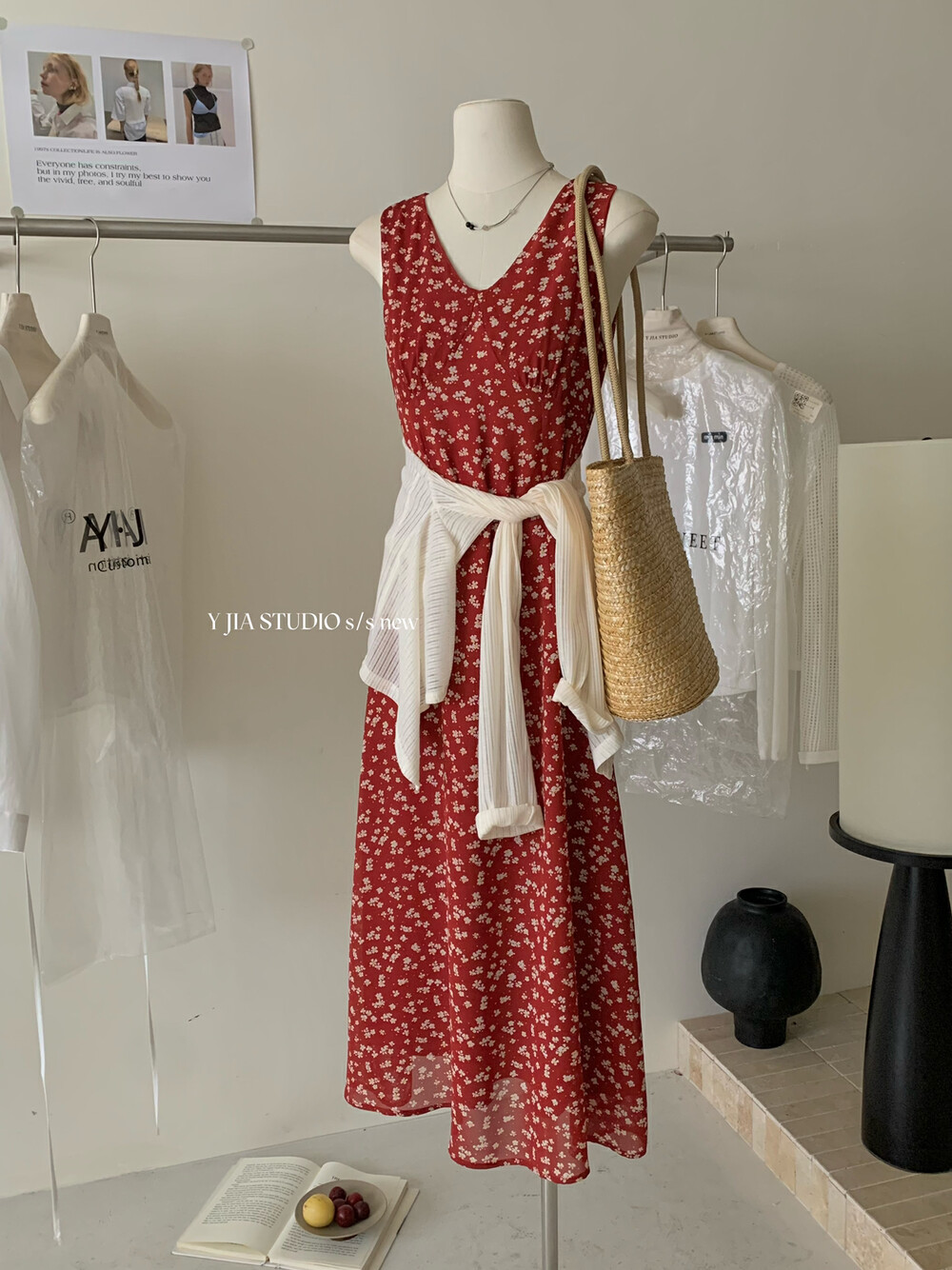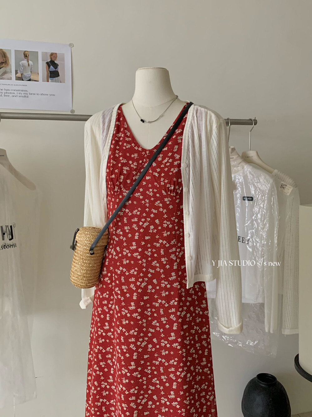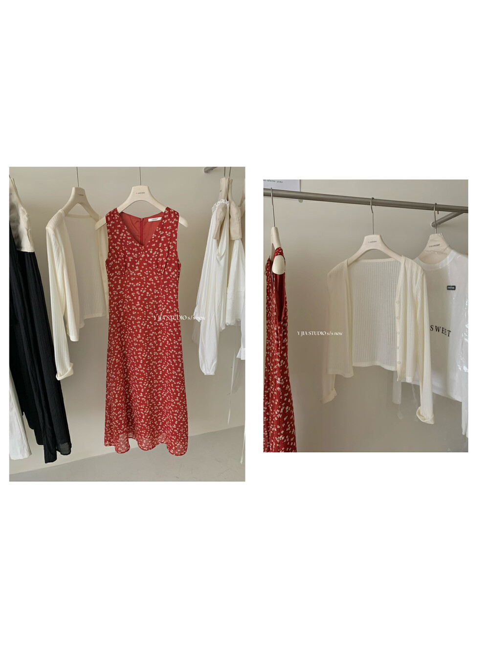 【GZ】无忧购【甜心玫玫】度假百搭碎花背心连衣裙+轻薄防晒针织开衫套装3005-5(截单后3-5天发货)