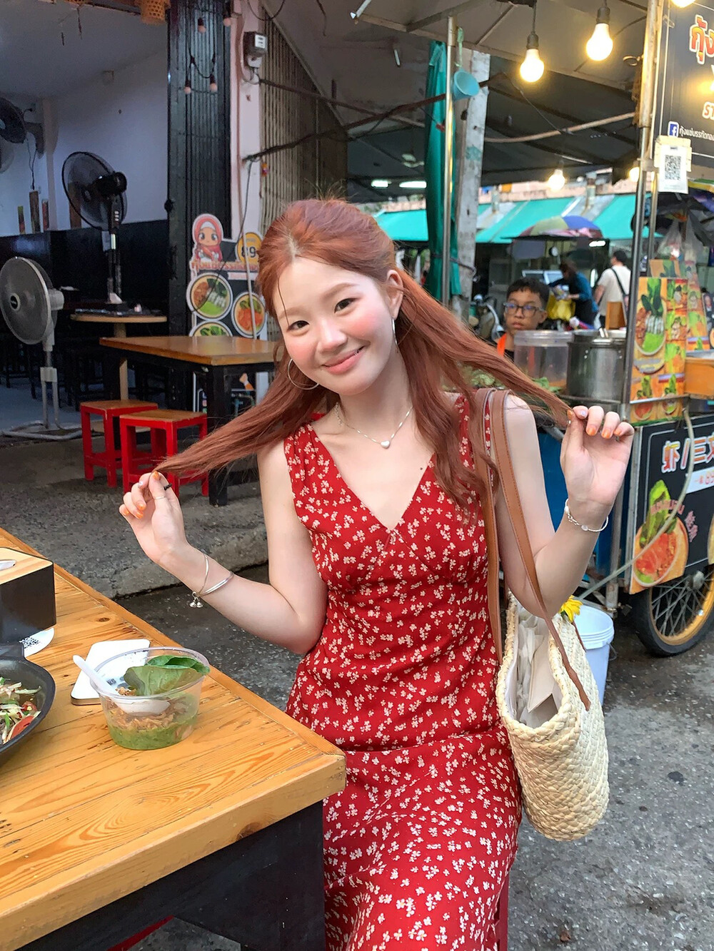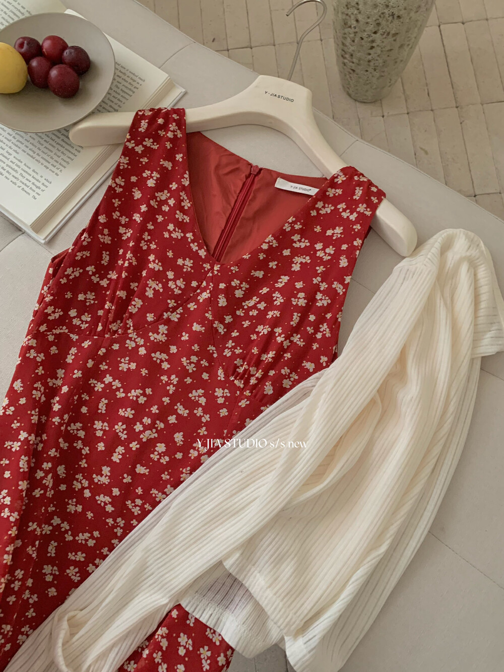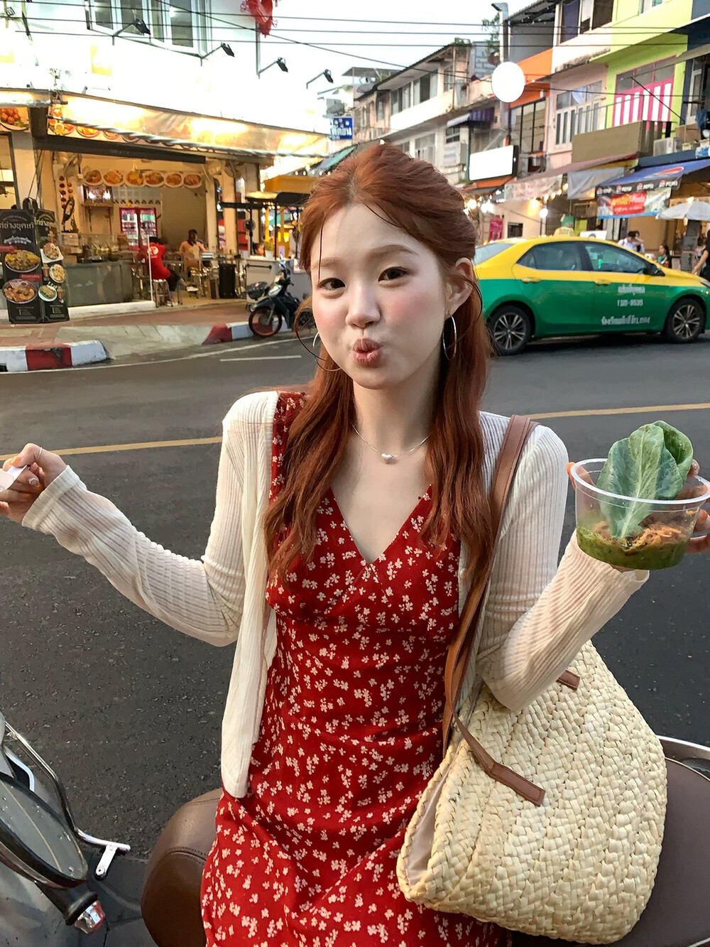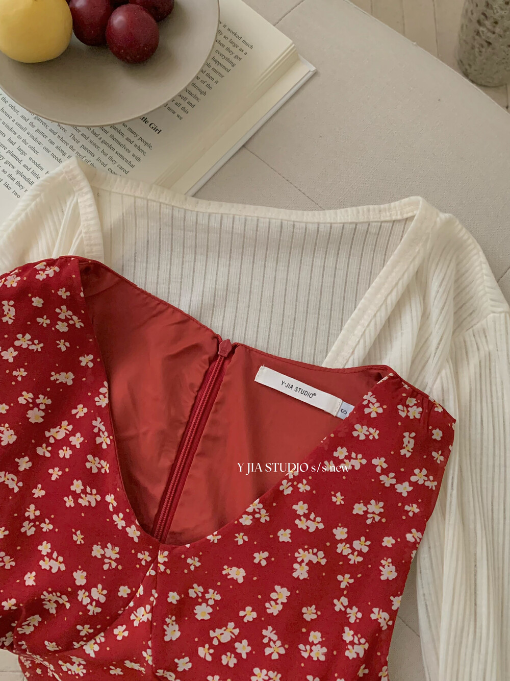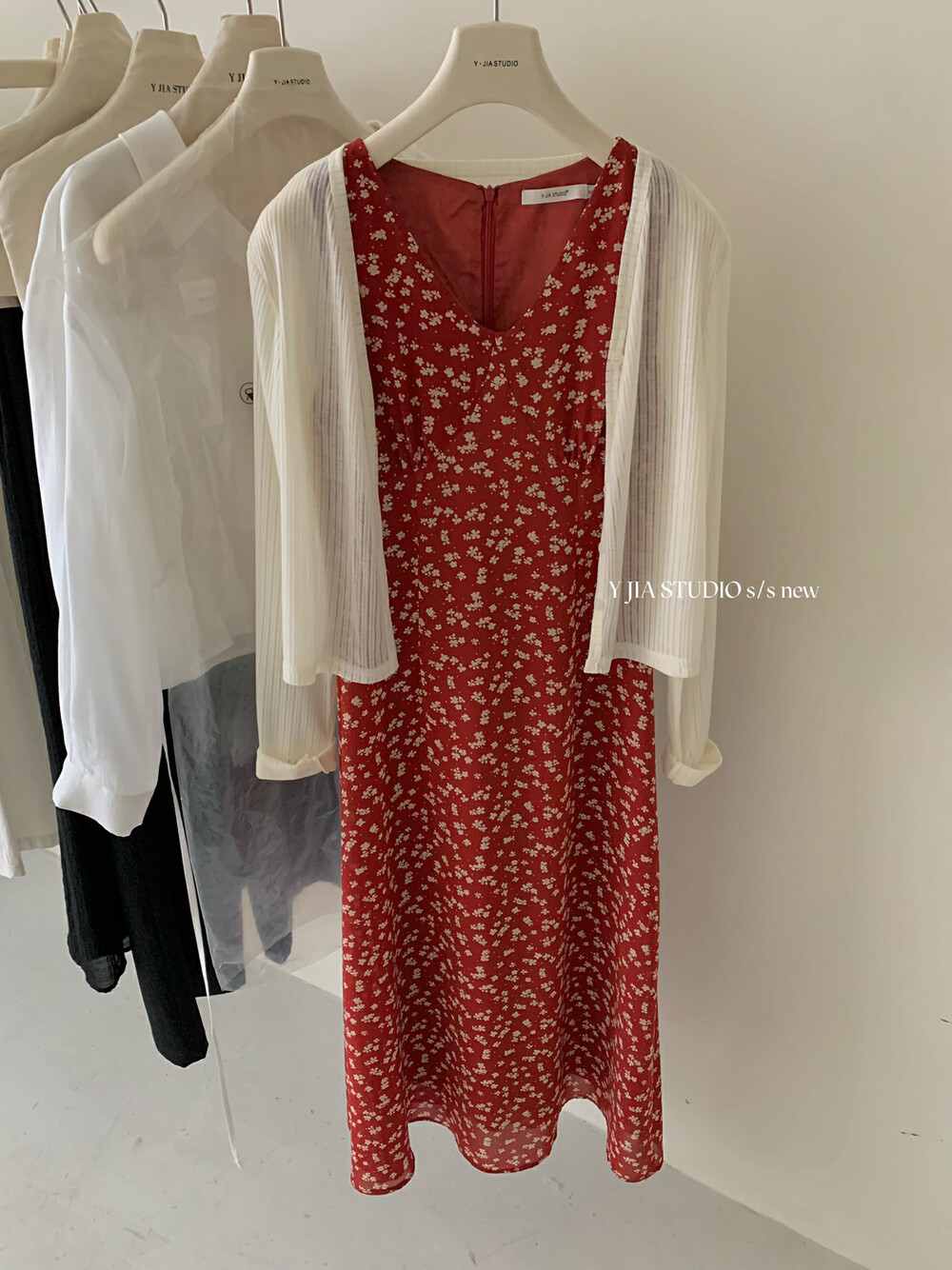 【GZ】无忧购【甜心玫玫】度假百搭碎花背心连衣裙+轻薄防晒针织开衫套装3005-5(截单后3-5天发货)