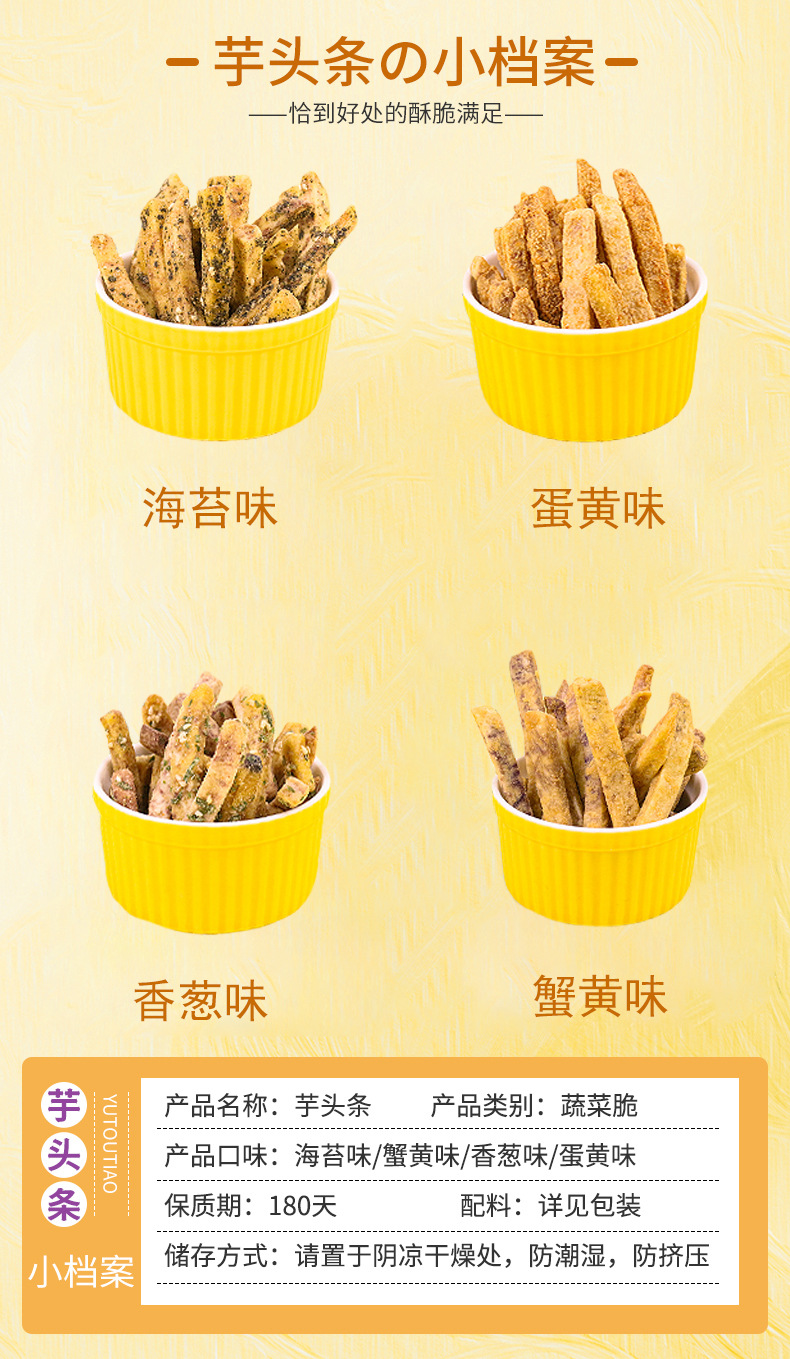 【外脆内软!原切芋头条】网红小吃,休闲食品薯条网红小零食香芋片海苔蟹黄味即食小吃健康