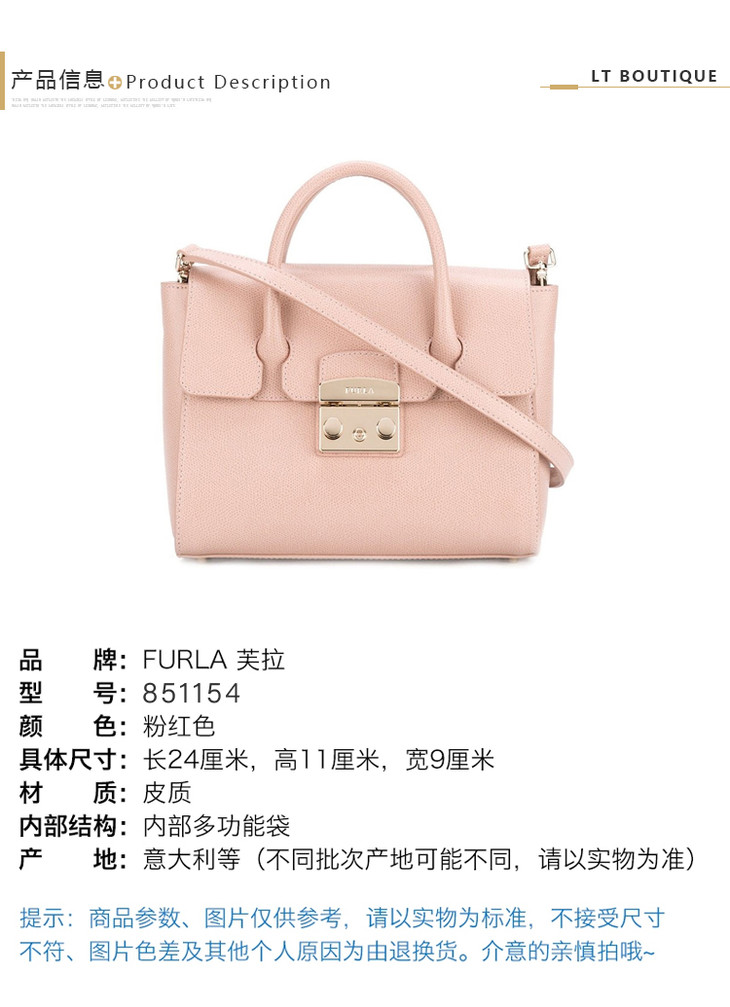 FURLA 芙拉女包女士单肩包METROPOLIS手提包BGX6 粉色 851154