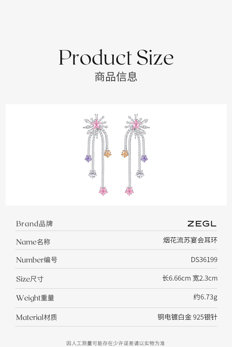 ZEGL设计师宴会系列烟花流苏耳环女小众设计感高级耳钉银针耳饰品