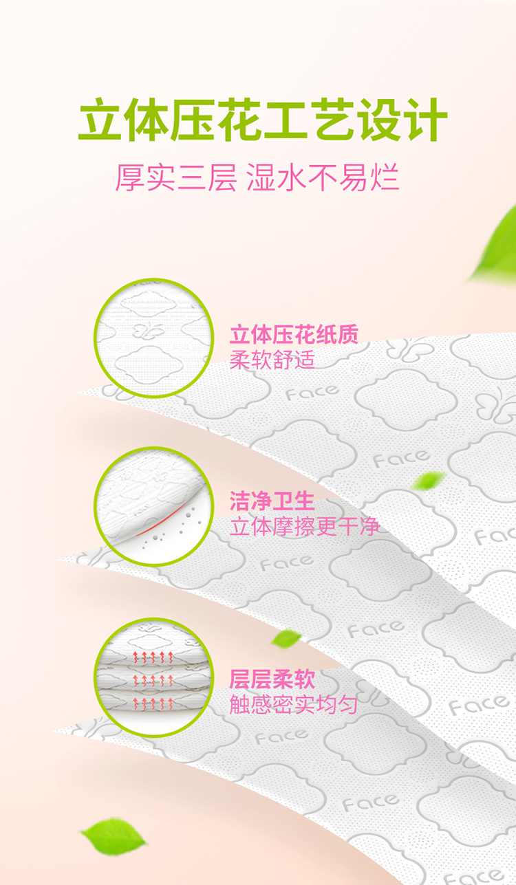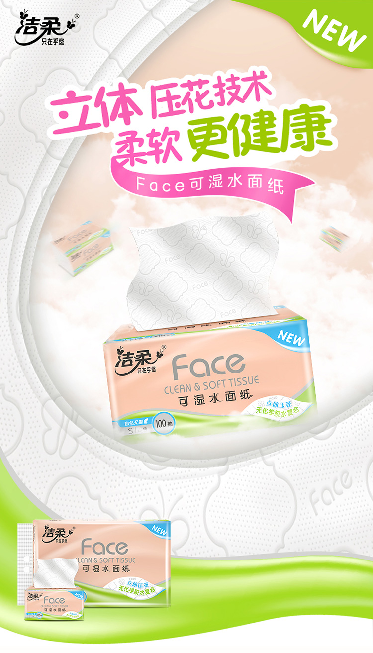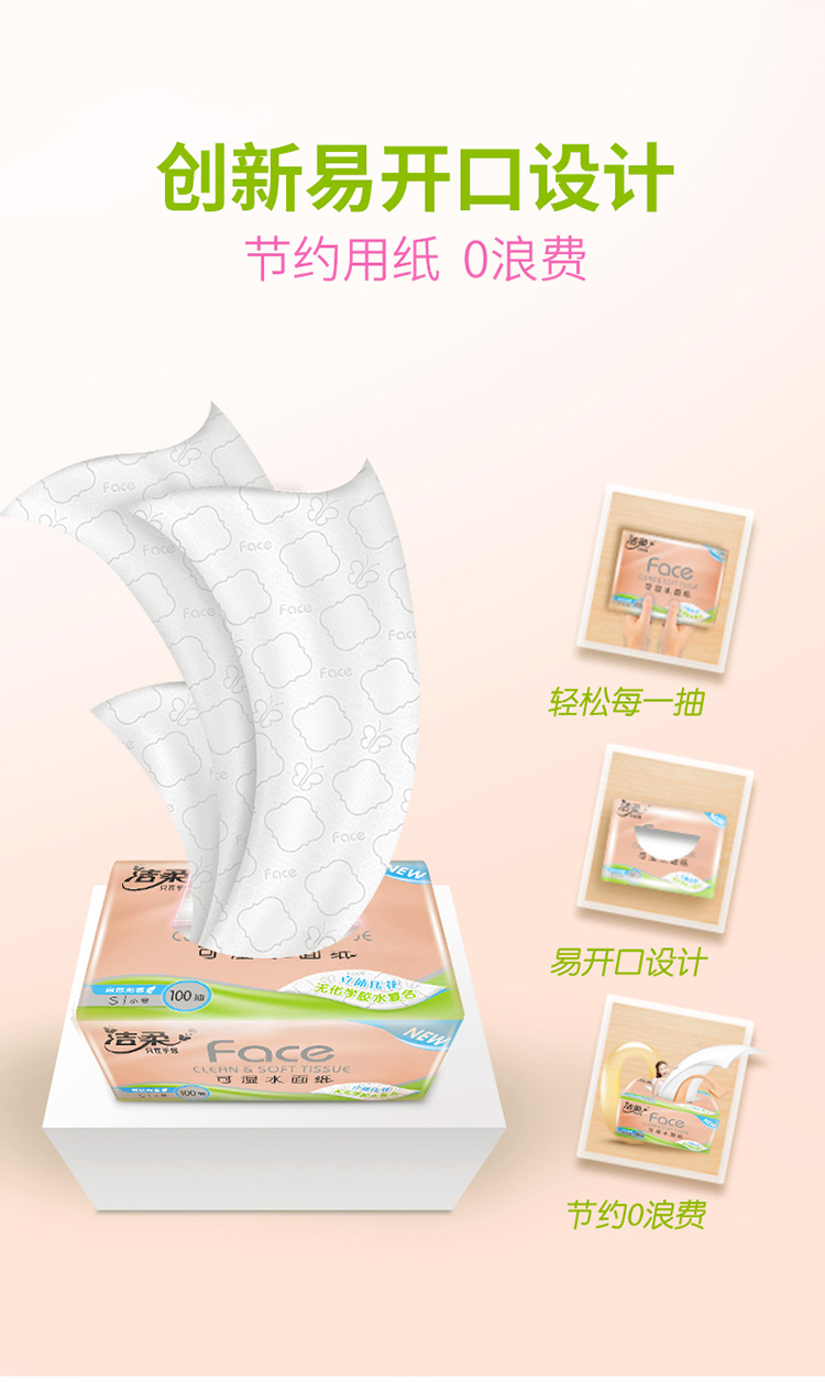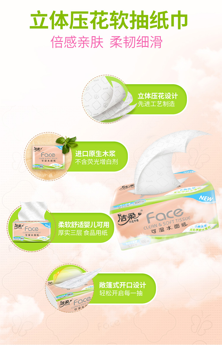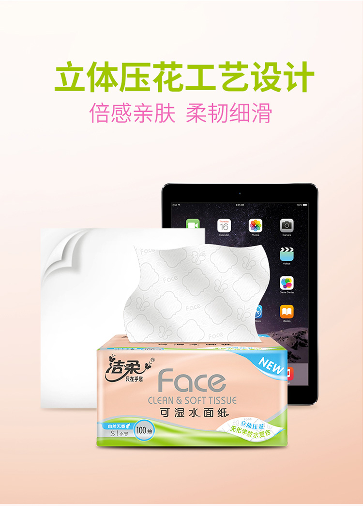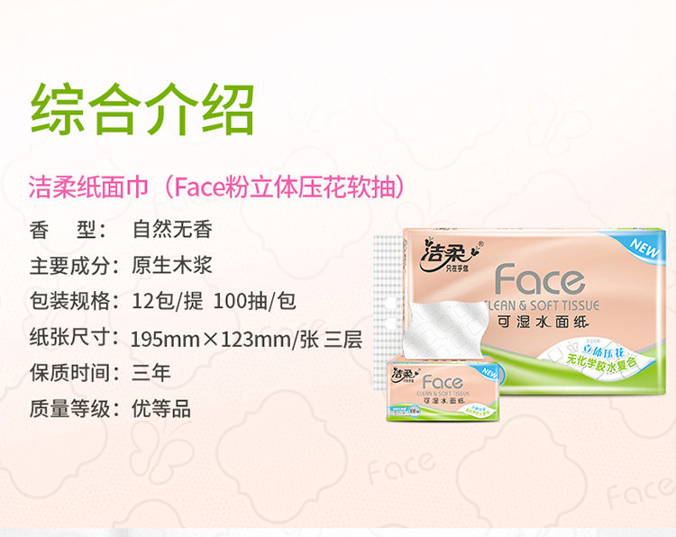 洁柔抽纸(C&S) 4D科技压花3层100抽纸面巾*12包(粉Face亲肤)无香无化学粘胶