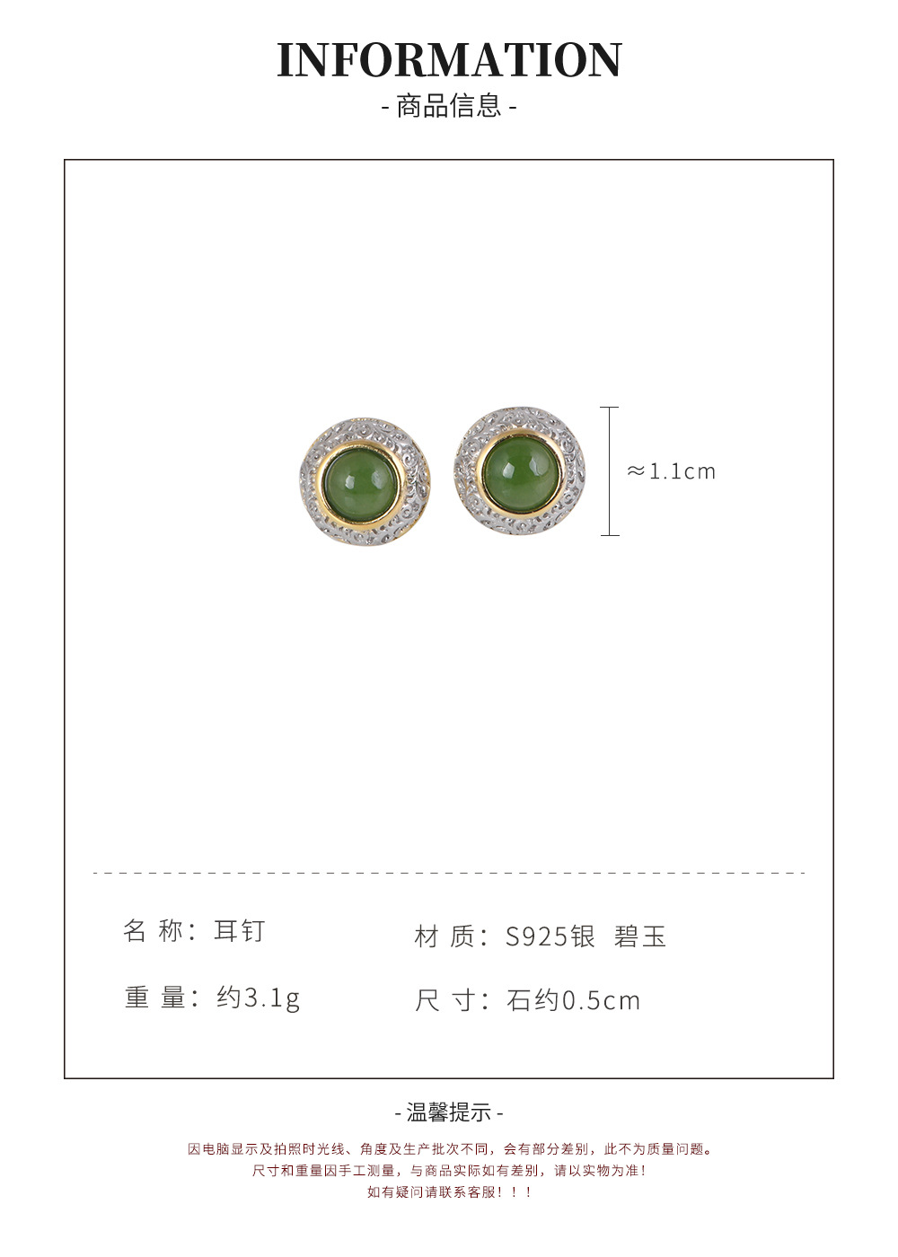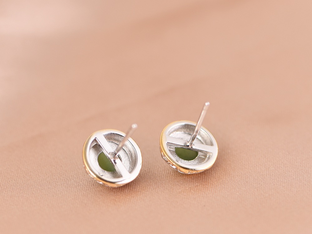 【浅夏诗韵】S925银常青藤镀金镶和田碧玉耳饰【SCH-TRS31665】