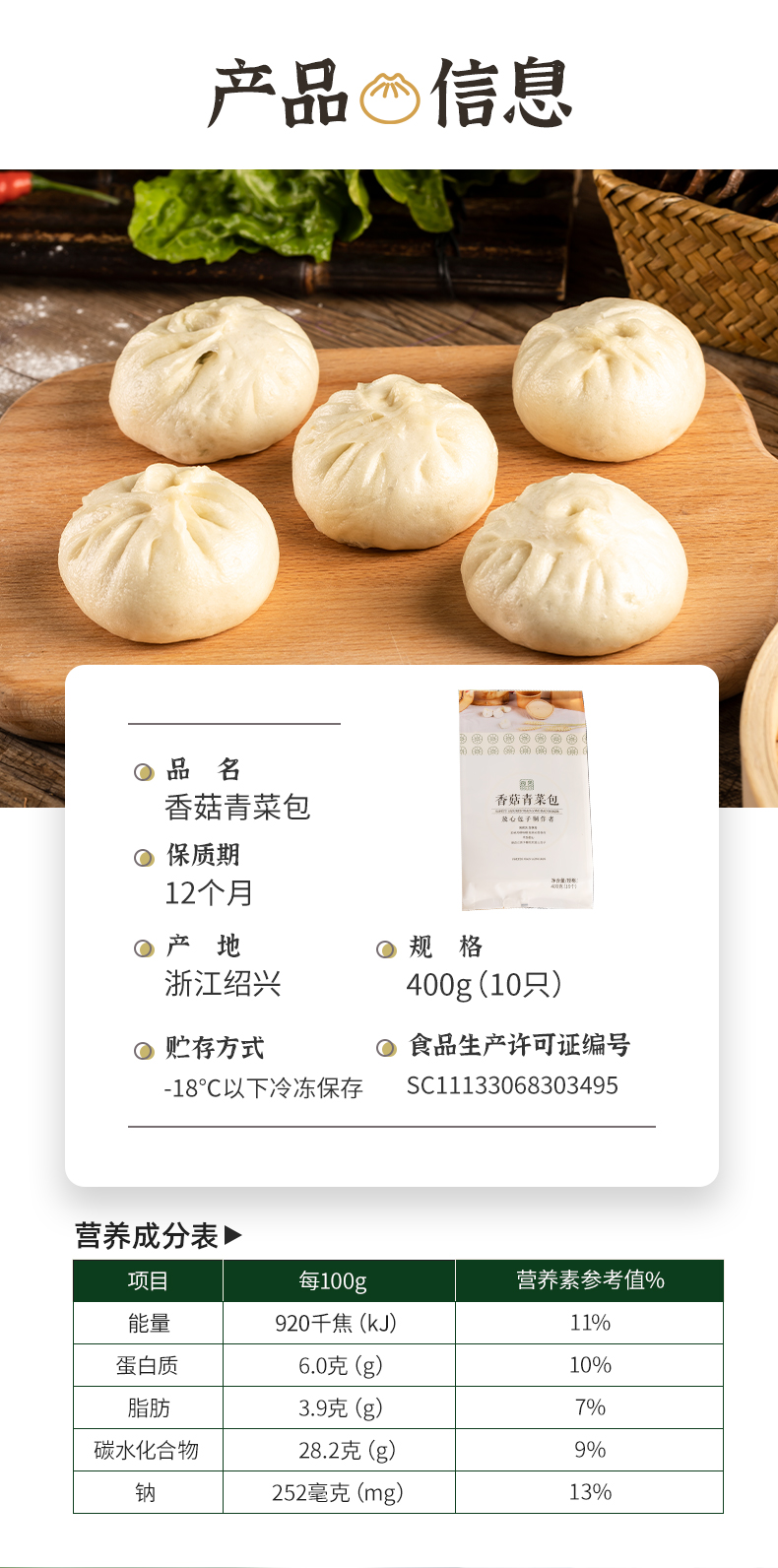 【零添加】香菇青菜包 400g/袋(10只)*4袋