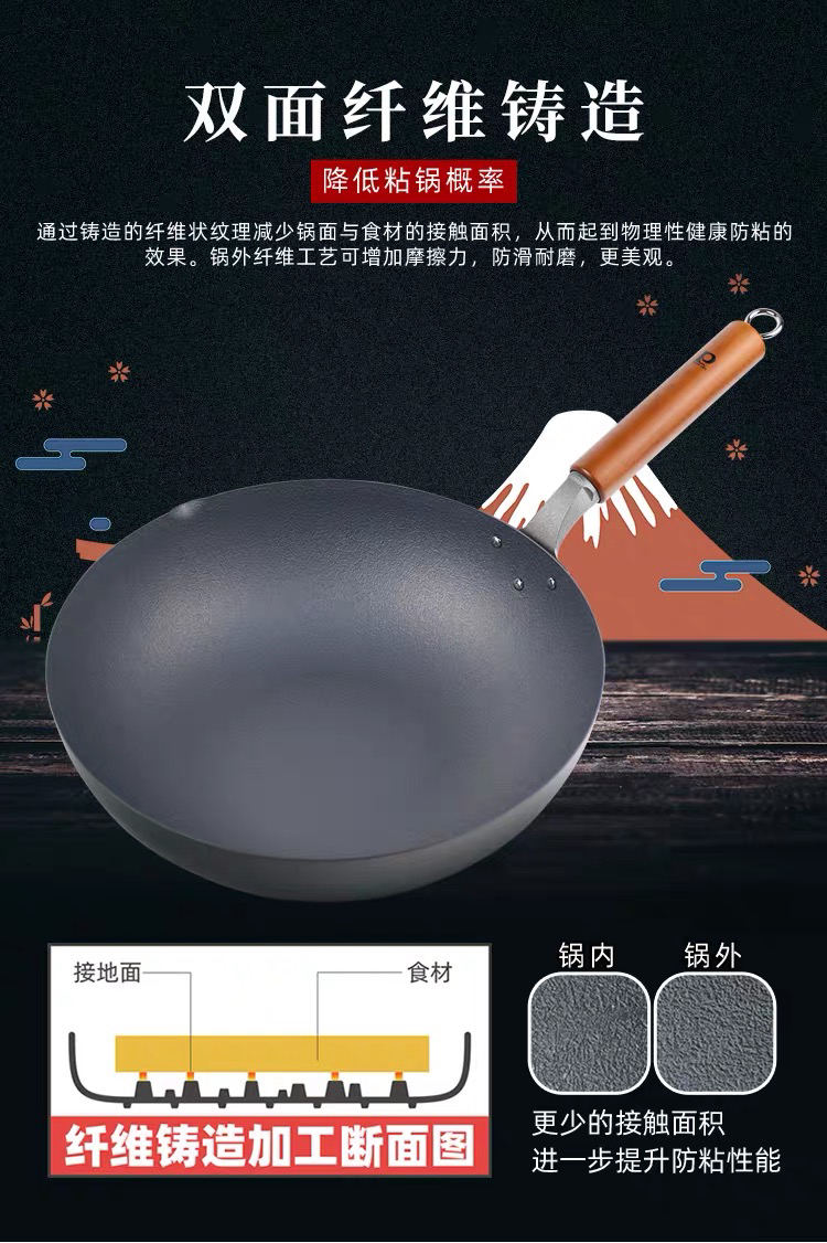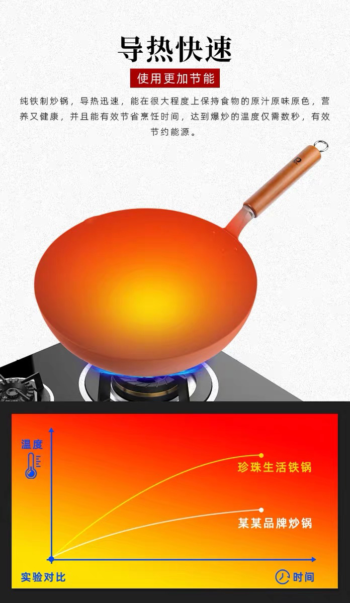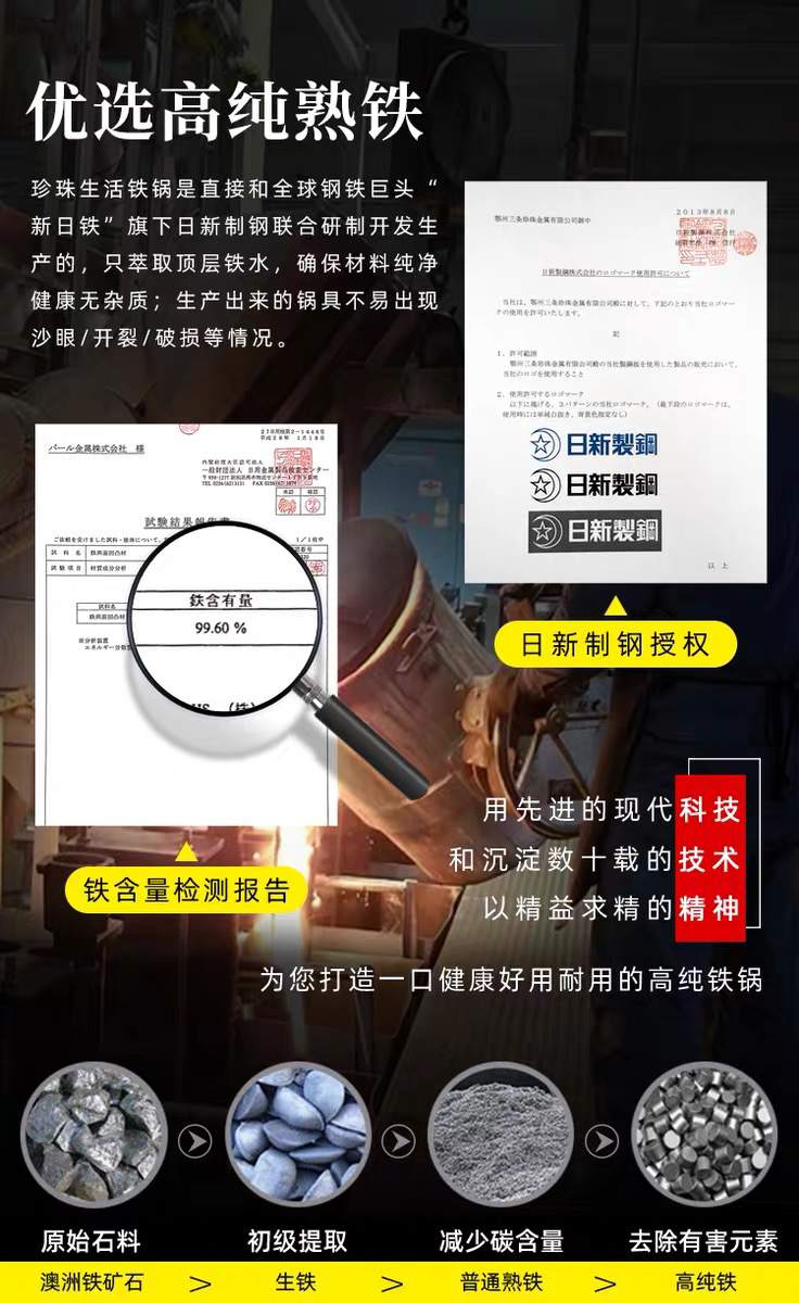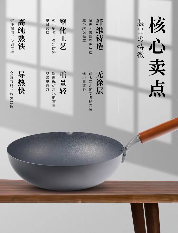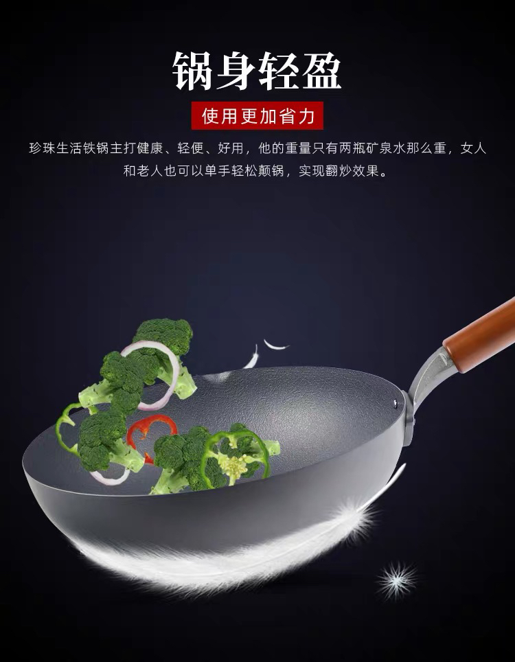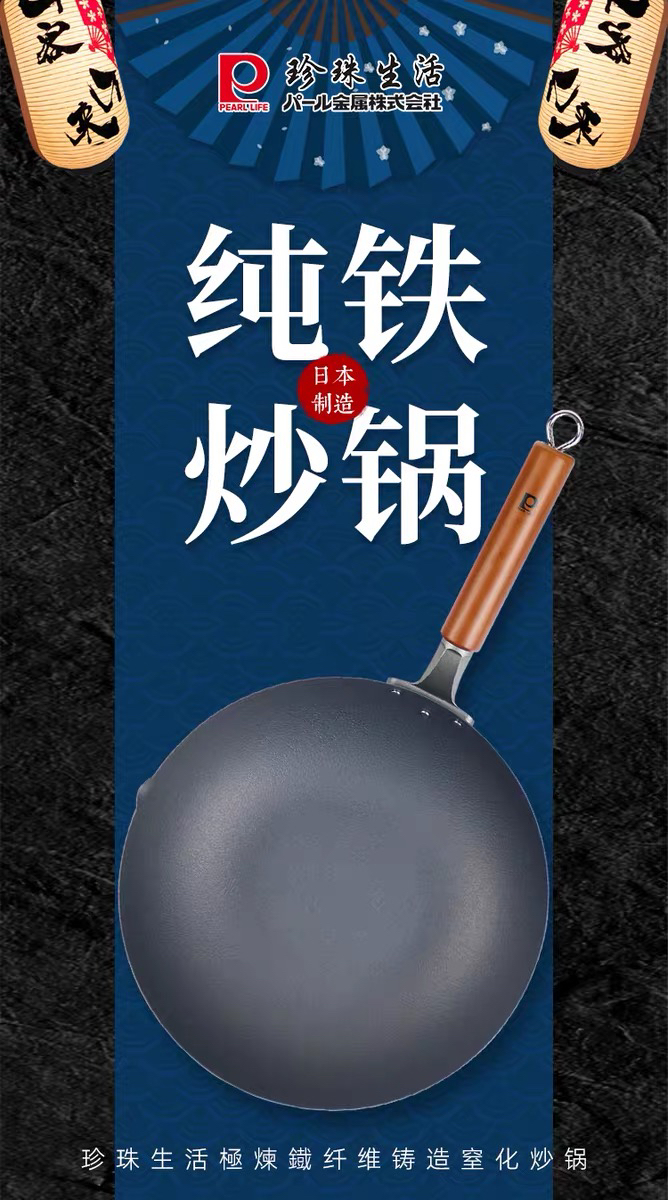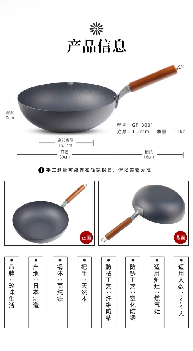 珍珠生活GP-3001不易粘锅铁锅日本原装进口家用炒菜锅无涂层炒锅