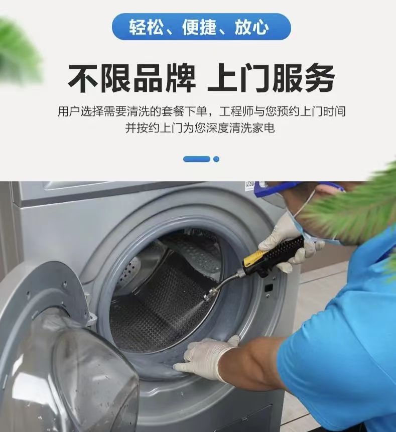 服务内容:1位家居服务工程师,提供1台洗衣机蒸汽洗服务,包含:内桶、滤网、进水口、排污口等深度清洗高温去污、除菌