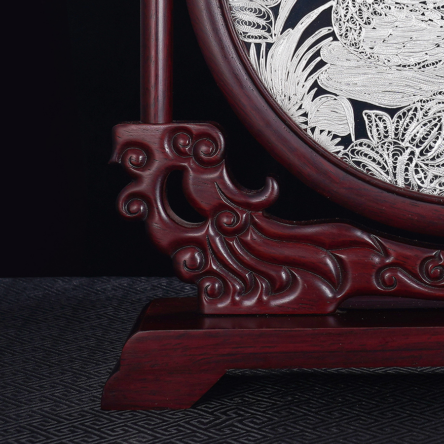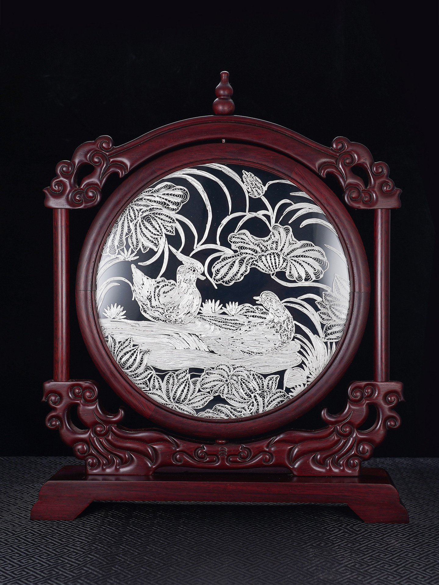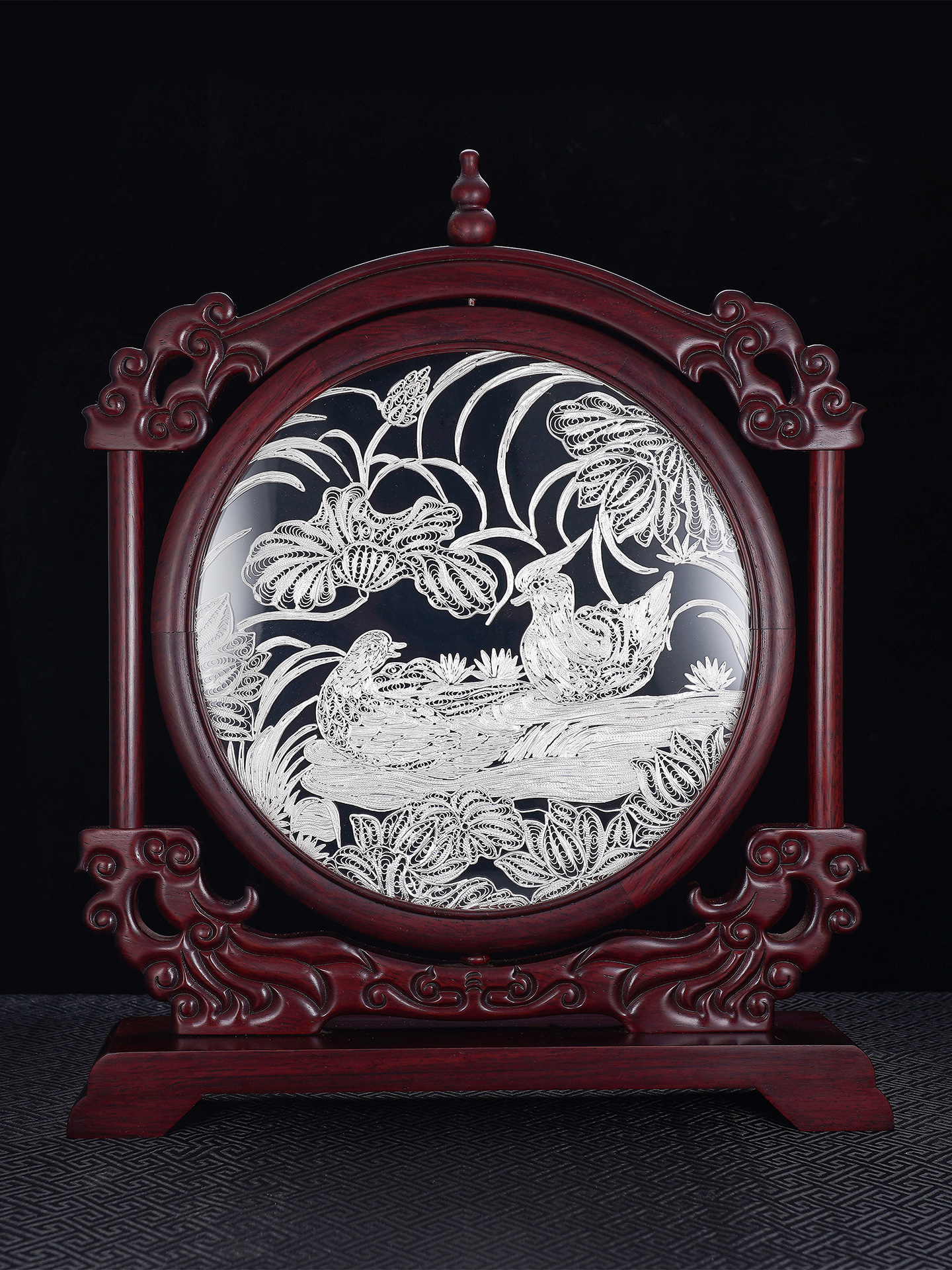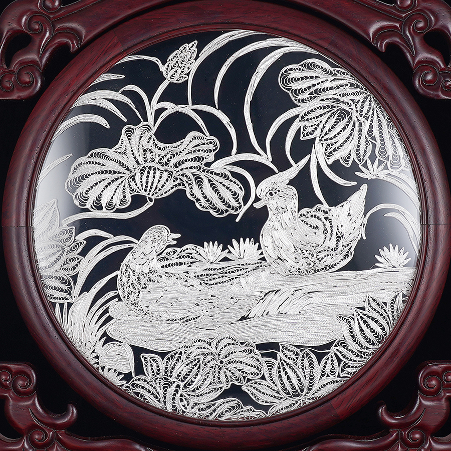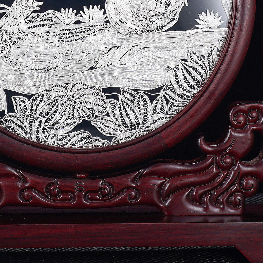 子佩集S999银手工银花丝【鸳鸯戏水】双面旋转花丝台屏【YYXSHATP】大师工坊原创设计2508
