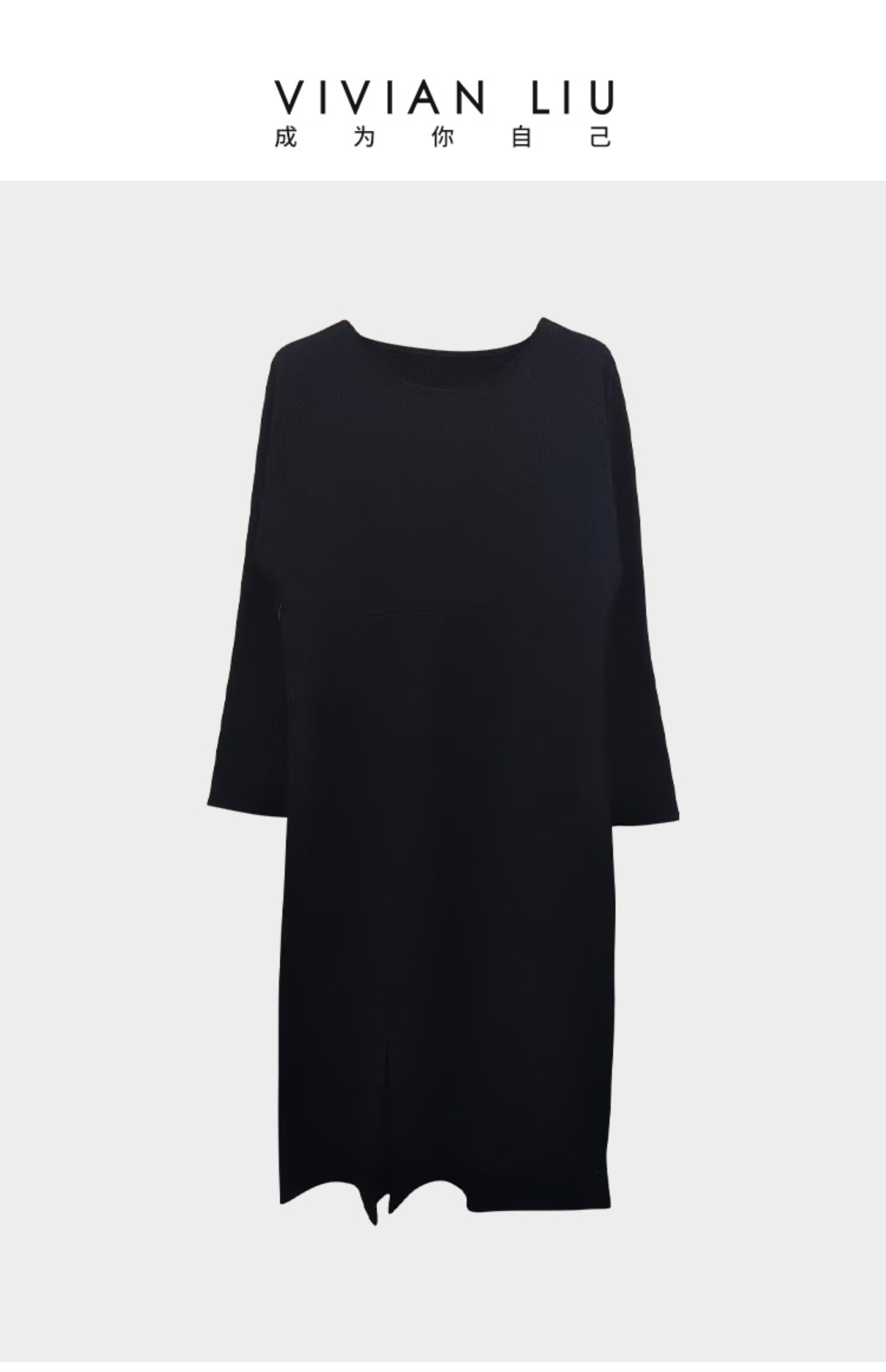 VIVIAN LIU R2357401秋女装新款时尚圆领宽松长袖针织连衣裙
