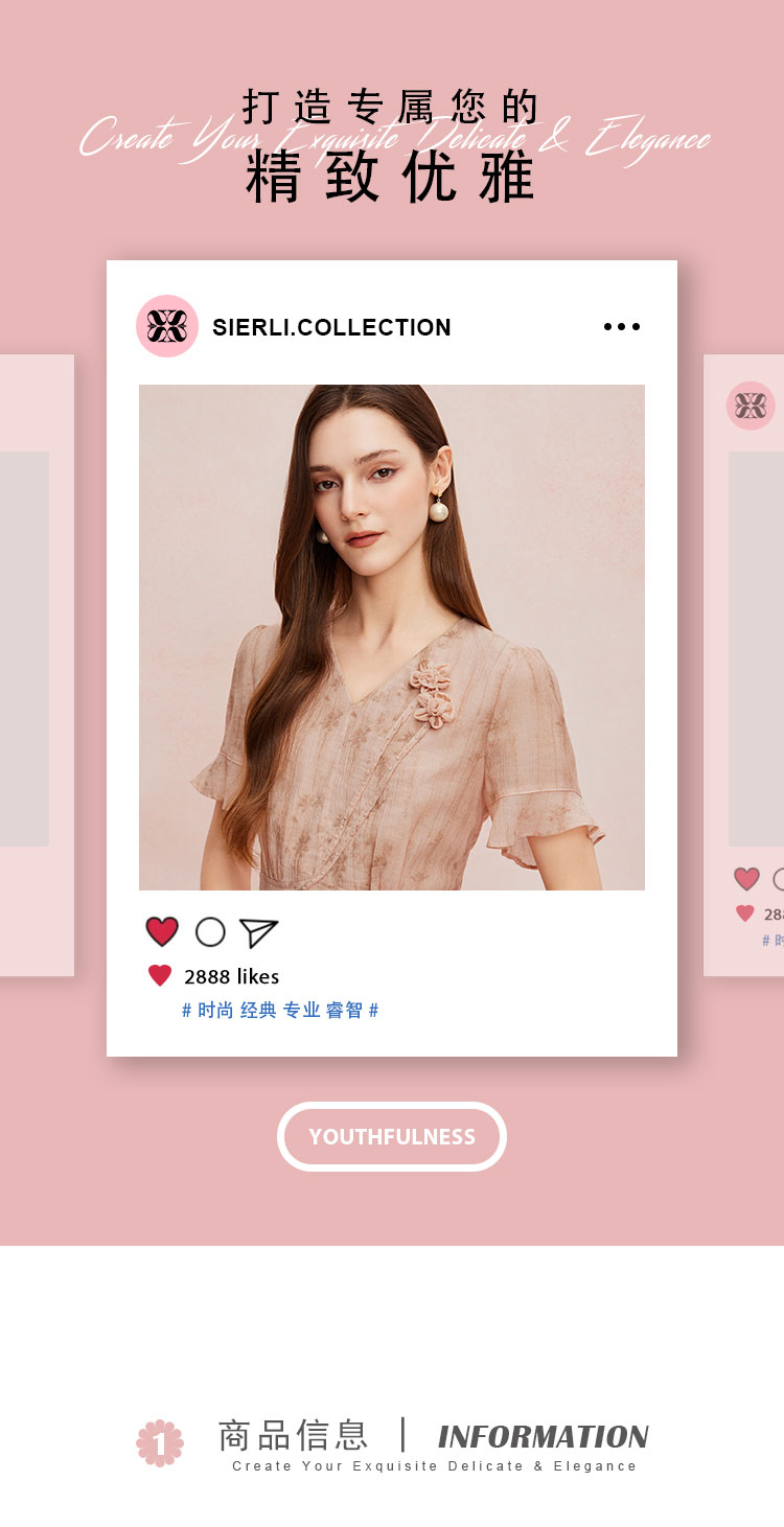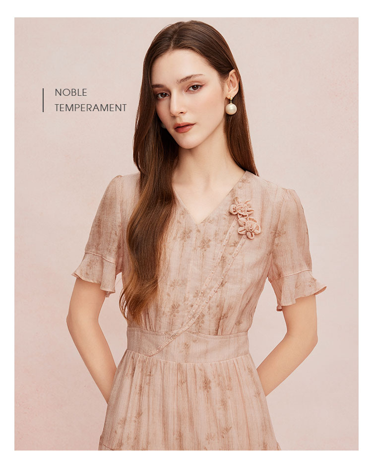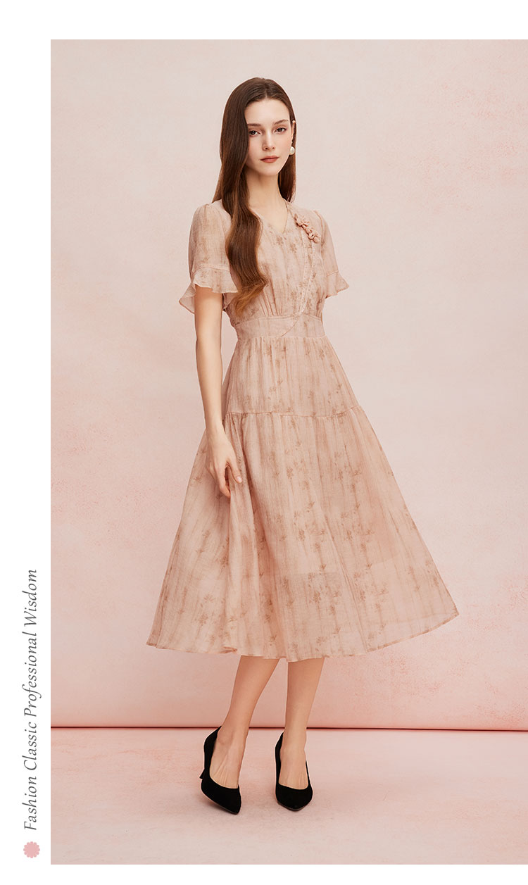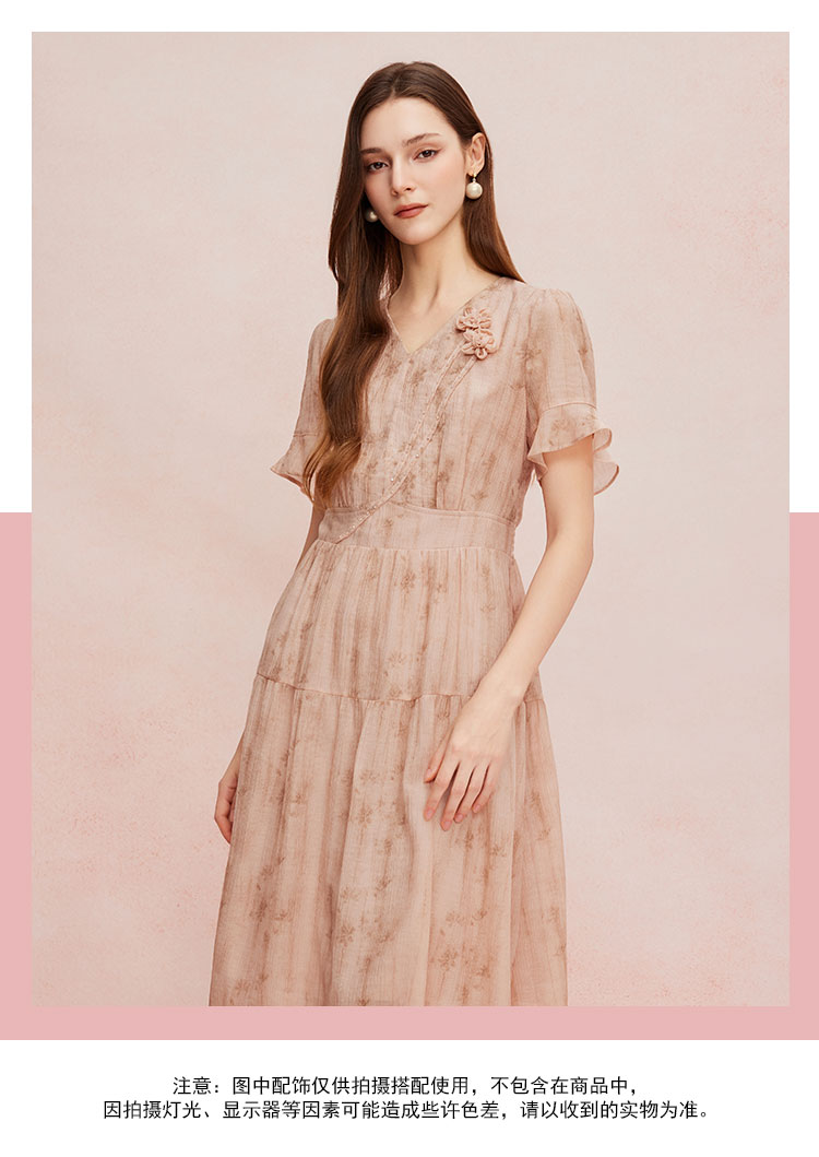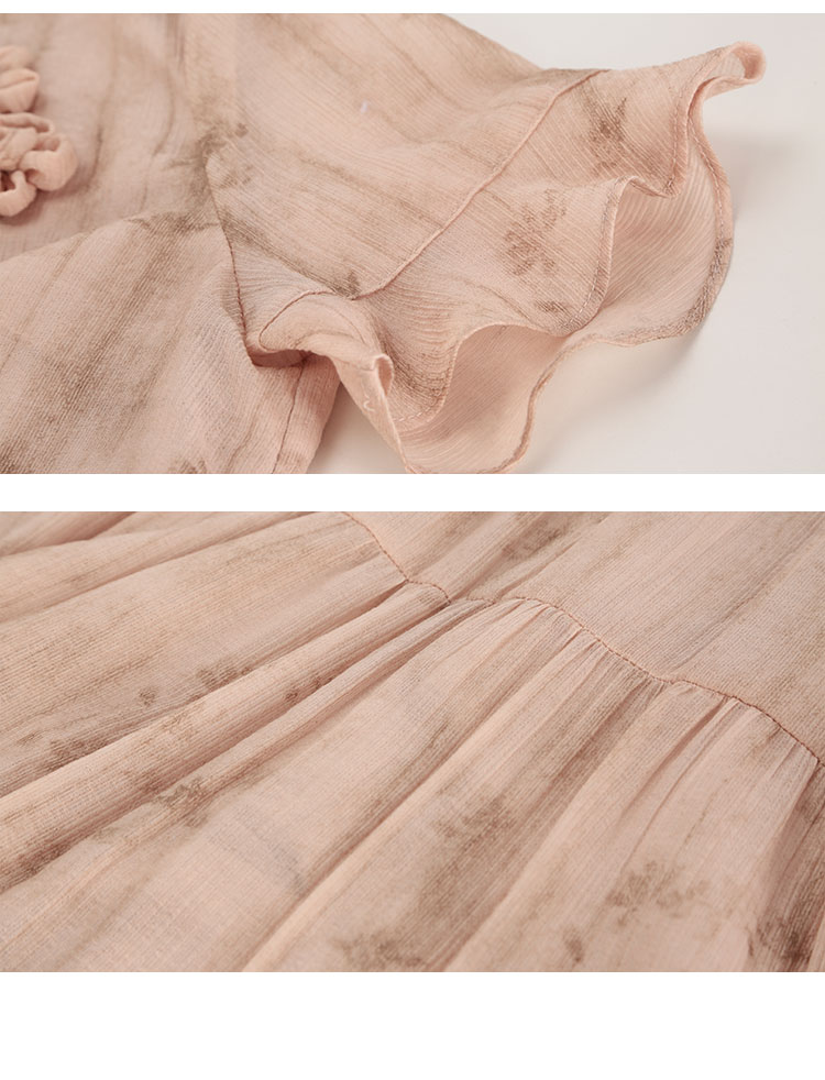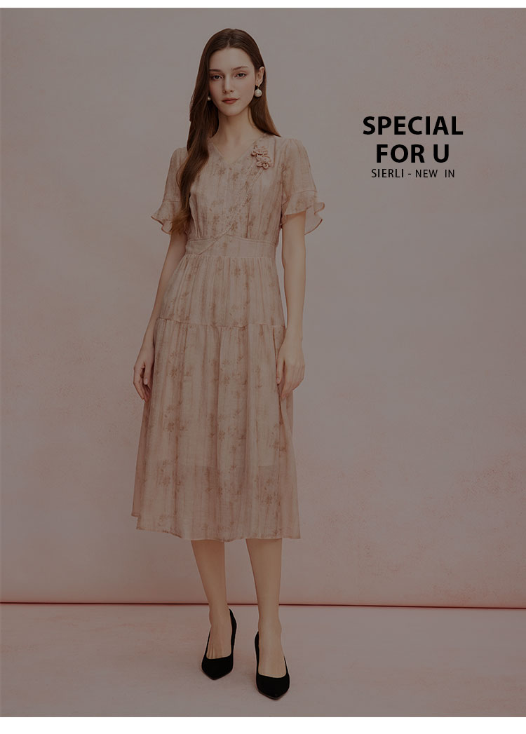 QF8B4斯尔丽25新款浪漫高级感立体盘花法式度假系列初恋A字晕染连衣裙