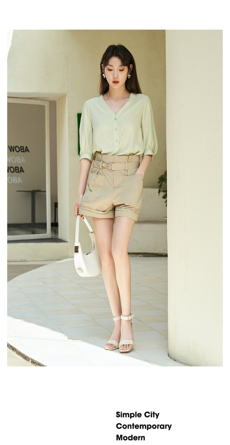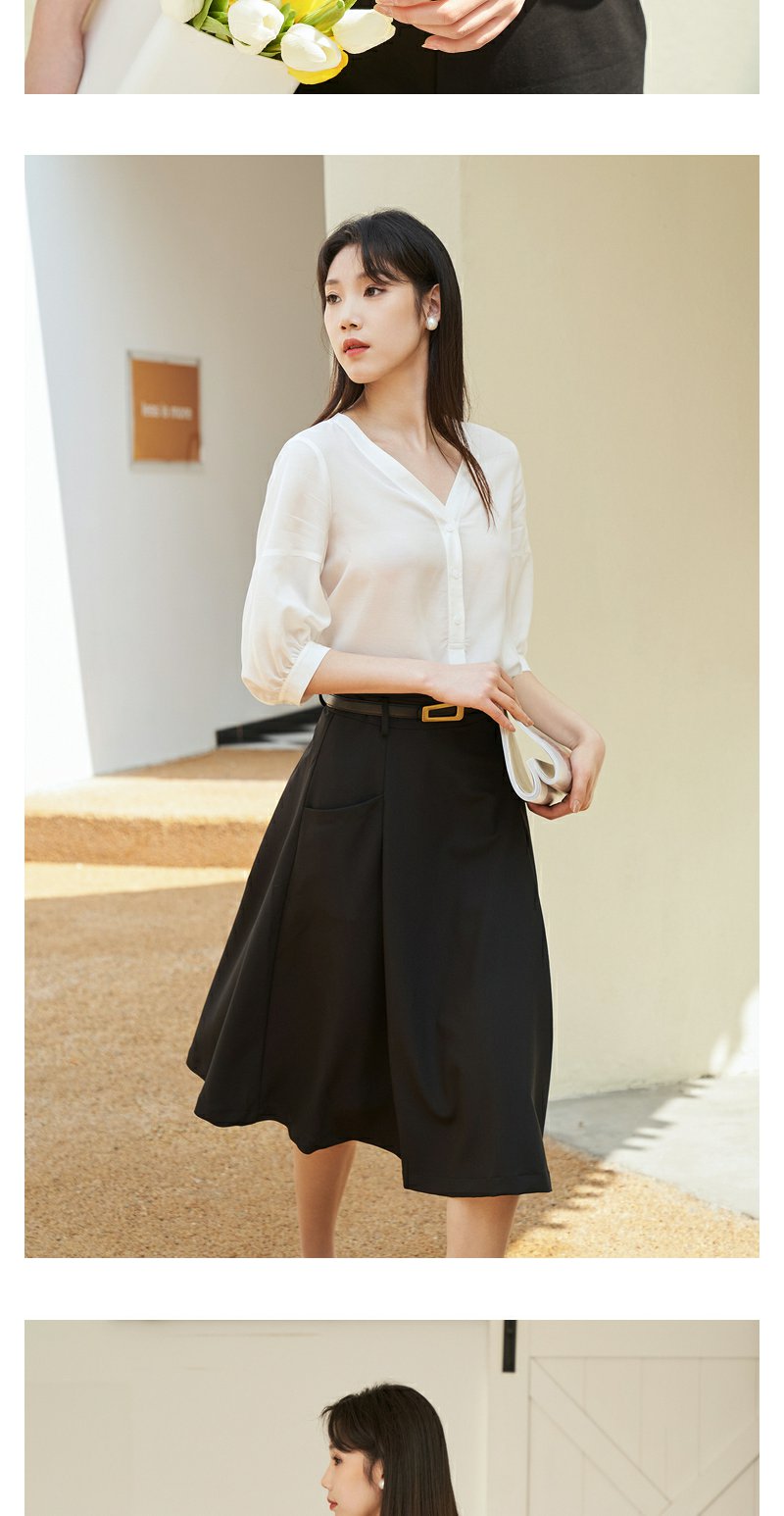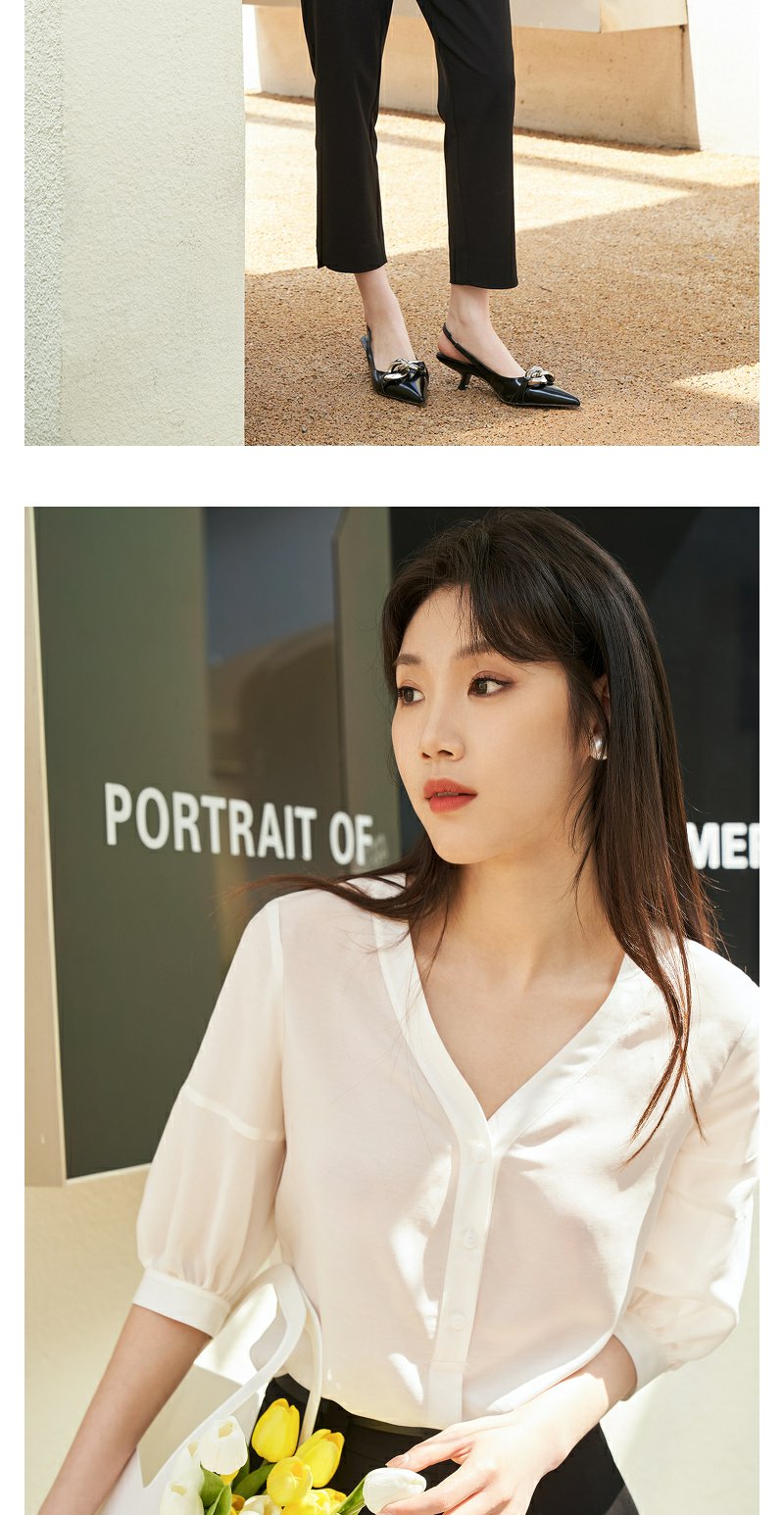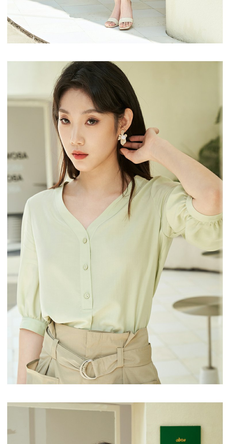 NEELLY纳俪夏季新款气质V领衬衫女简约通勤七分袖轻薄上衣百搭潮N23044R05506