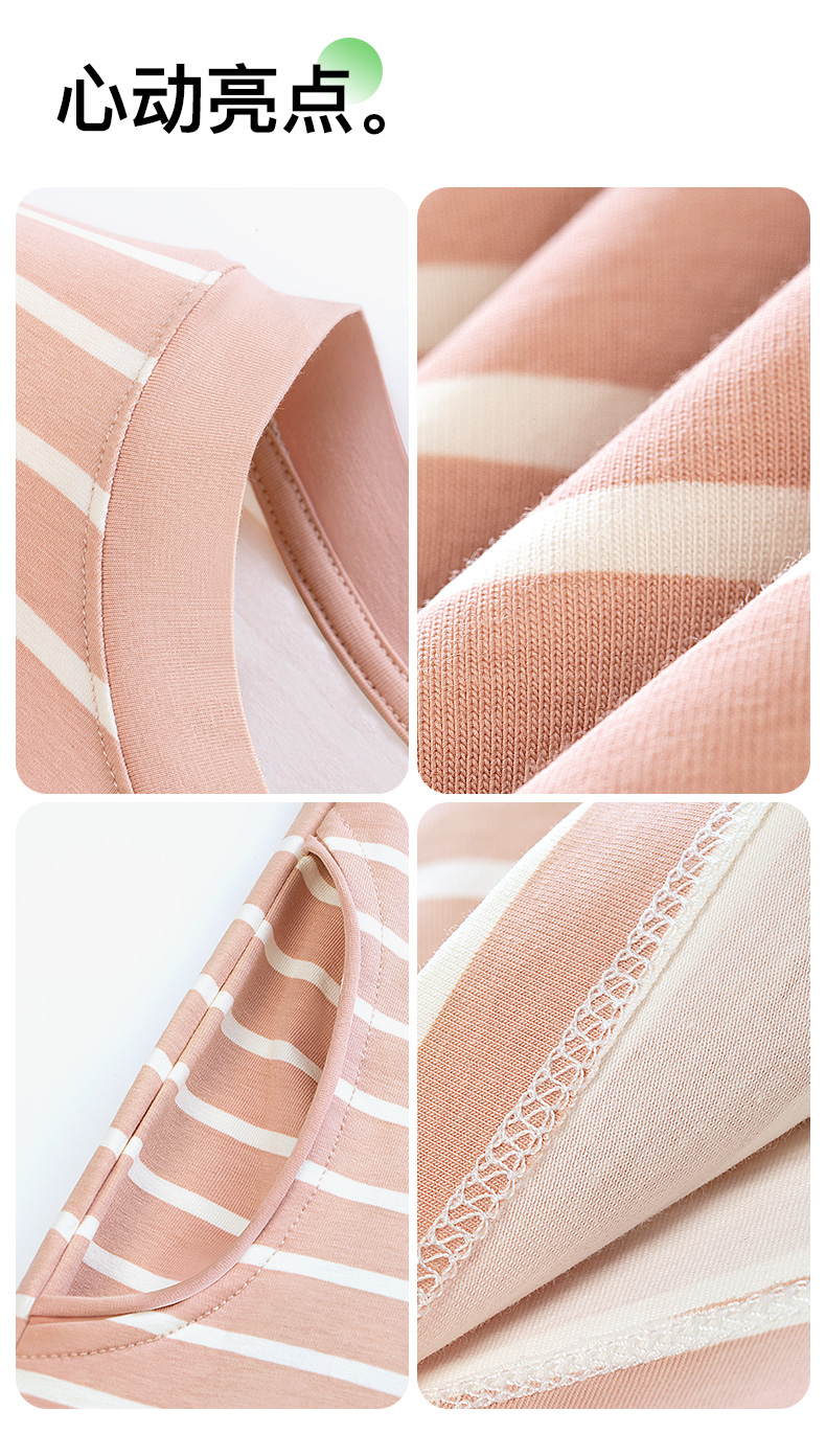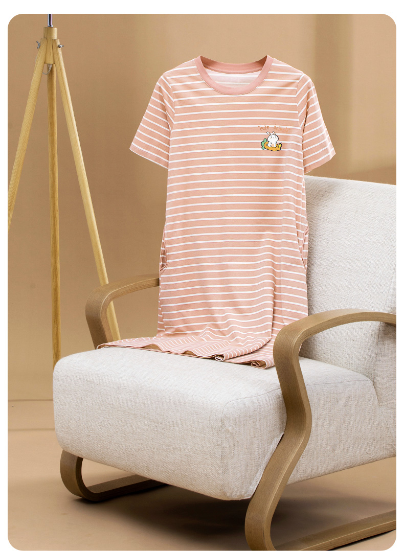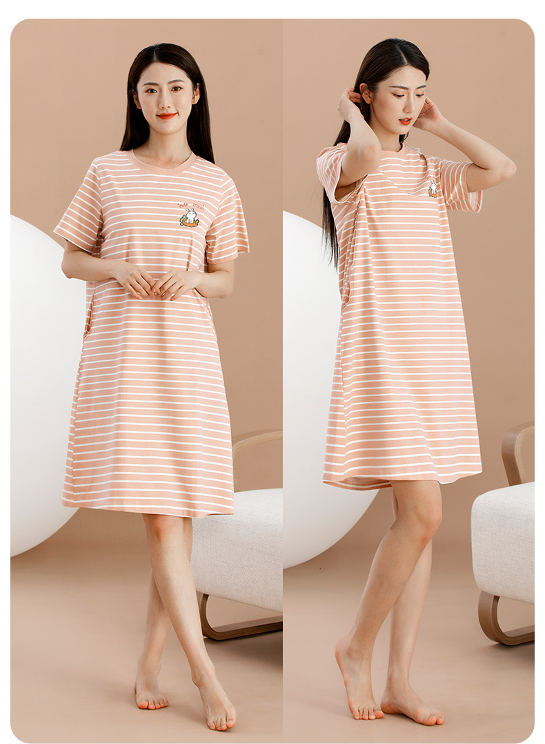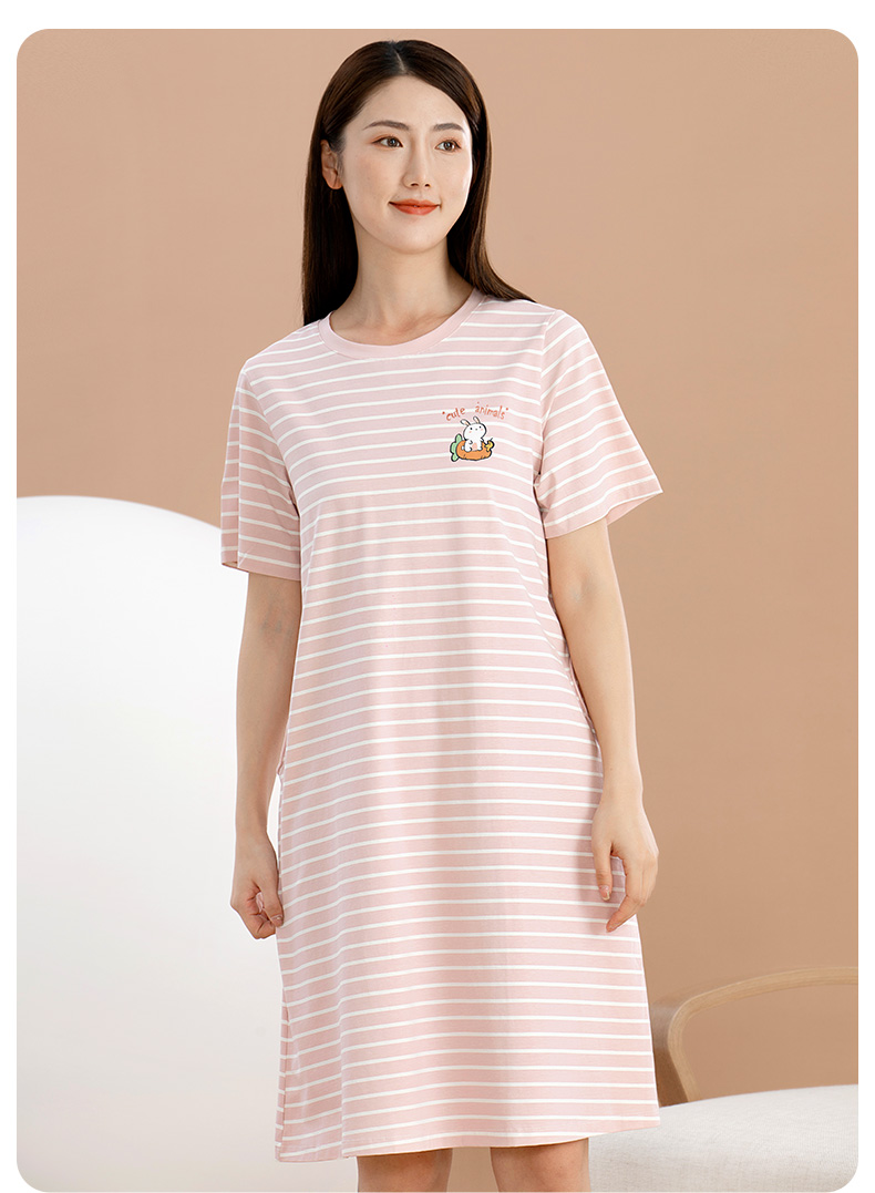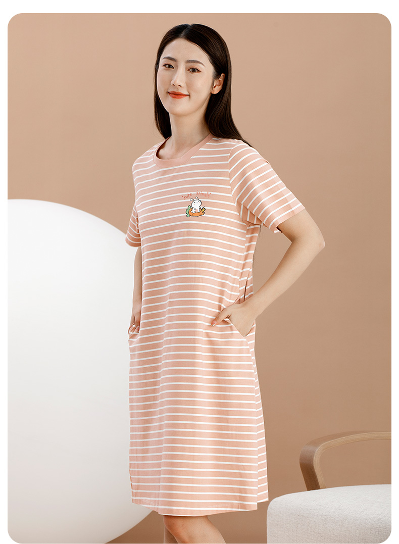 爱帝女士睡裙纯棉夏季薄款条纹家居裙