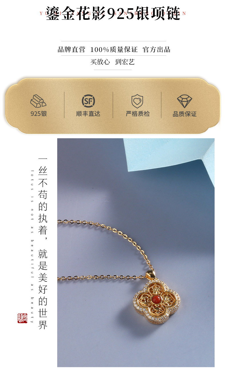 【宏艺珠宝】鎏金牡丹·足银挂坠
