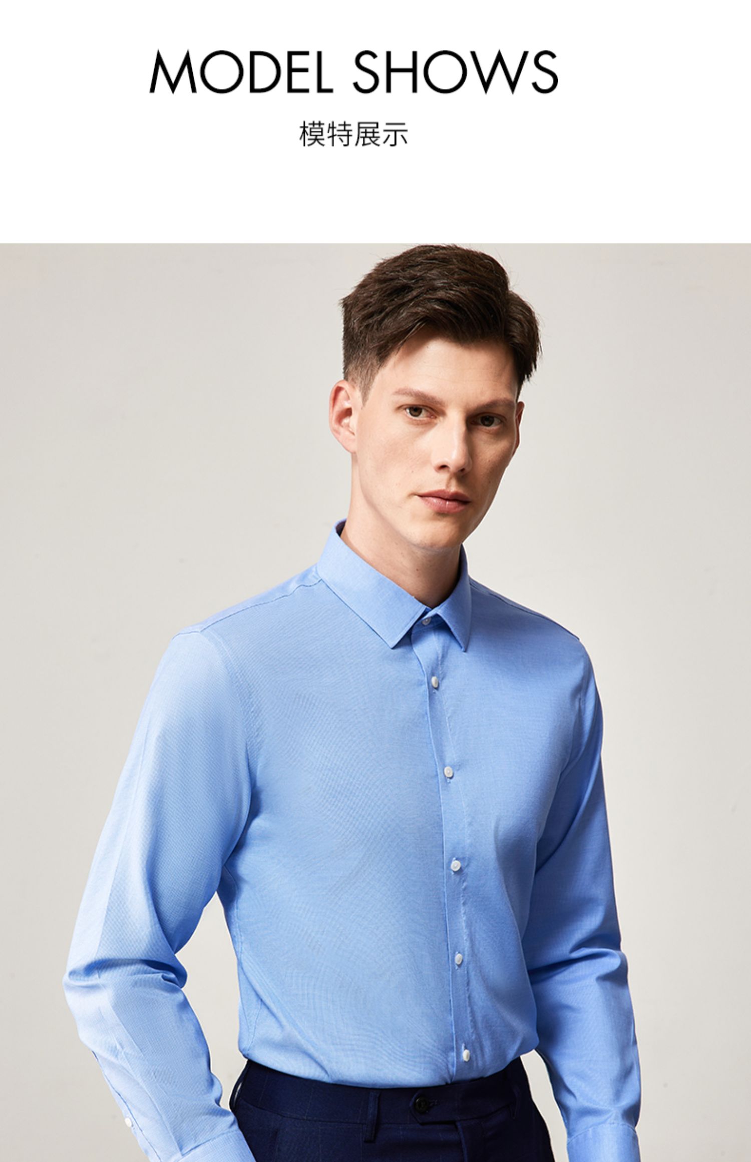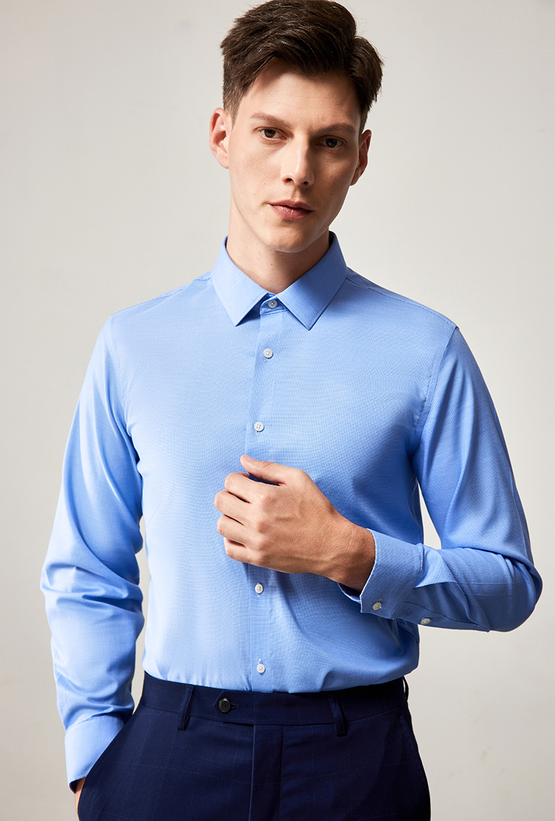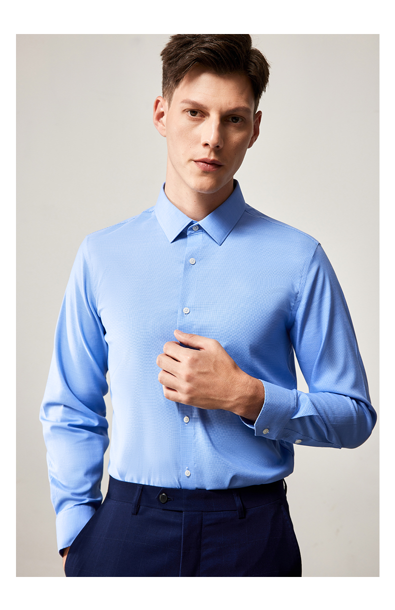 MD名盾长袖衬衫秋季纯色DP成衣免烫提花正装男士衬衣