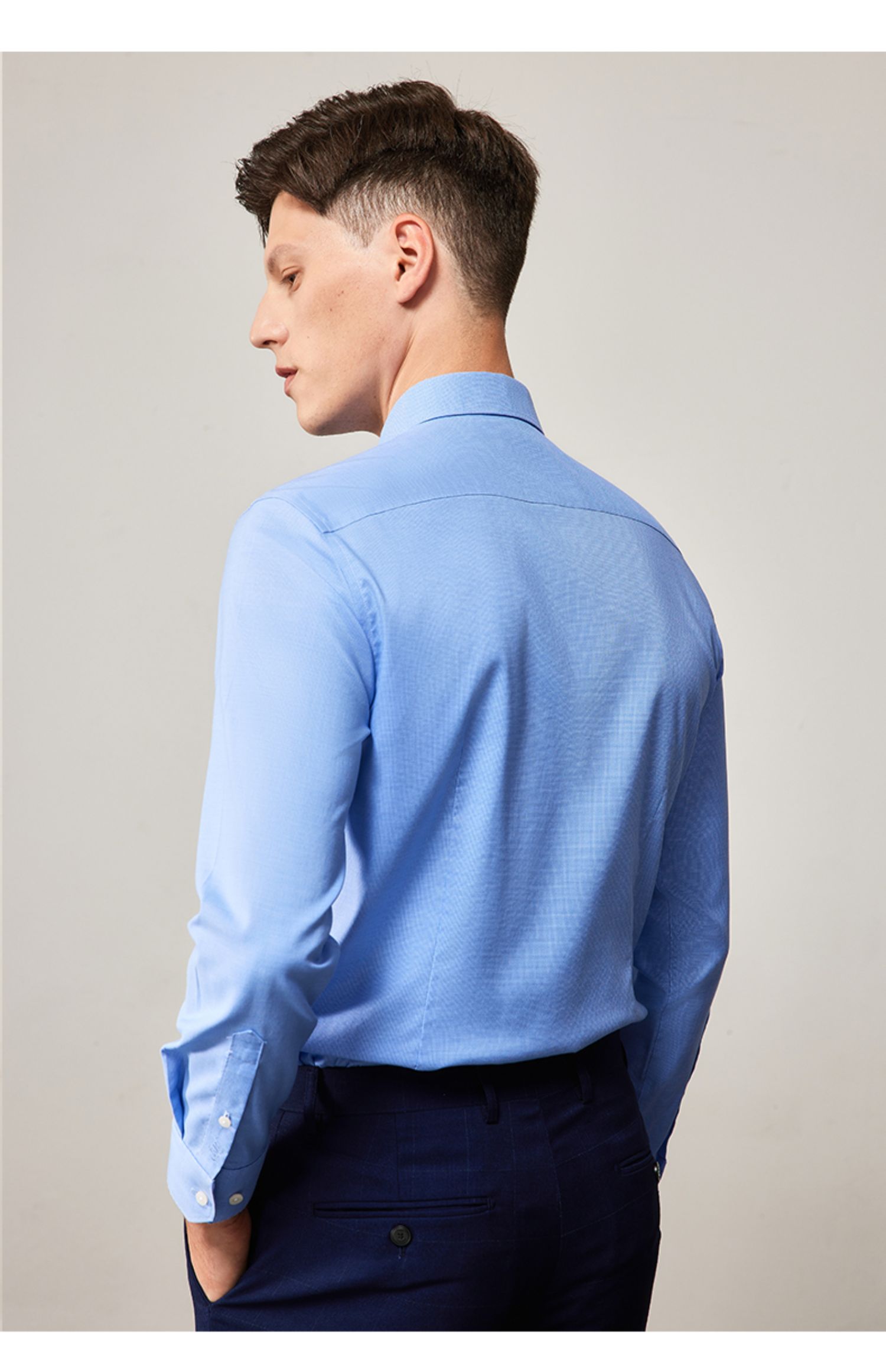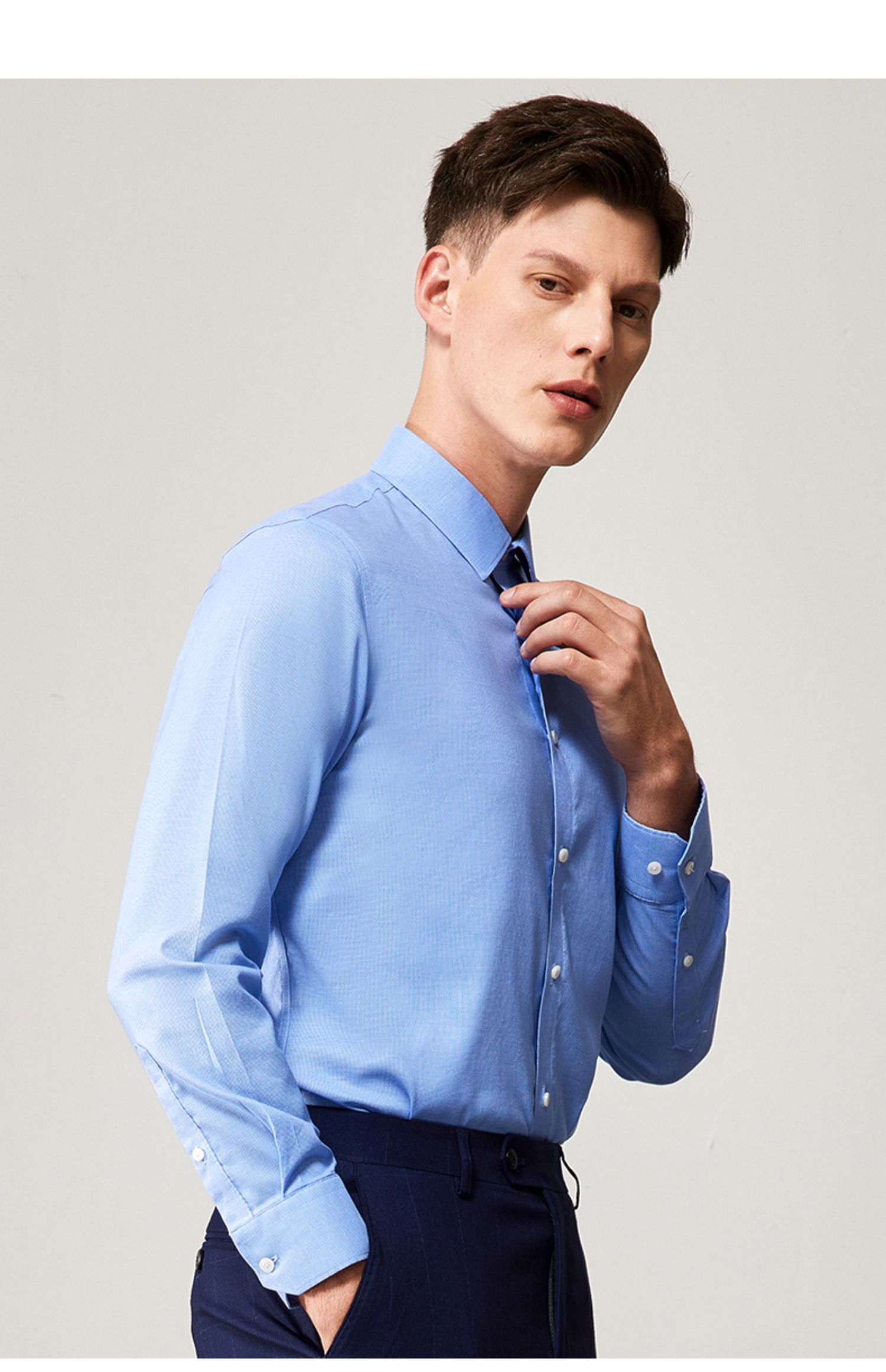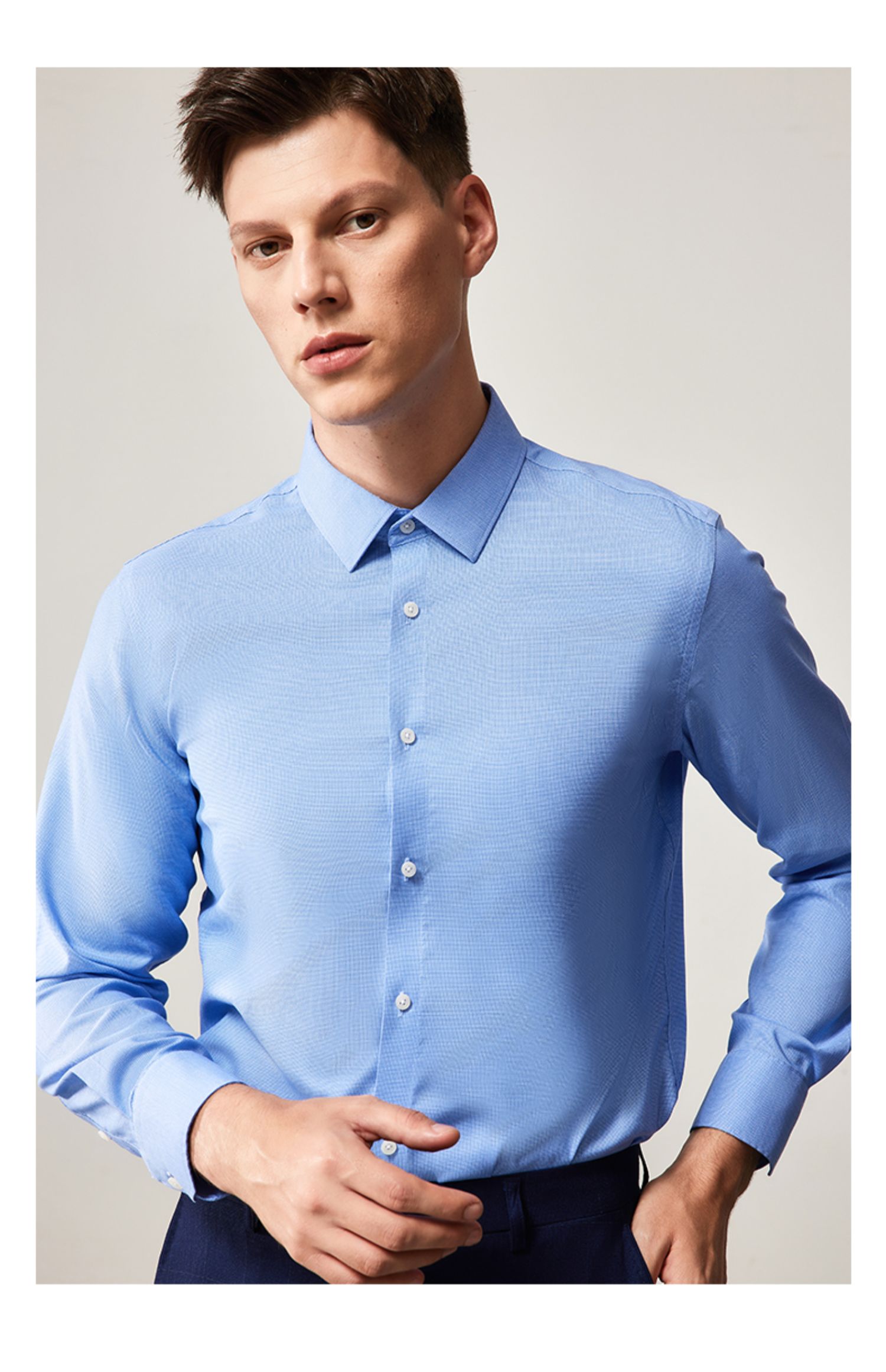 MD名盾长袖衬衫秋季纯色DP成衣免烫提花正装男士衬衣