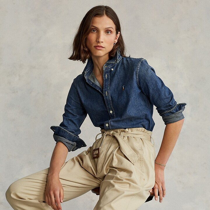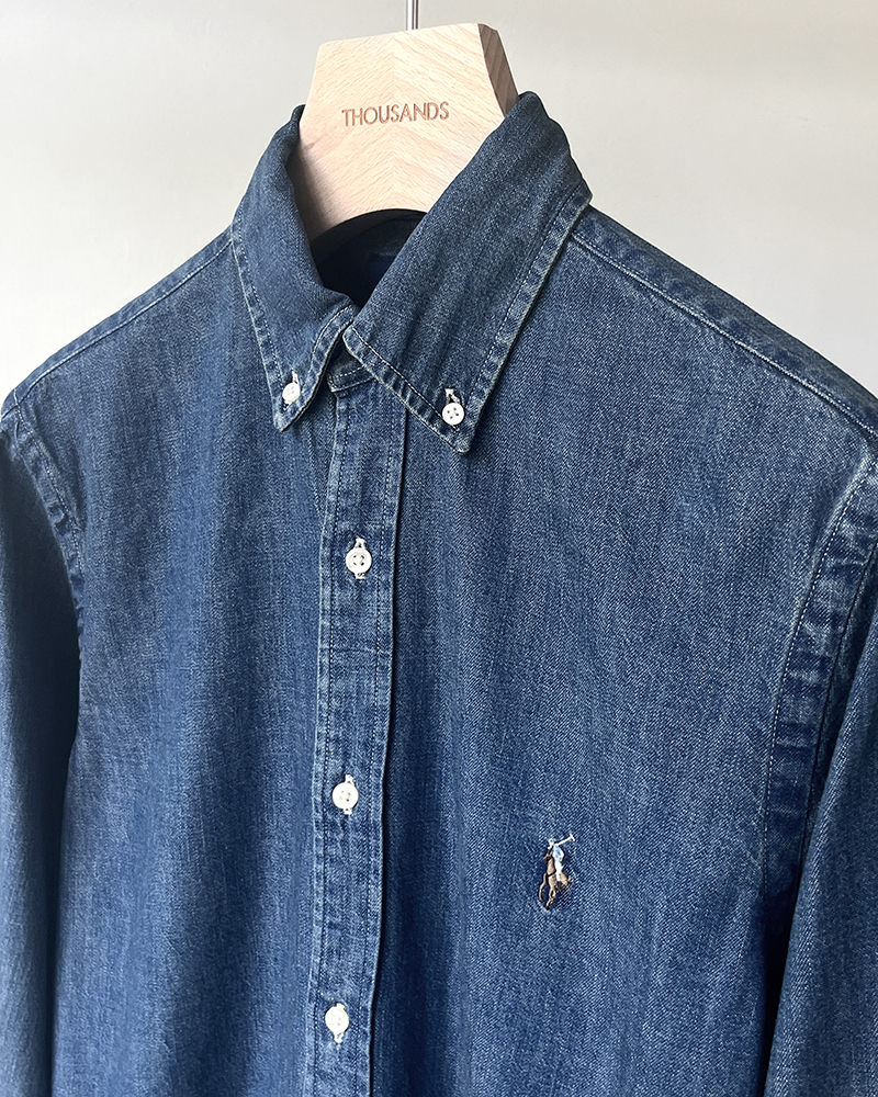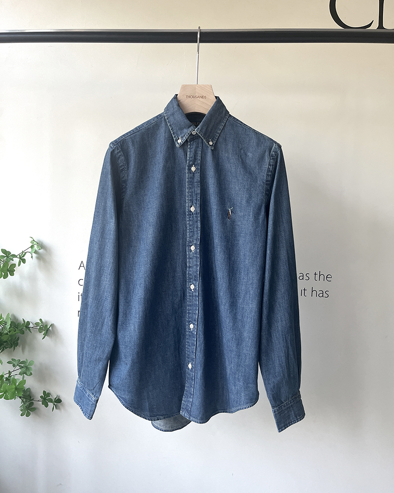 单品包邮现货 THS-无 RL马球 源厂尖尾PRL蓝染磨洗ClassicFit彩马牛仔衬衣男女 AG1300