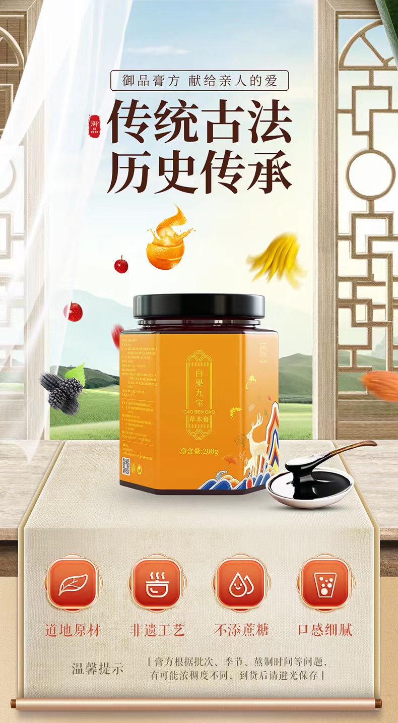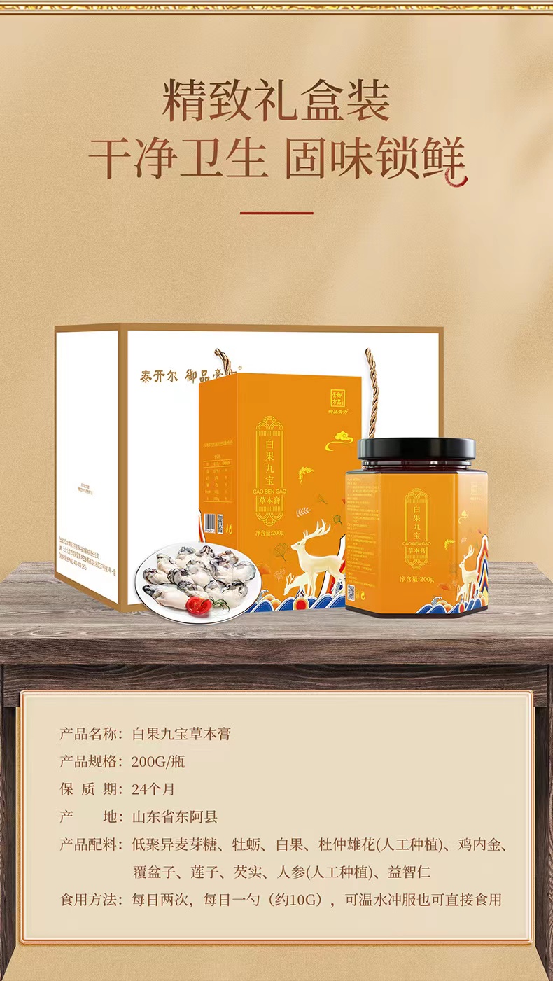 御品膏方-白果九宝草本膏杜仲雄花牡蛎覆盆子人参益智仁膏滋 200g/瓶