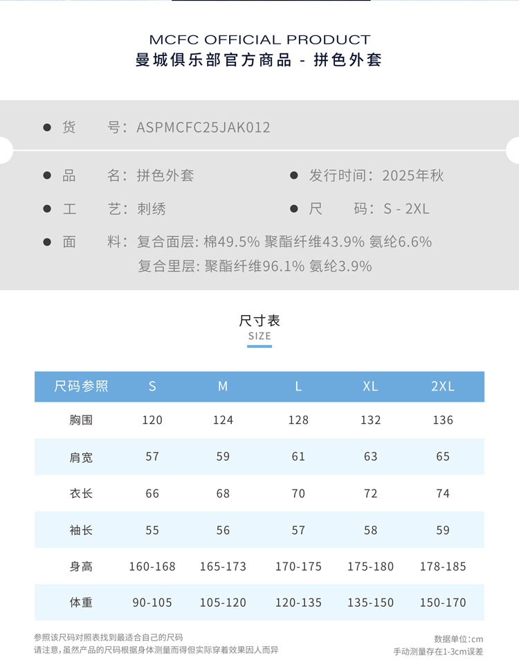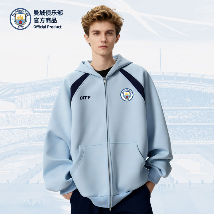 【官方正版】曼城俱乐部 | 秋季新款拼色外套连帽长袖上衣运动休闲