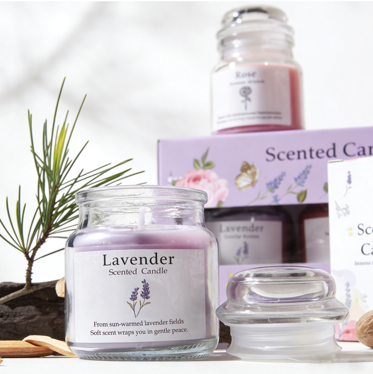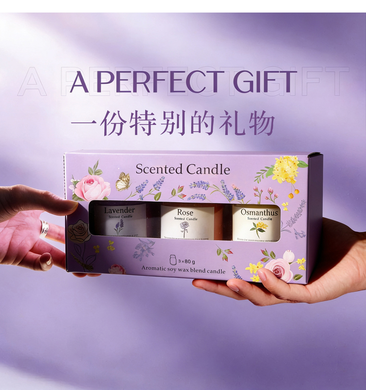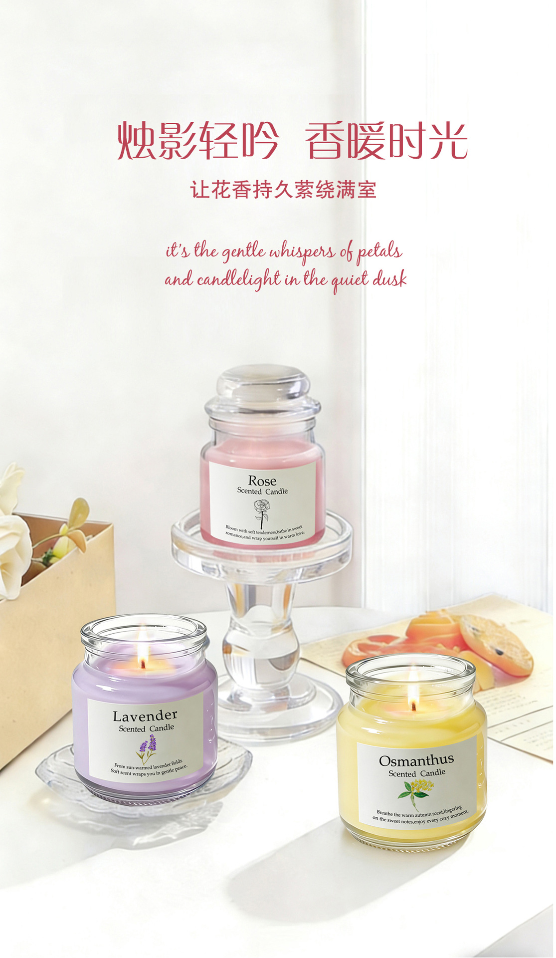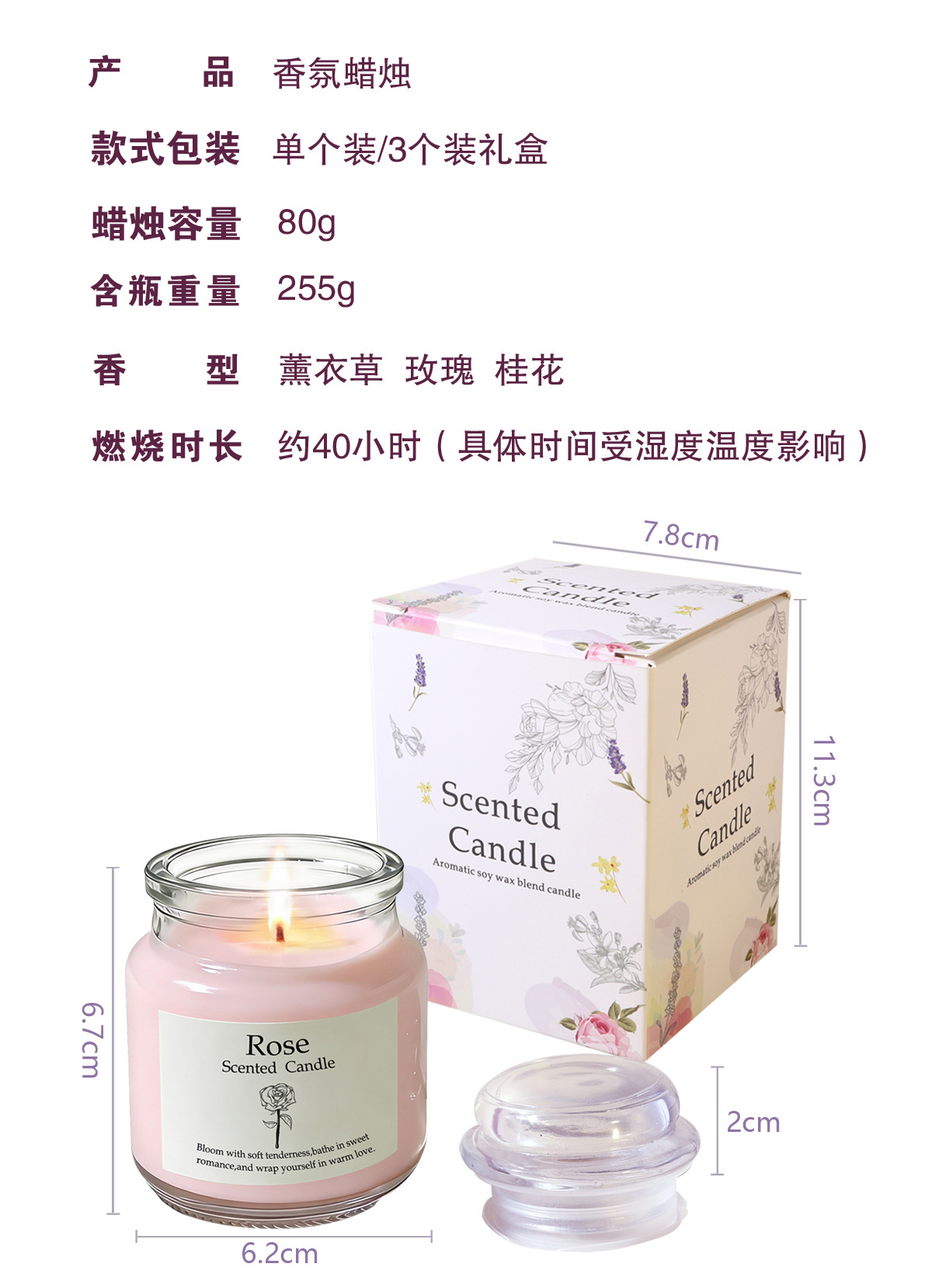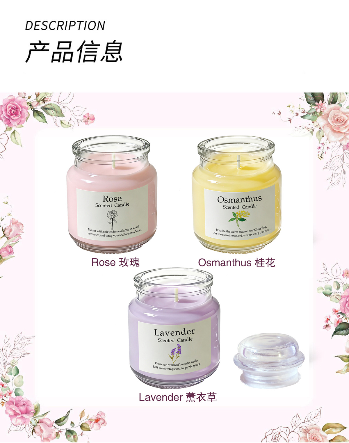 【浪漫香调!无烟燃烧】3色玫瑰桂花薰衣草香薰蜡烛杯蜡香氛蜡烛浪漫伴手礼生日礼物蜡烛。xb