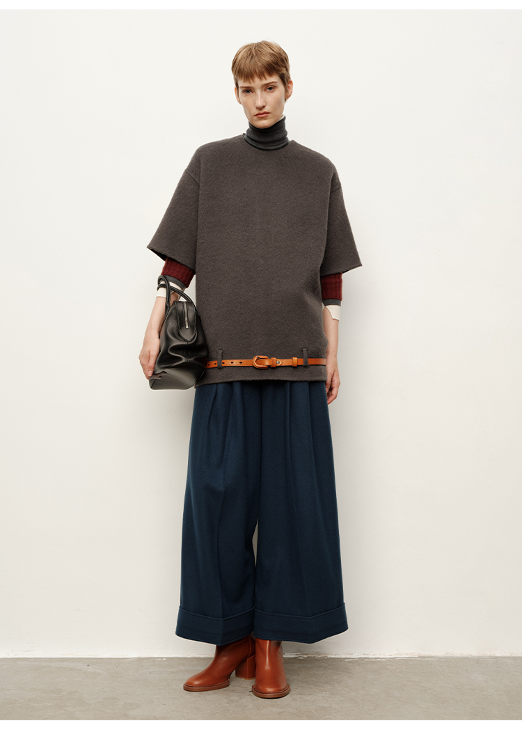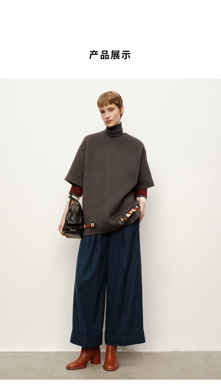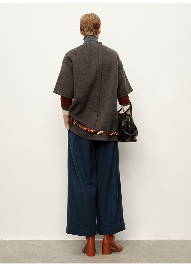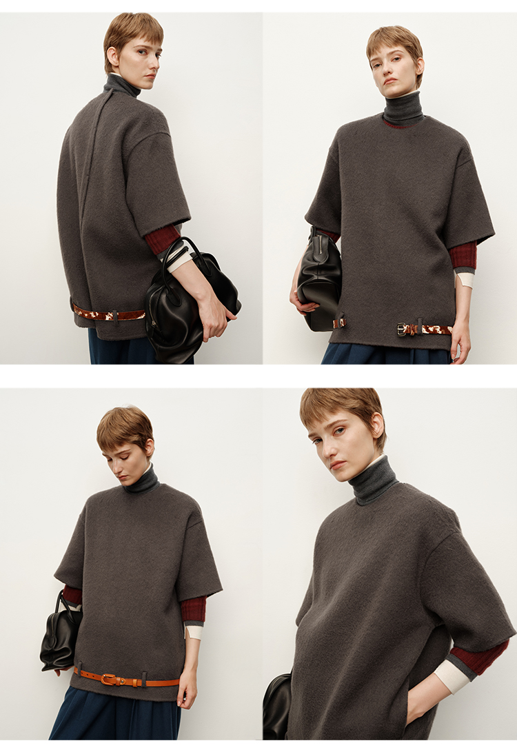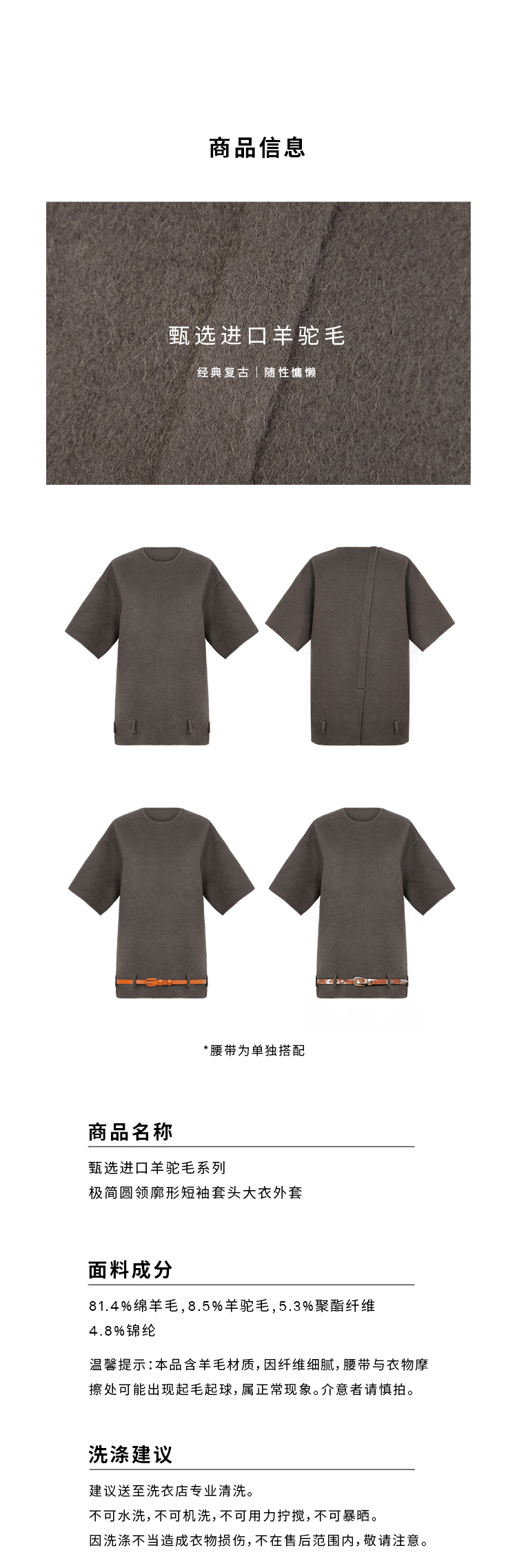 HIDEMI 甄选羊驼毛系列混纺极简圆领廓形短袖套头大衣外套