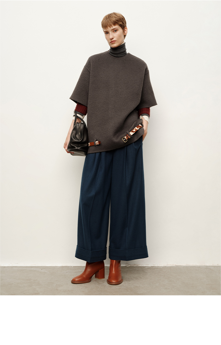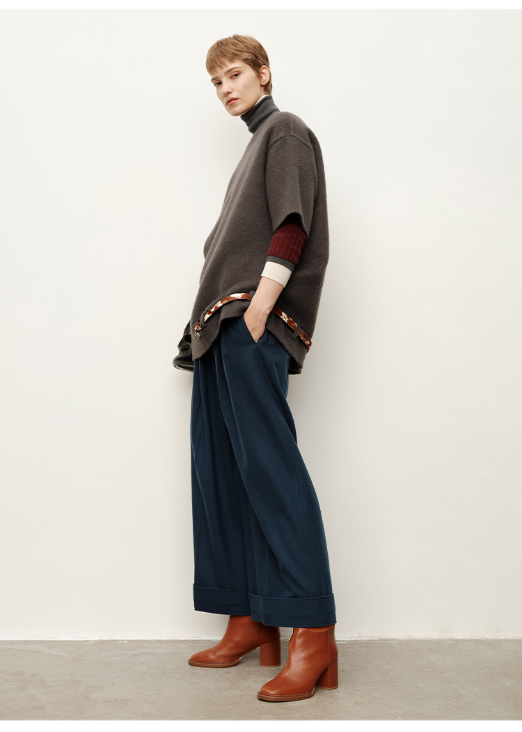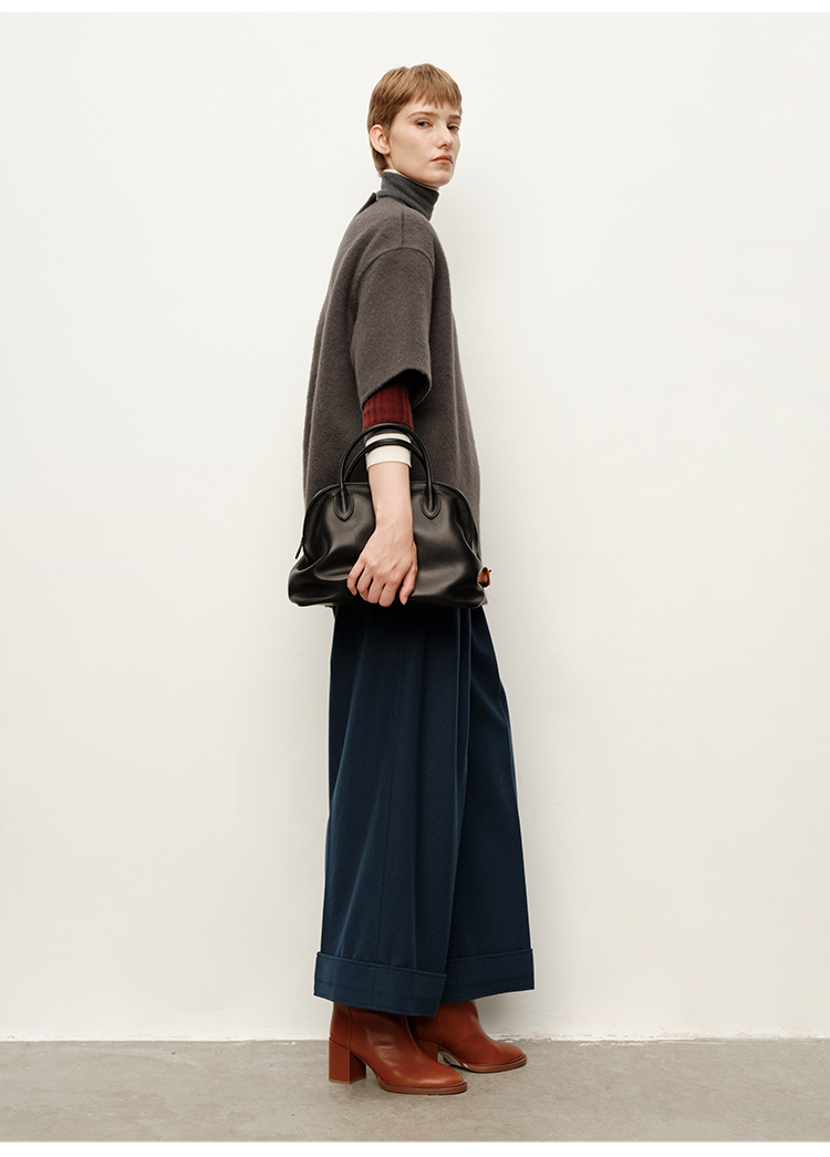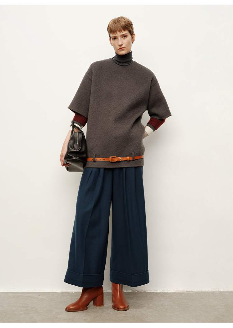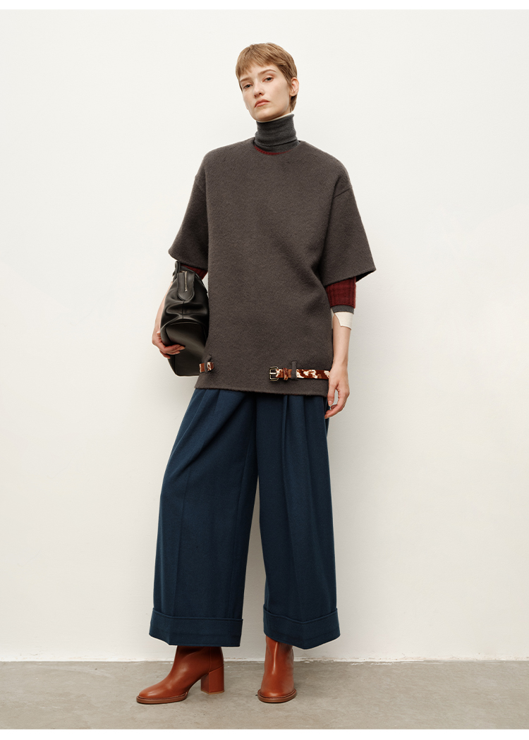 HIDEMI 甄选羊驼毛系列混纺极简圆领廓形短袖套头大衣外套