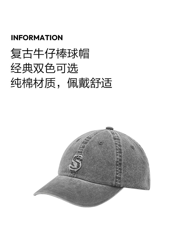 森马棒球帽男复古水洗牛仔鸭舌帽2025新款纯棉遮阳帽情侣帽子潮流