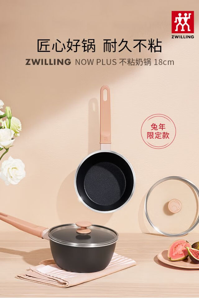 双立人Now Plus18cm不粘奶锅泡面锅不粘锅电磁炉小锅小汤锅(兔年限定款)