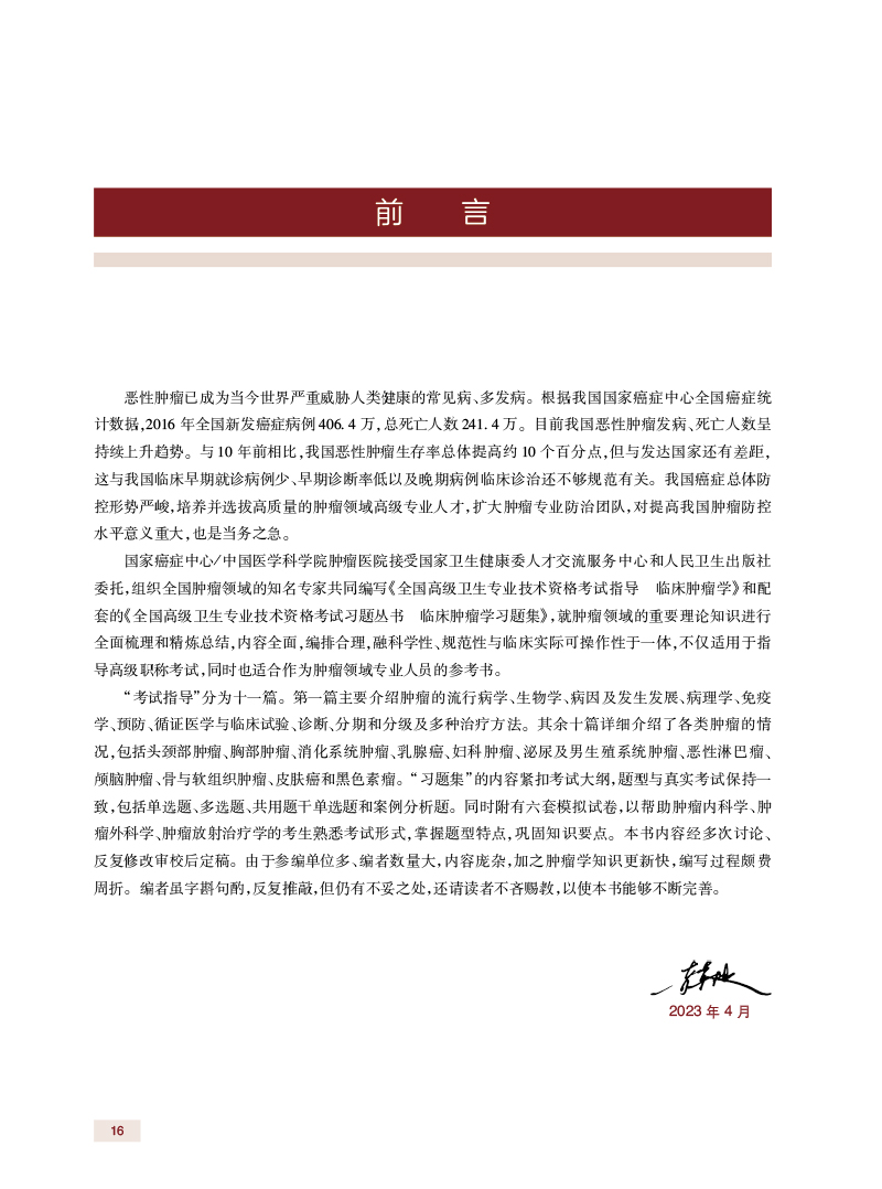 2023临床肿瘤学考试指导人卫版全国高级卫生专业技术资格考试副高级职称考用书人民卫生出版社正高副高教材考试教材赫捷主编