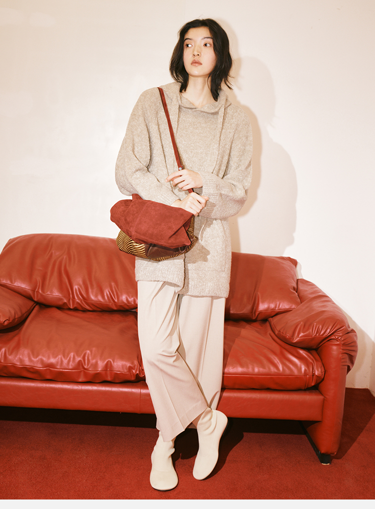 hidemi副线小h 小男孩色织格纹有机棉休闲宽松长袖衬衫外套长裤包方巾四件套