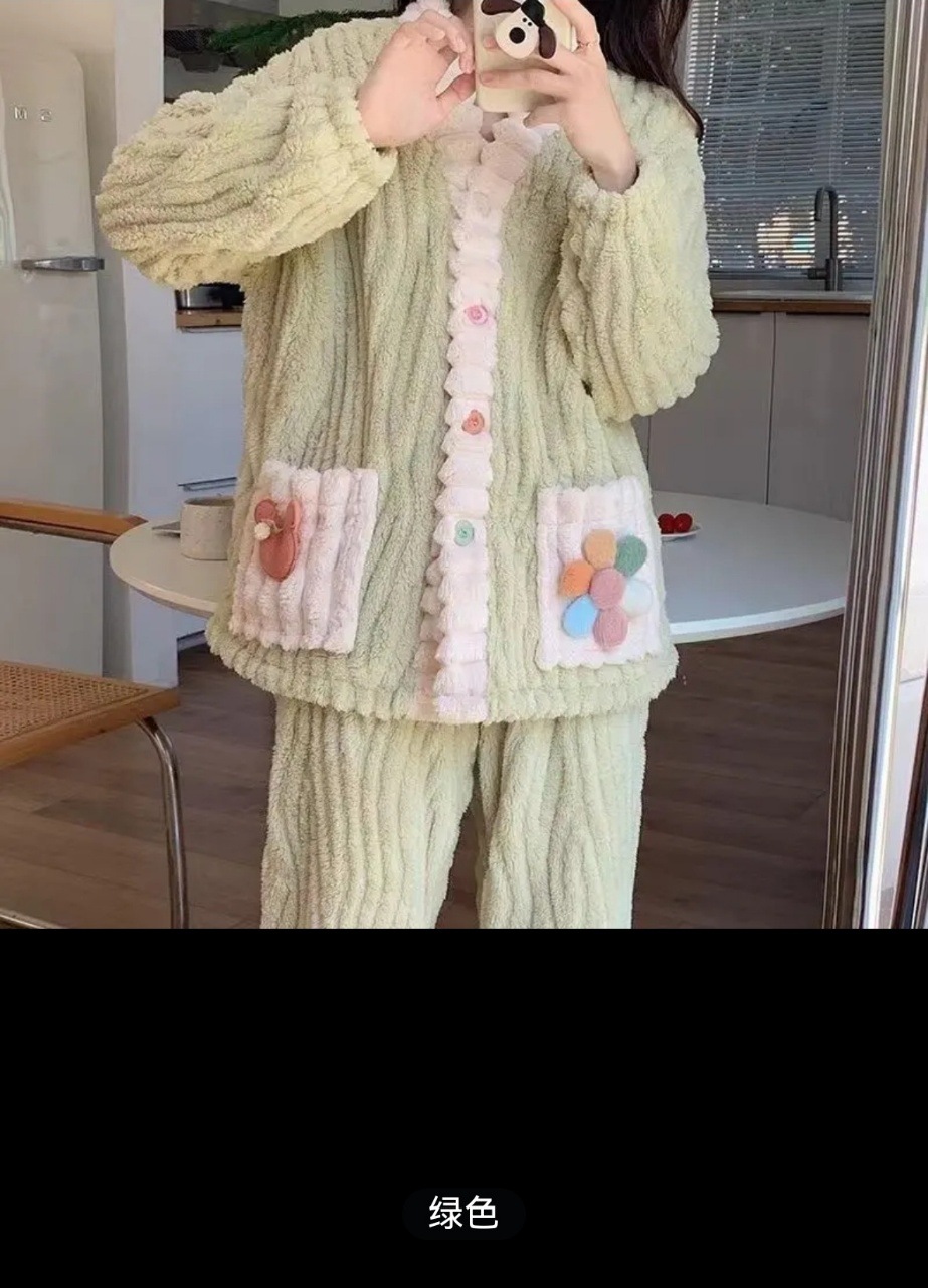【冬日寒意!珊瑚绒睡衣将守护您一夜。】新款珊瑚绒睡衣冬季女款加绒加厚法兰绒秋冬款家居服卡通套装。ry