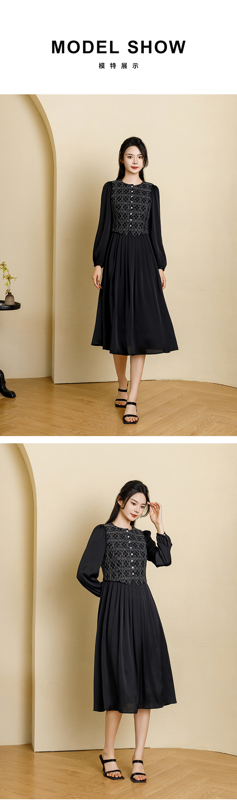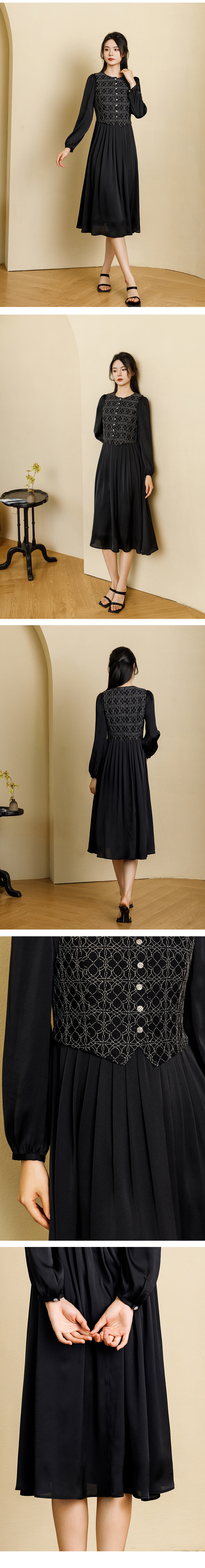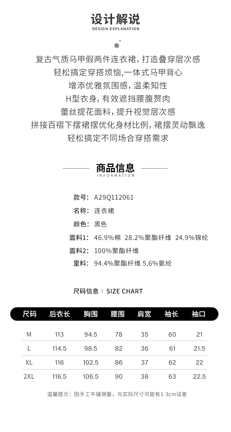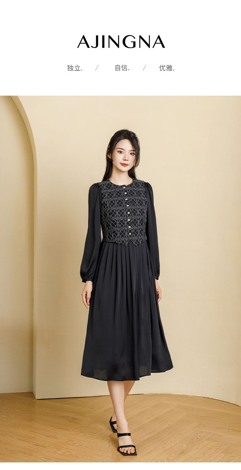 【商城同款】阿菁娜2024秋季新款复古气质马甲假两件连衣裙A29Q112061
