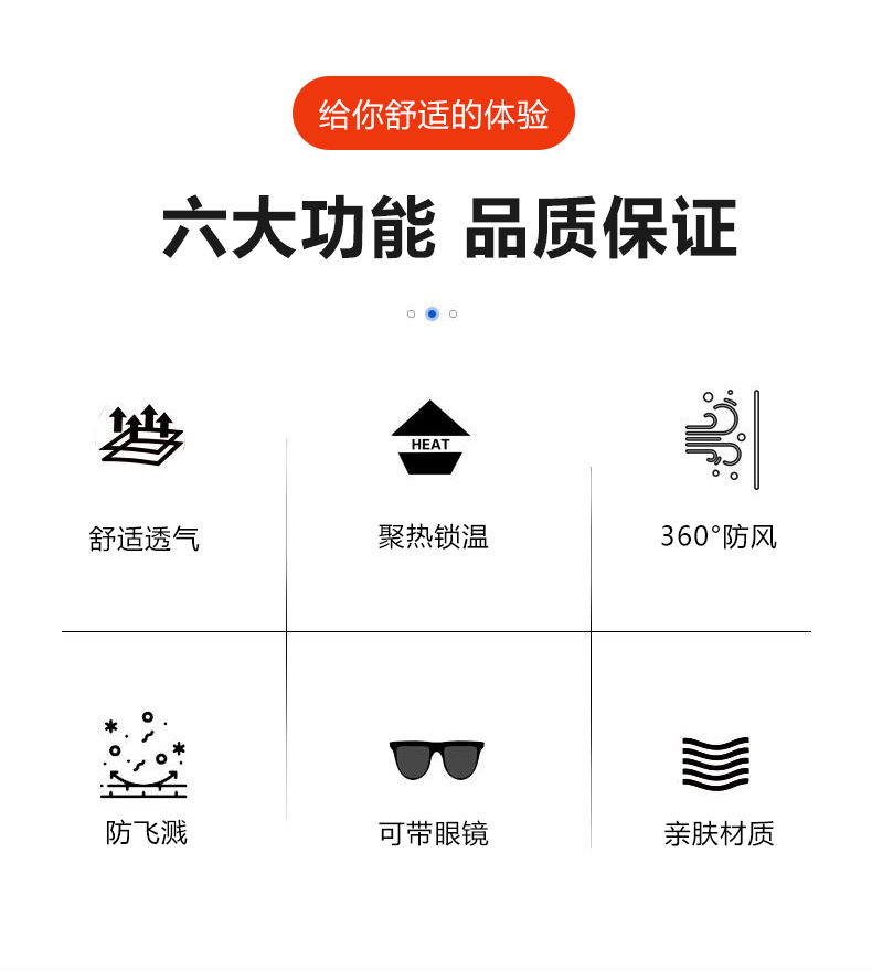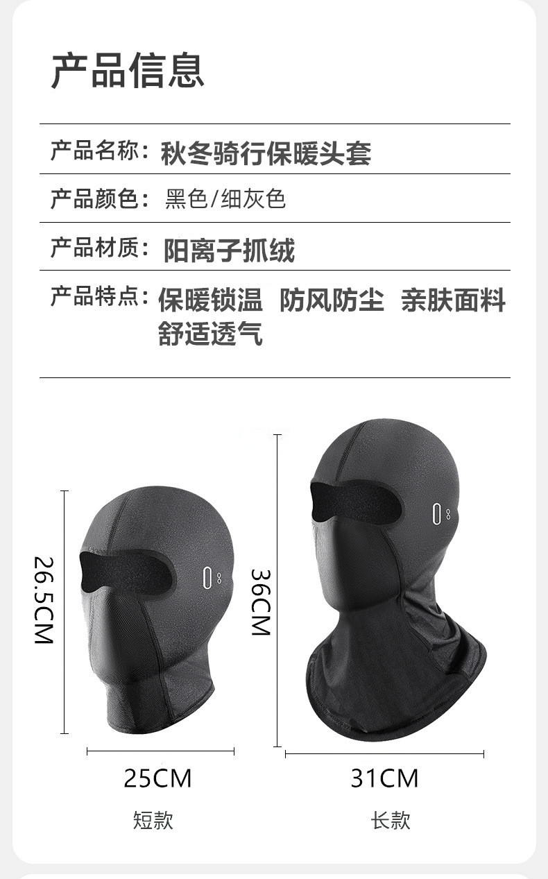 【拍1发2方便搭配使用】男士冬季骑车防风全脸冬天摩托车电动车保暖面罩帽子头套