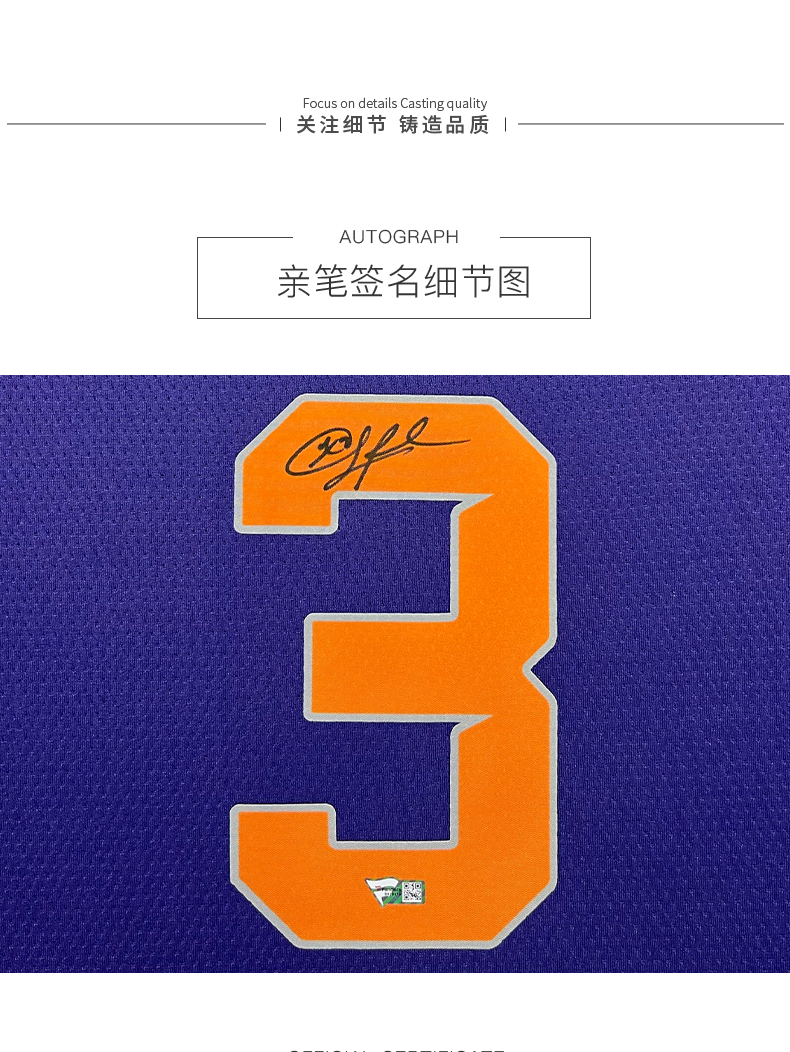 收藏系列 保罗 太阳队3号紫色 亲笔签名球衣