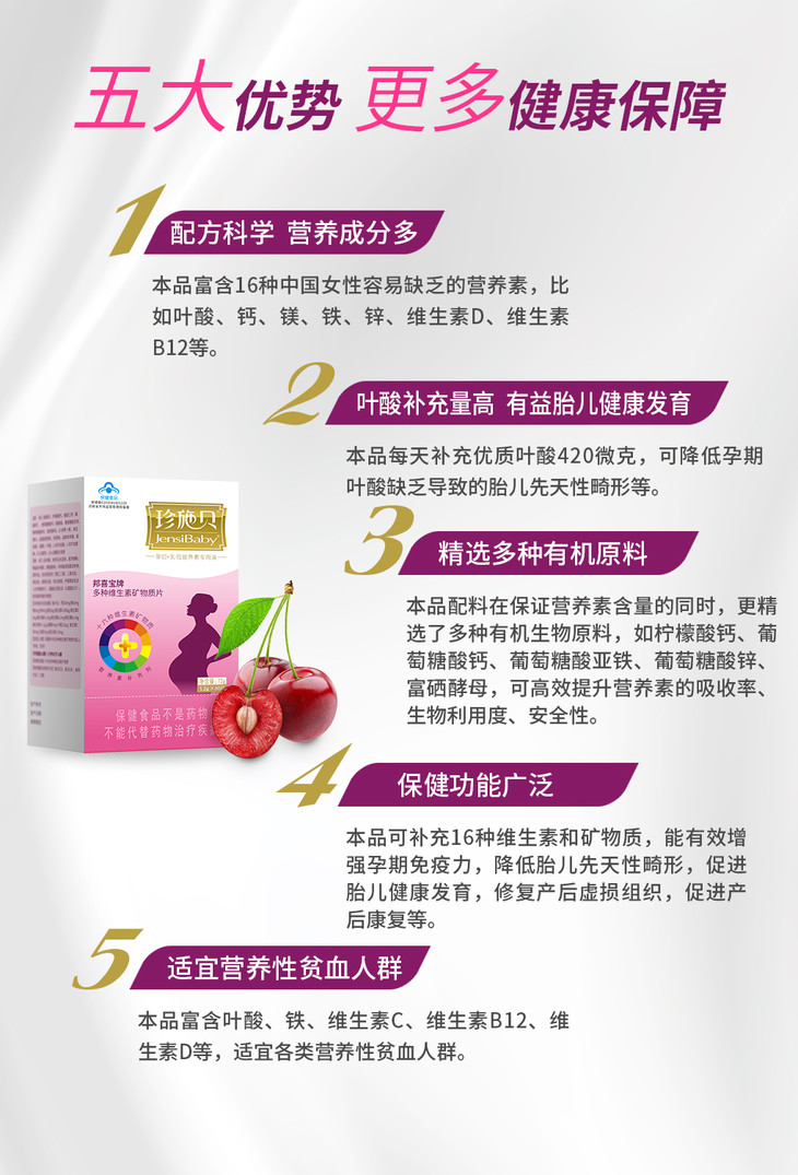 F038 (第三代) 珍施贝多种维生素矿物质片 叶酸含量420ug/天 1.2g*60片