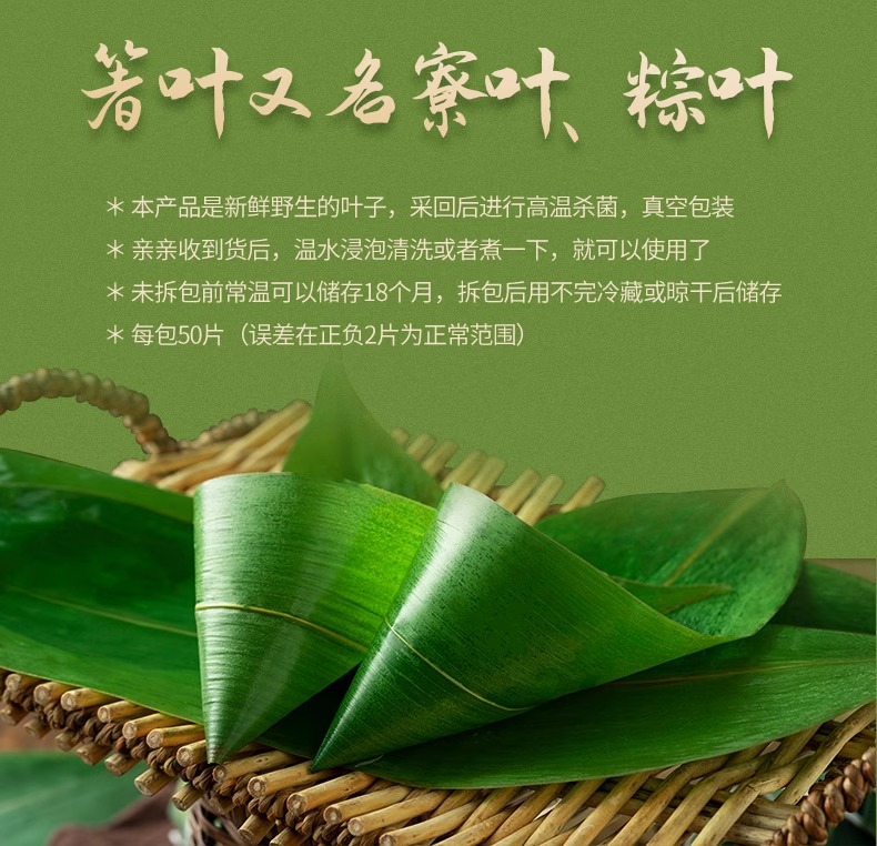 香源 天然新鲜 包粽子 粽叶 50片/袋