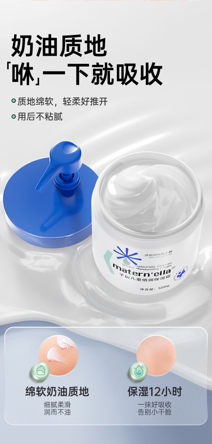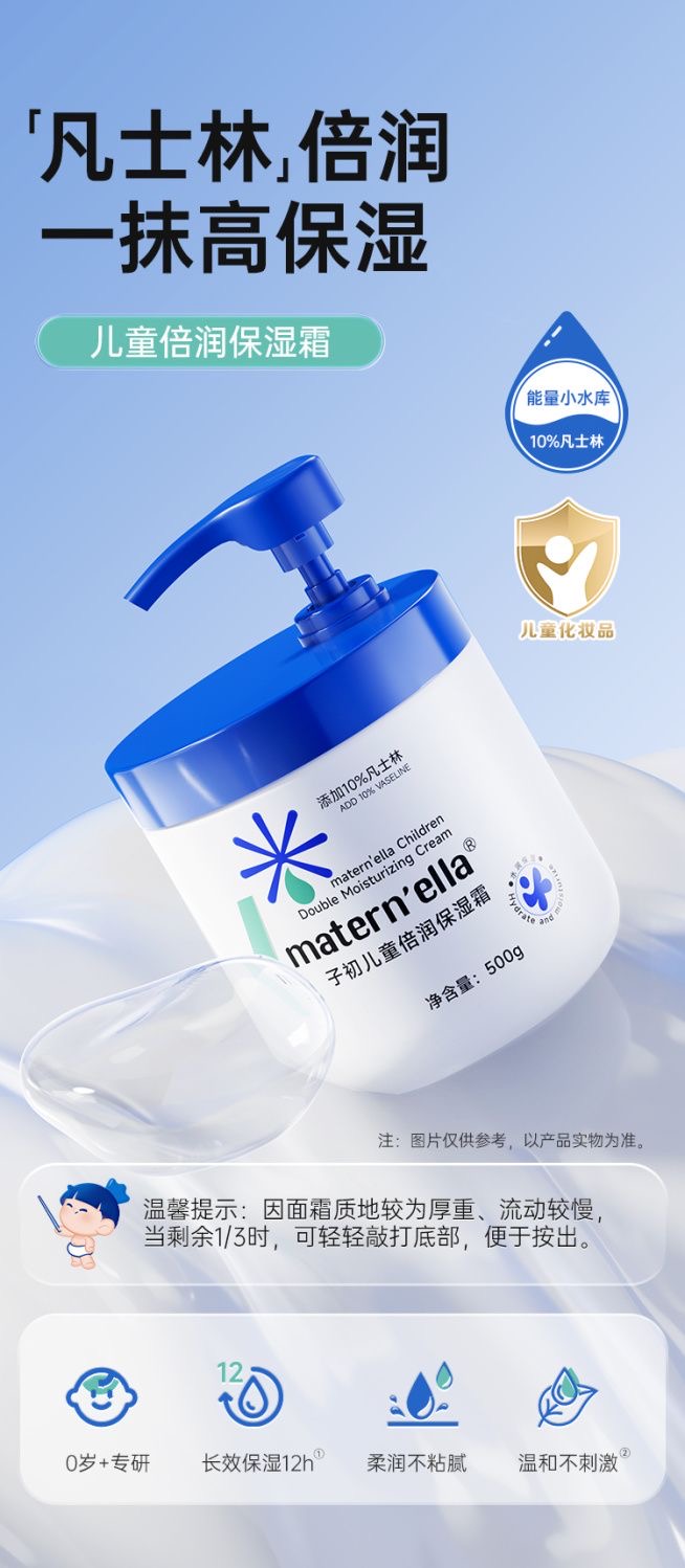 【送350ml洗护二合一】子初 大白罐儿童倍润保湿霜 500g