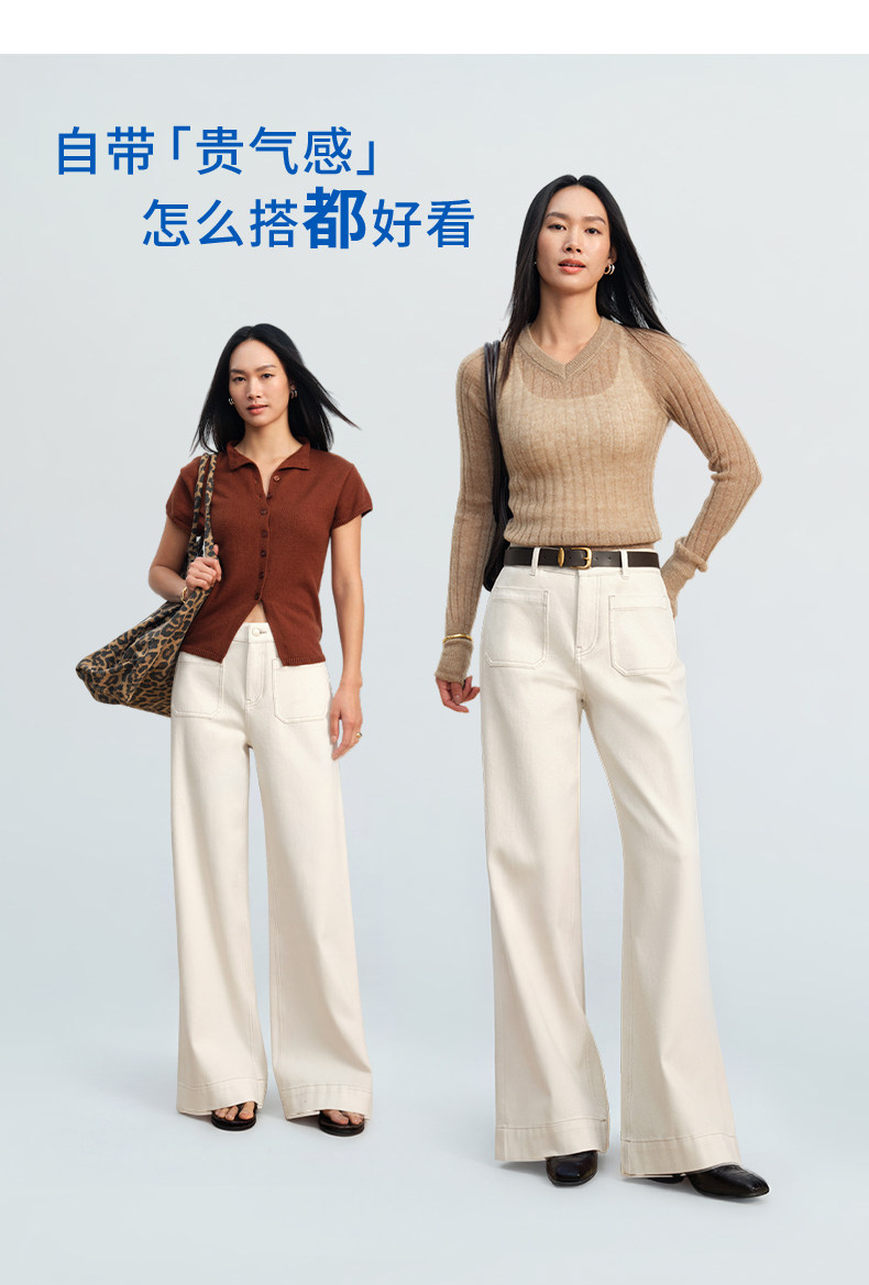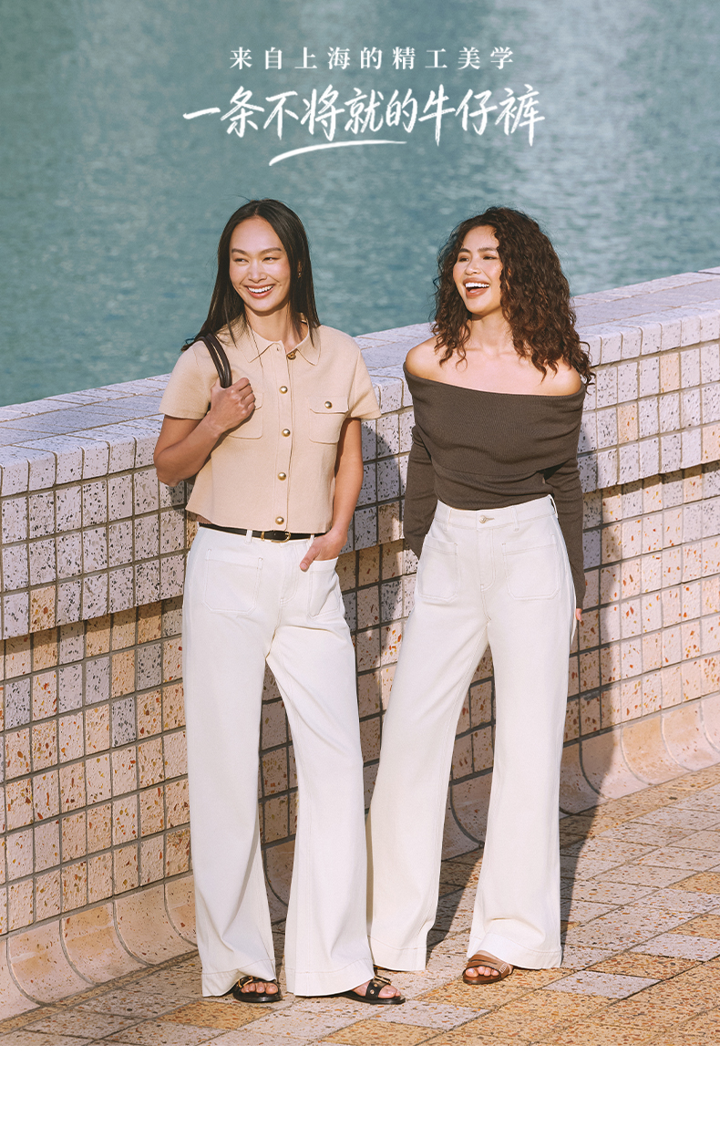 【白色直筒喇叭裤】simplepieces春新款SPS牛仔显瘦拖地微喇裤
