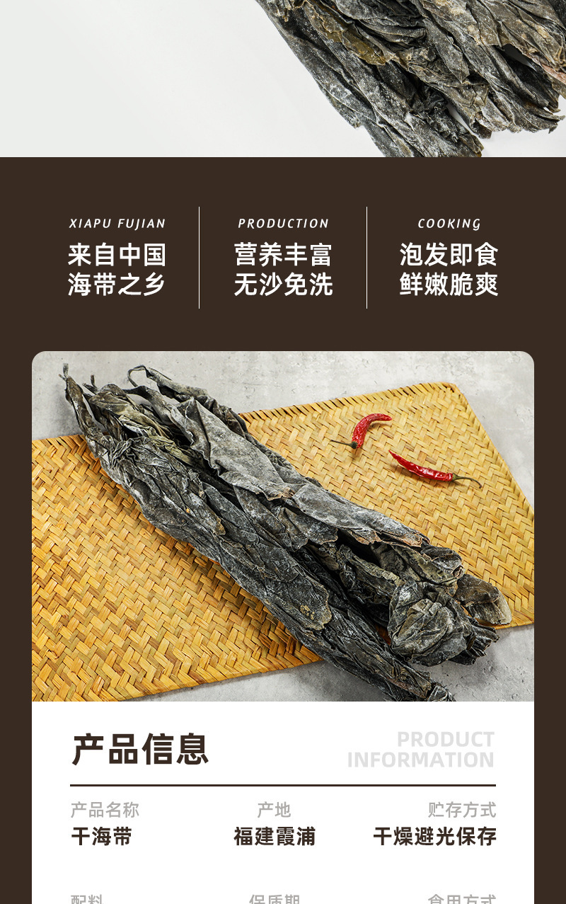 【霞浦特产❗️干海带】足称日晒海带,营养丰富无沙免洗,泡发即食鲜嫩脆爽,霞浦新货日晒海带干货5斤装大片厚无沙海带头段煲汤火锅QQ
