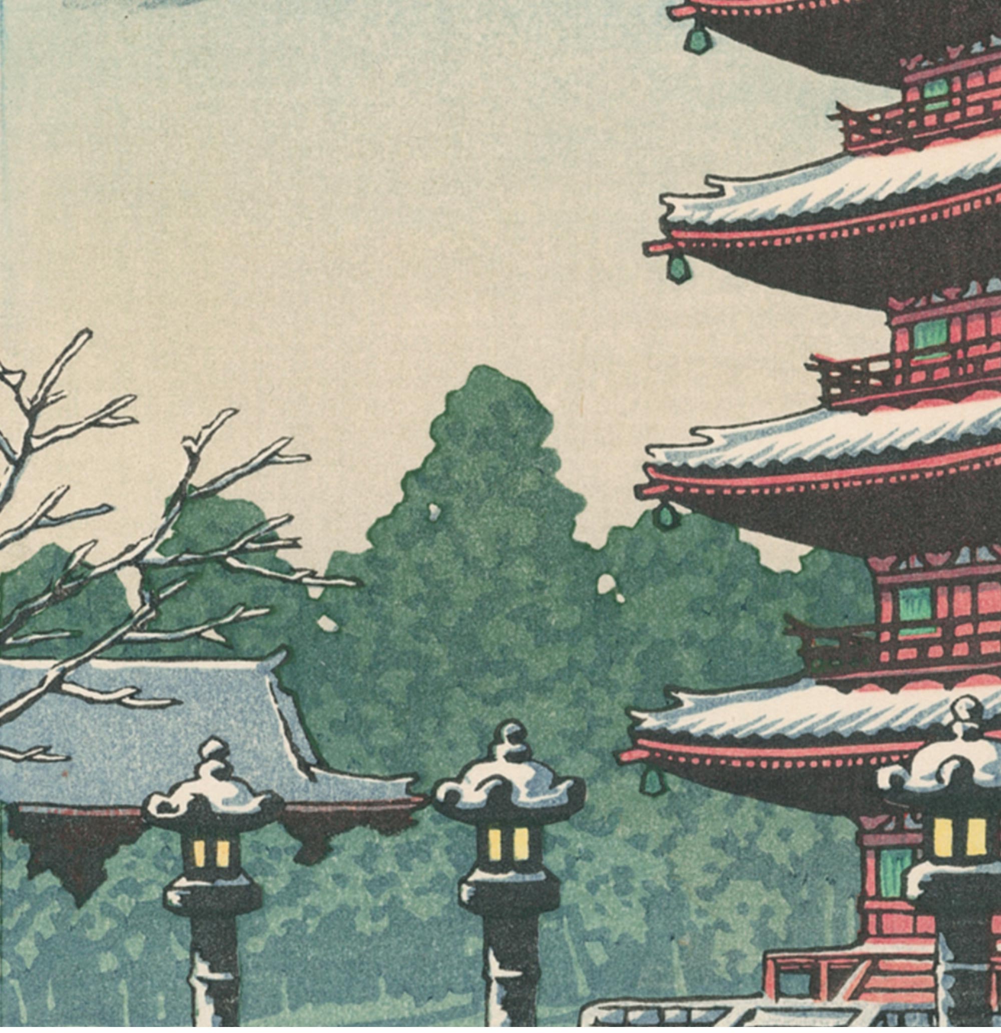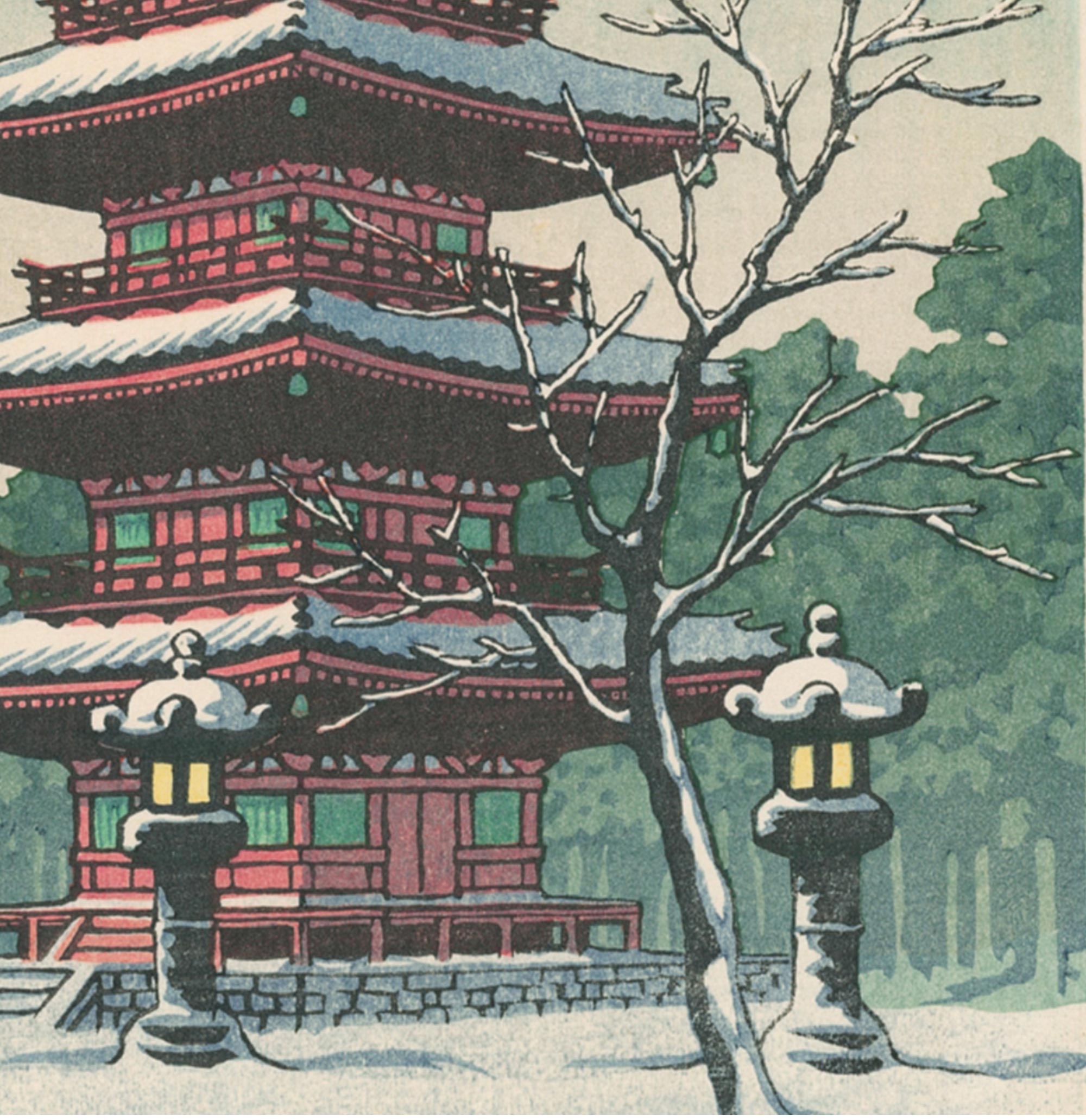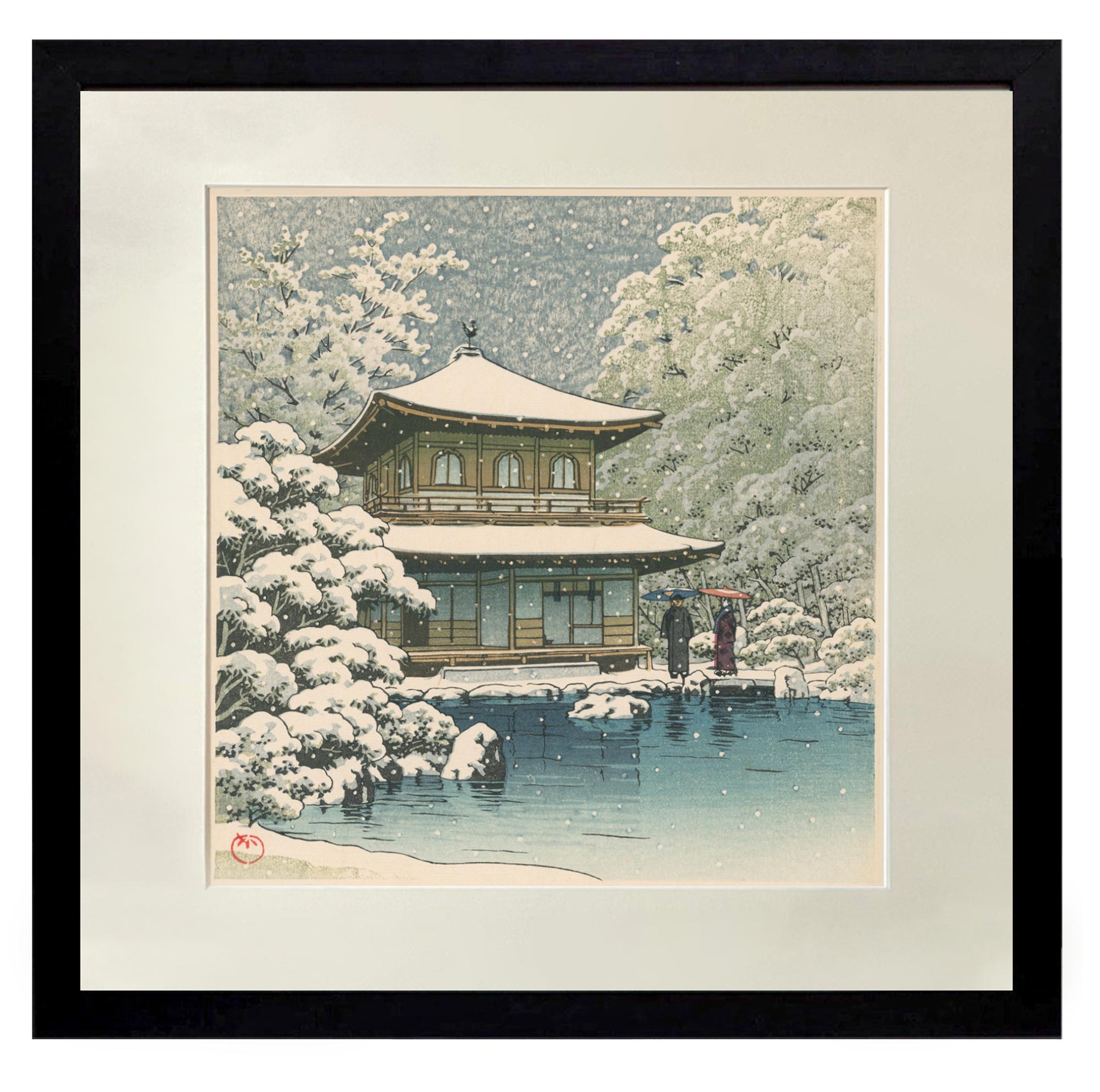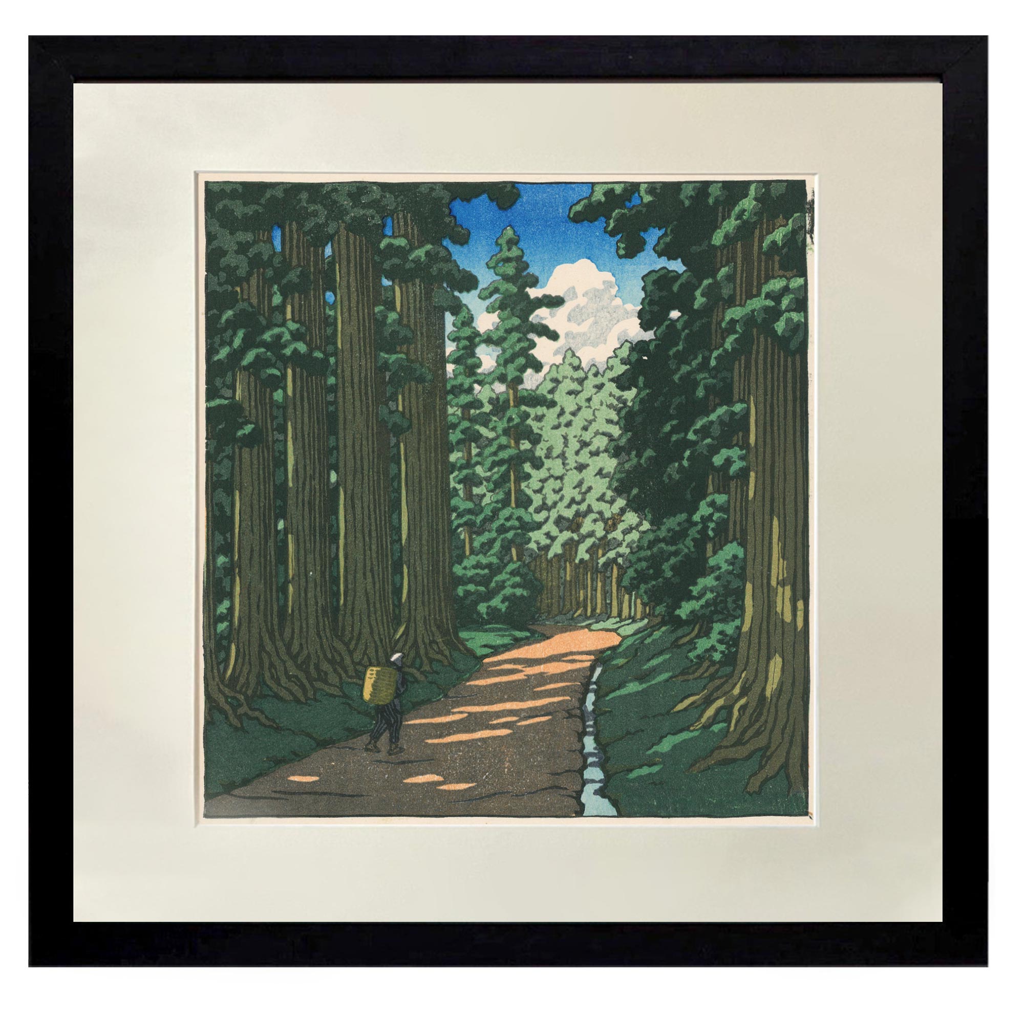独角鹿系统古董 1950年代日本昭和时期著名新版画大师川濑巴水签名创作风景主题木版画作品四件套《春夏秋冬》