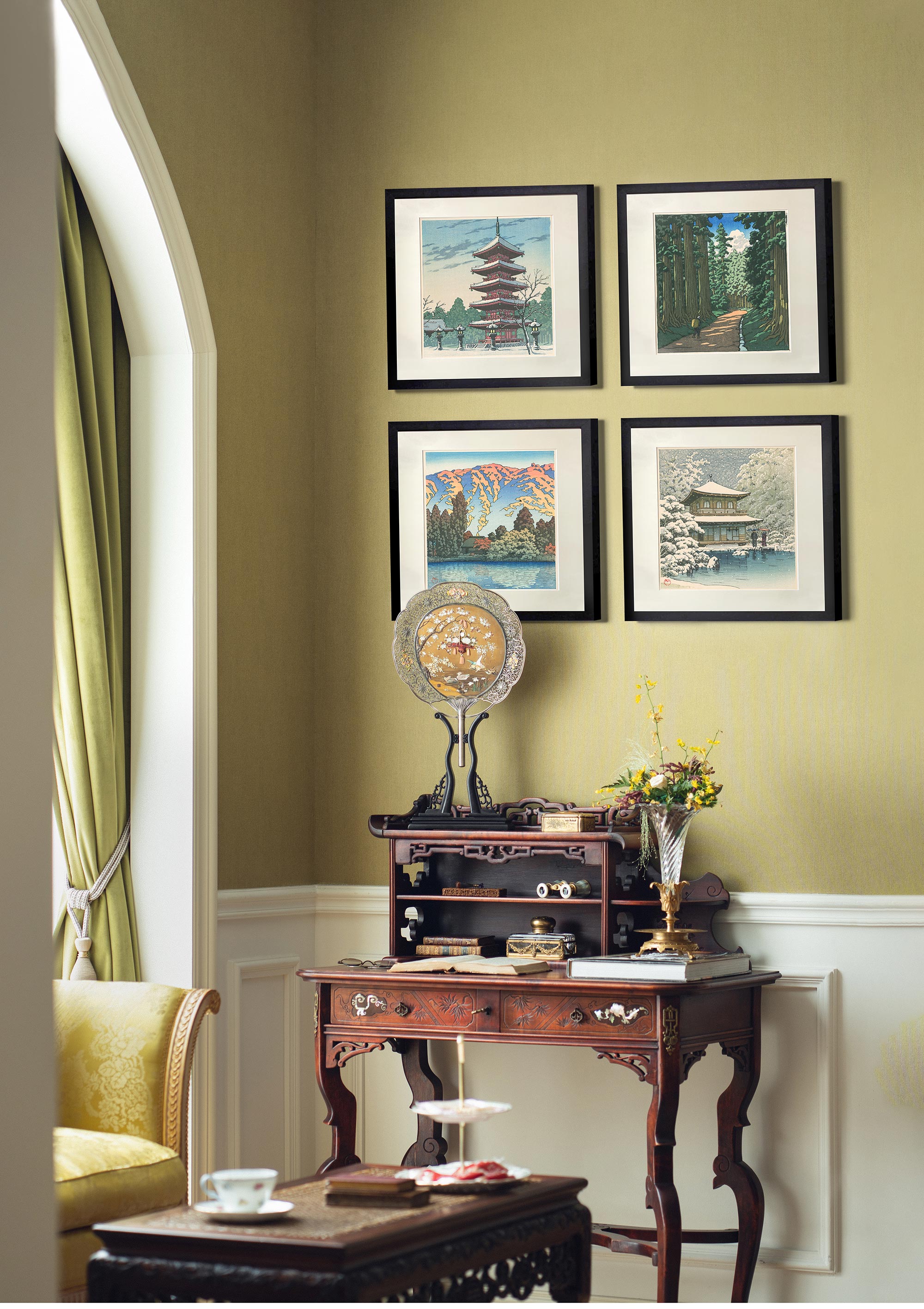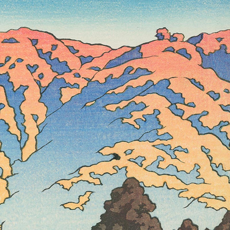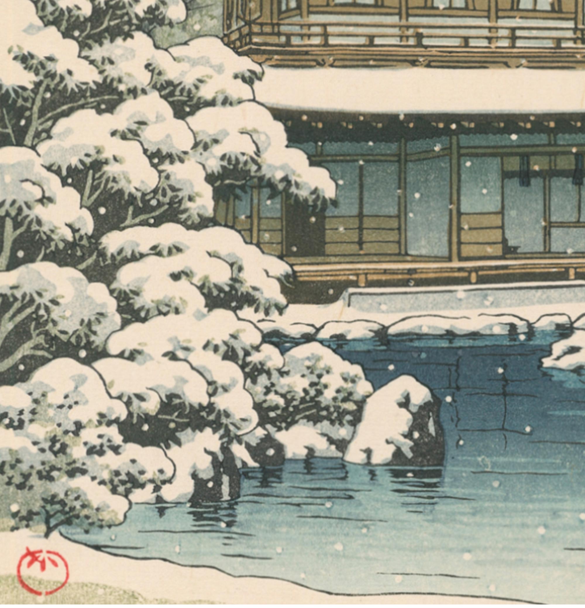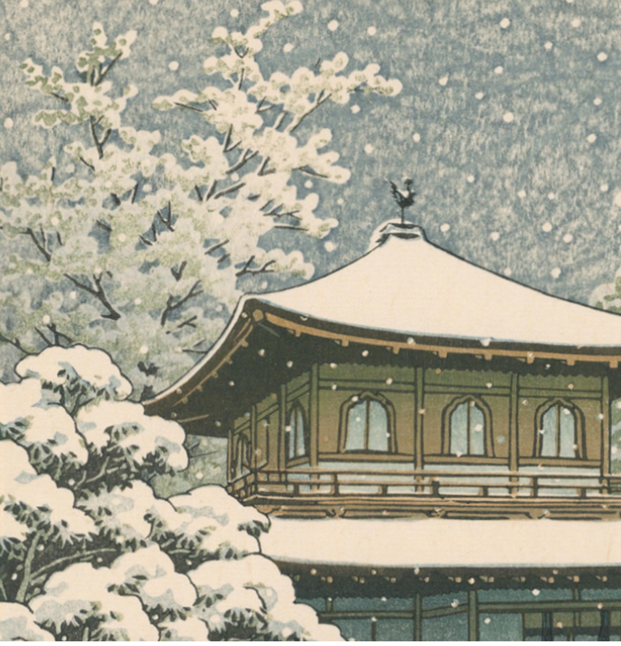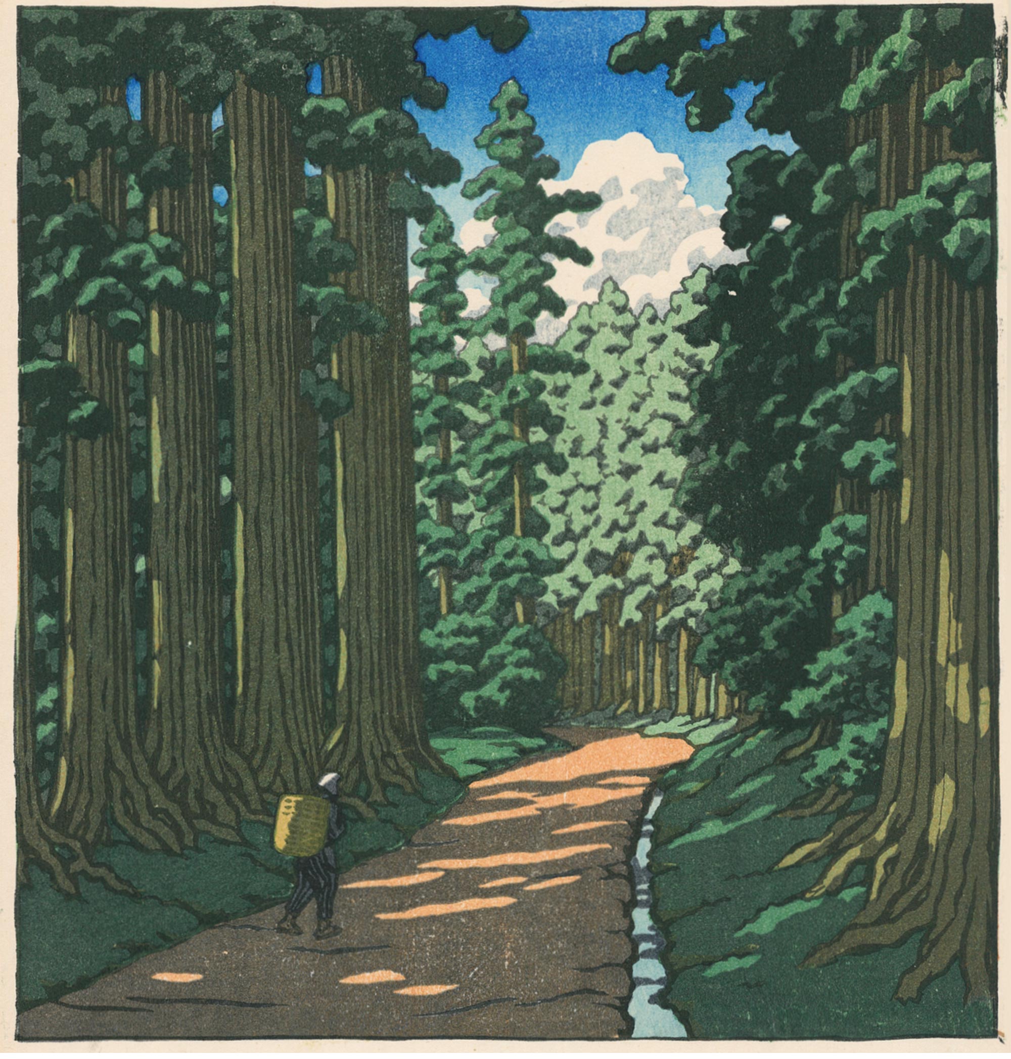 1950年代日本昭和时期著名新版画大师川濑巴水签名创作风景主题木版画作品四件套《春夏秋冬》