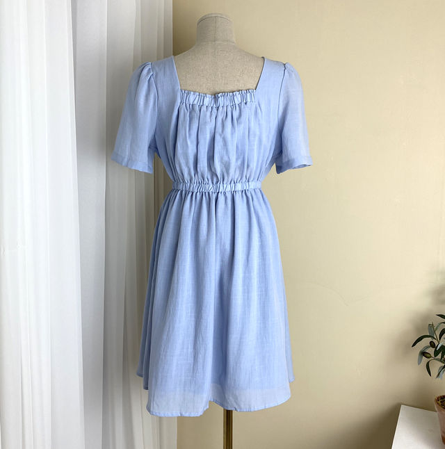 Lavender square neck linen mini dress 方领亚麻迷你连衣裙JPY带授权招加盟代理