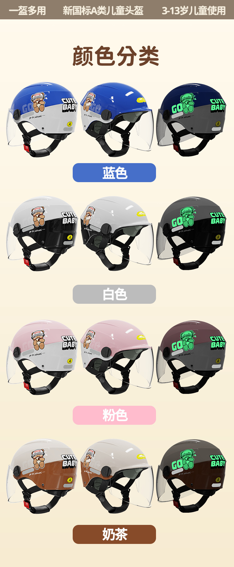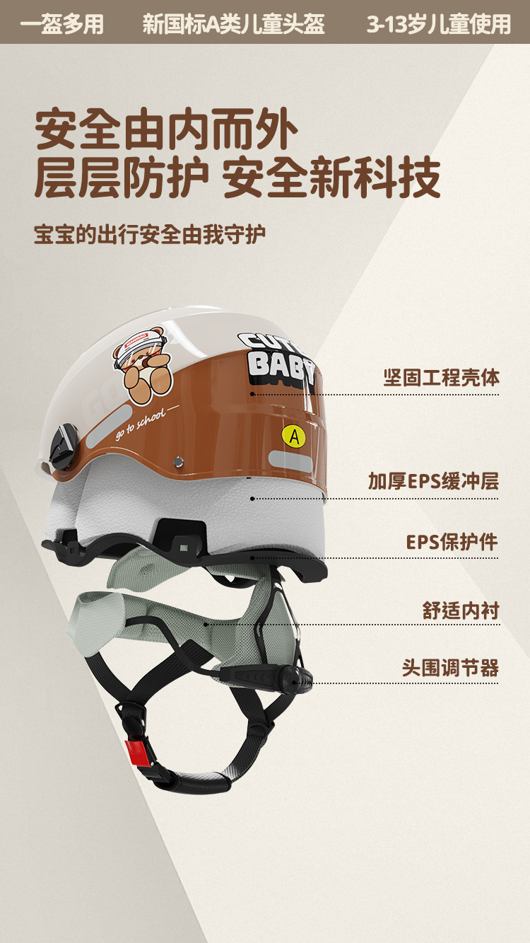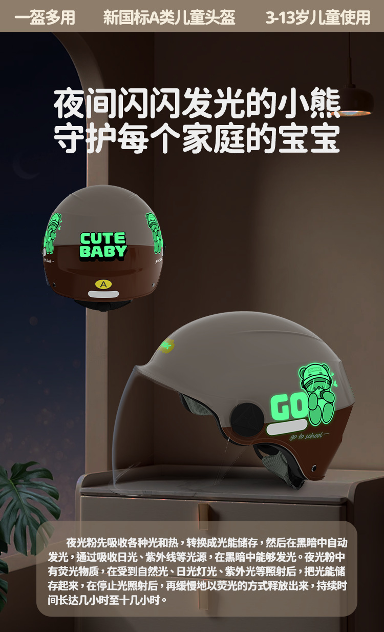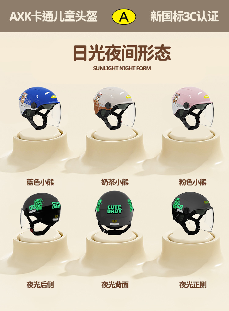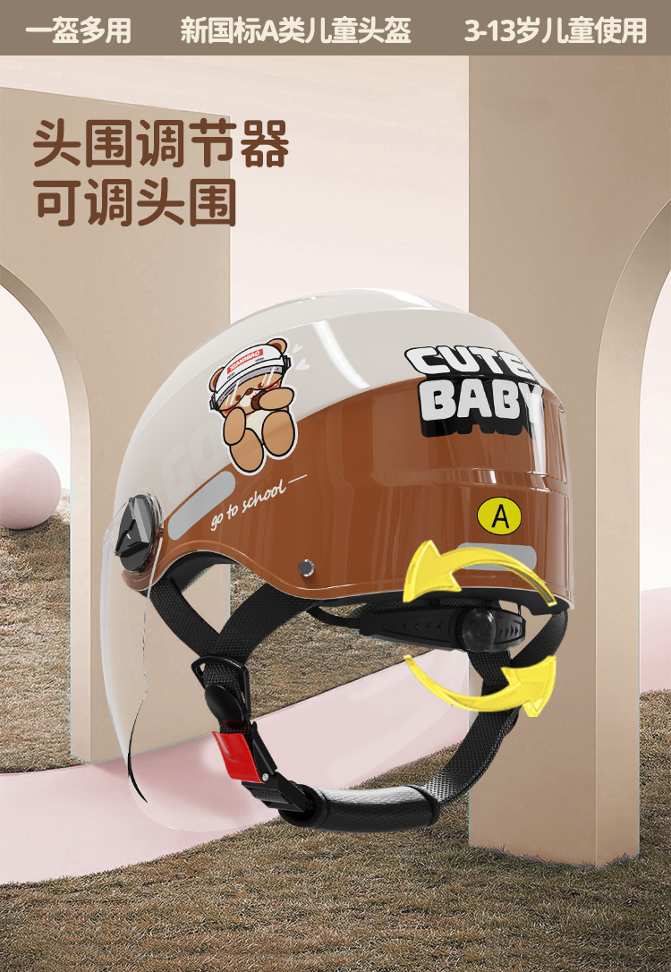 儿童头盔新国标3C认证 轻量化电动车头盔防晒宝宝半盔四季男女小孩帽